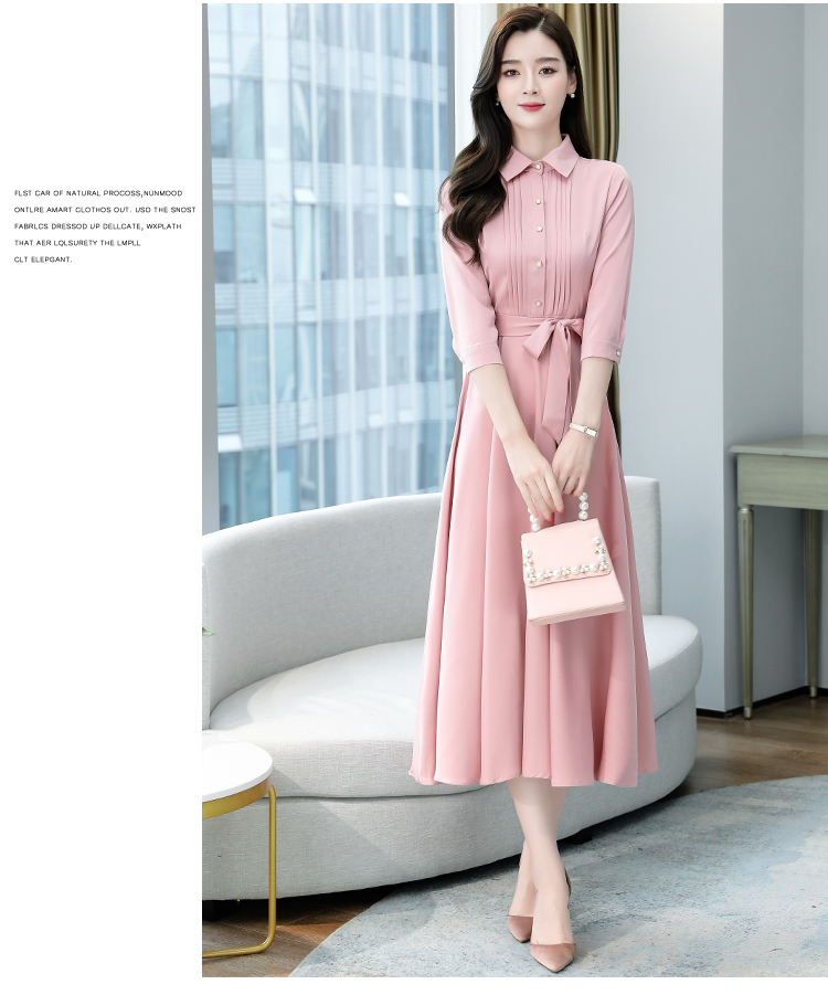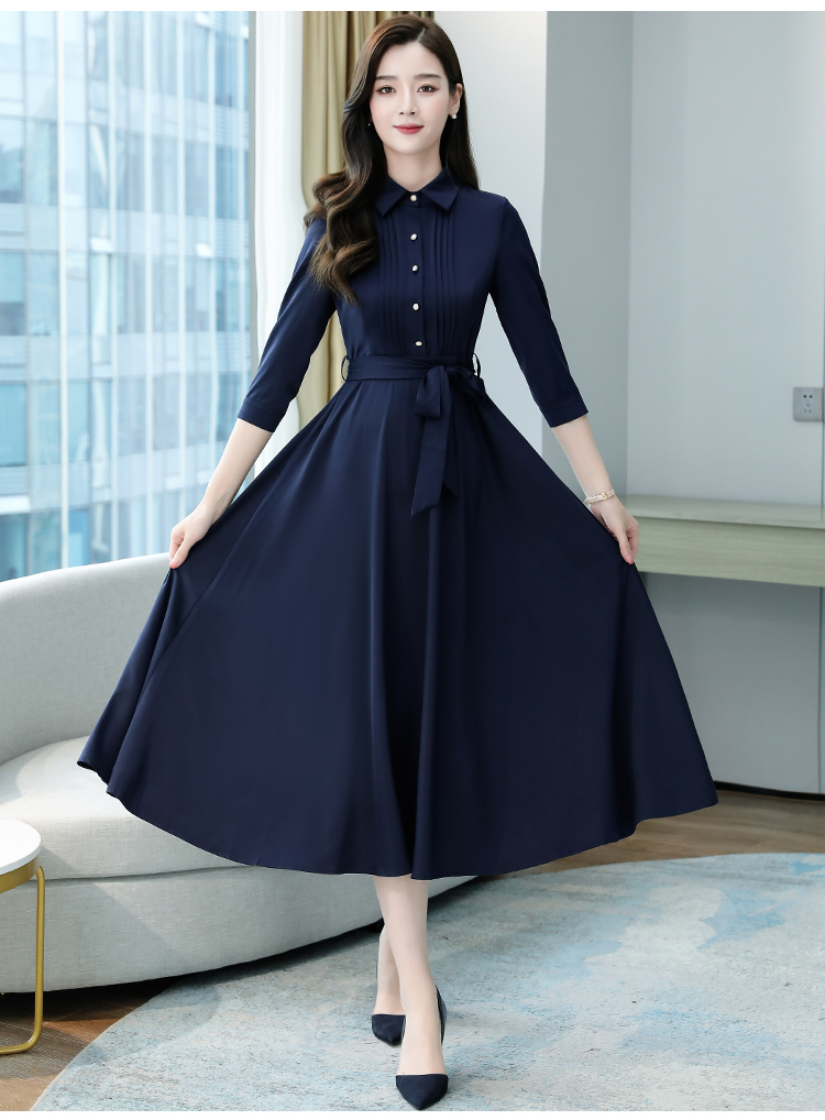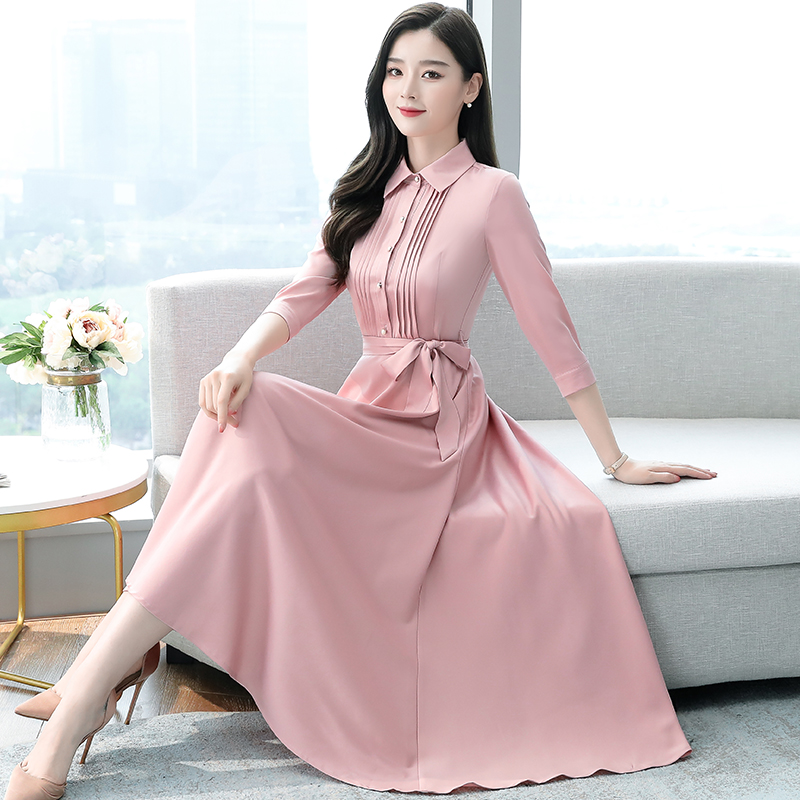 MY6920# 春夏新款醋酸缎面七分袖贵妇连衣裙修身时尚中长裙女裝貨源服裝批發