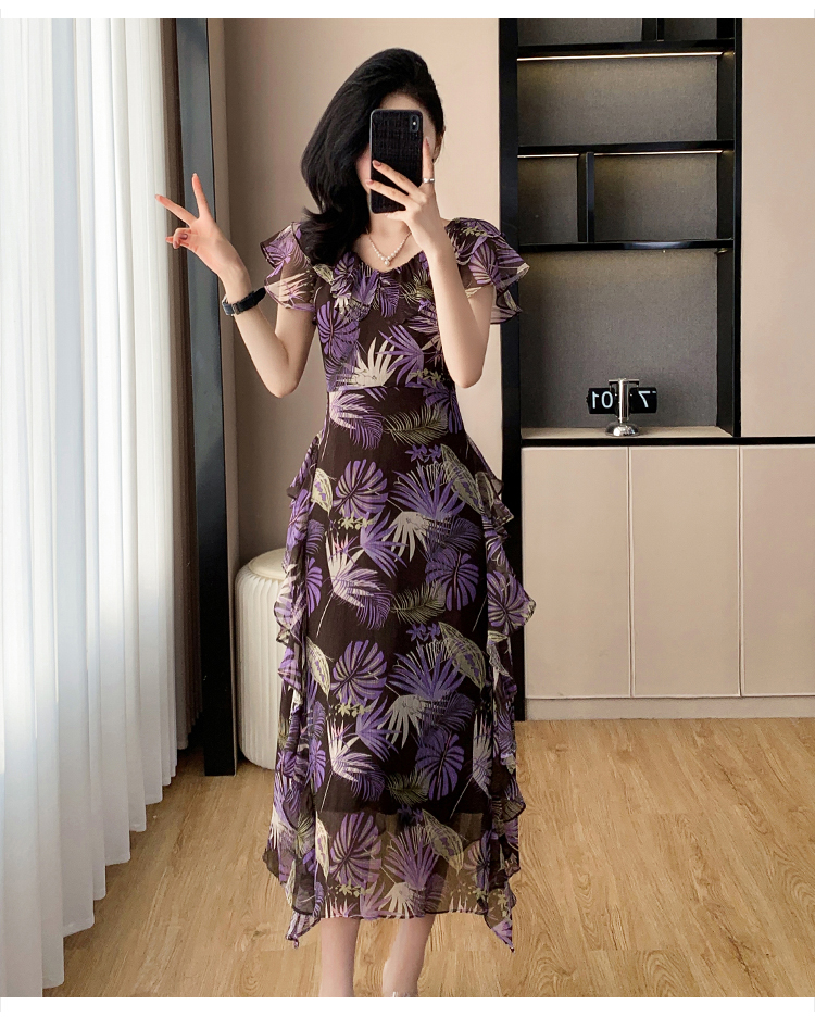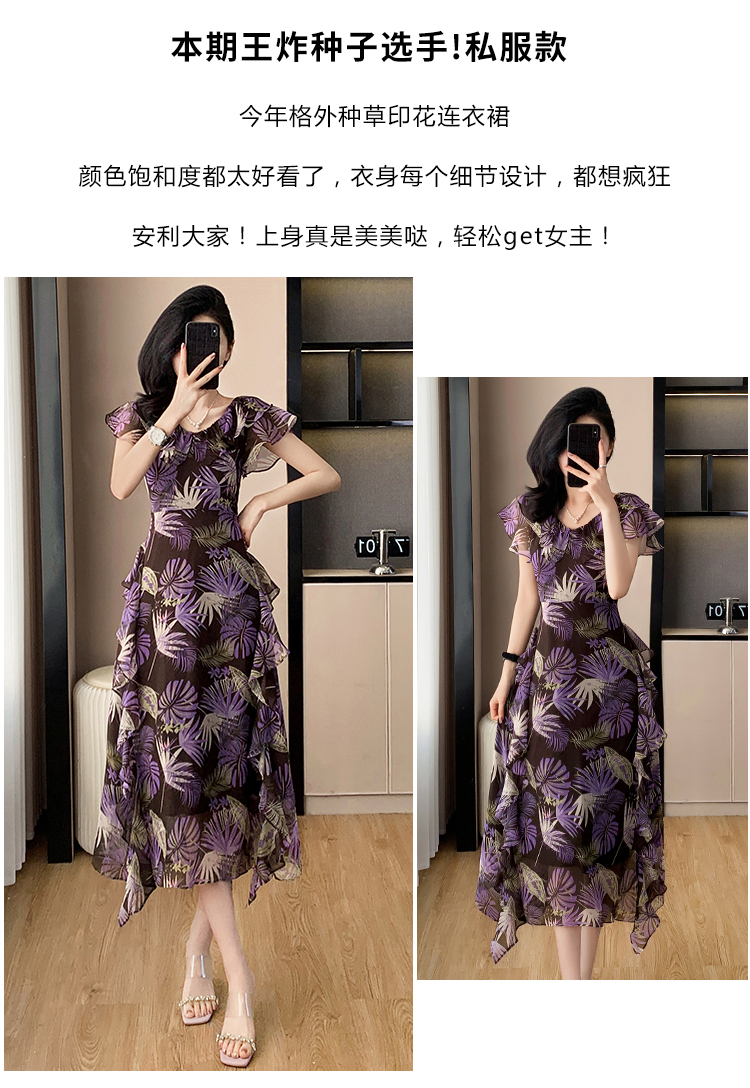 MY6975# 紫气东来法式浪漫花边夏季氛围感气质连衣裙女裝貨源服裝批發