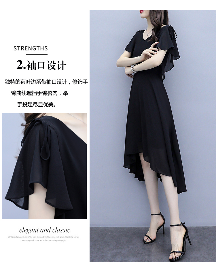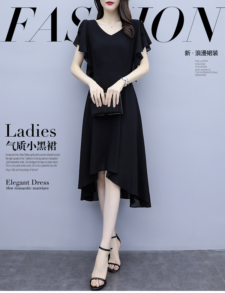 MY6980# 大码女装时尚藏肉显瘦小黑裙夏季胖MM中长款遮肚子雪纺连衣裙女裝貨源服裝批發