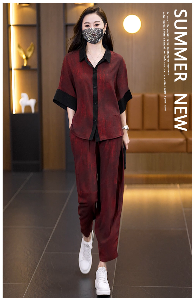 MY7018# 夏装新款高级感衬衫大码套装遮肉显瘦时尚宽松减龄两件套女裝貨源服裝批發