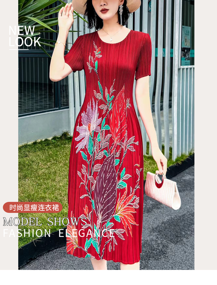 MY7022# 贵妇人褶皱连衣裙夏季新款高端气质名媛大码百褶裙妈妈装裙子女裝貨源服裝批發