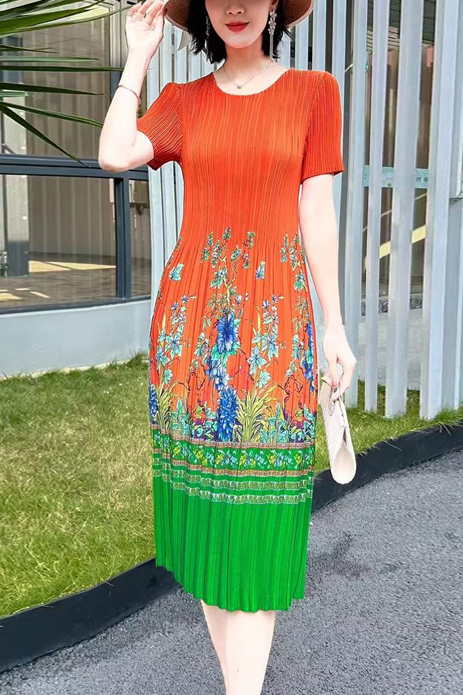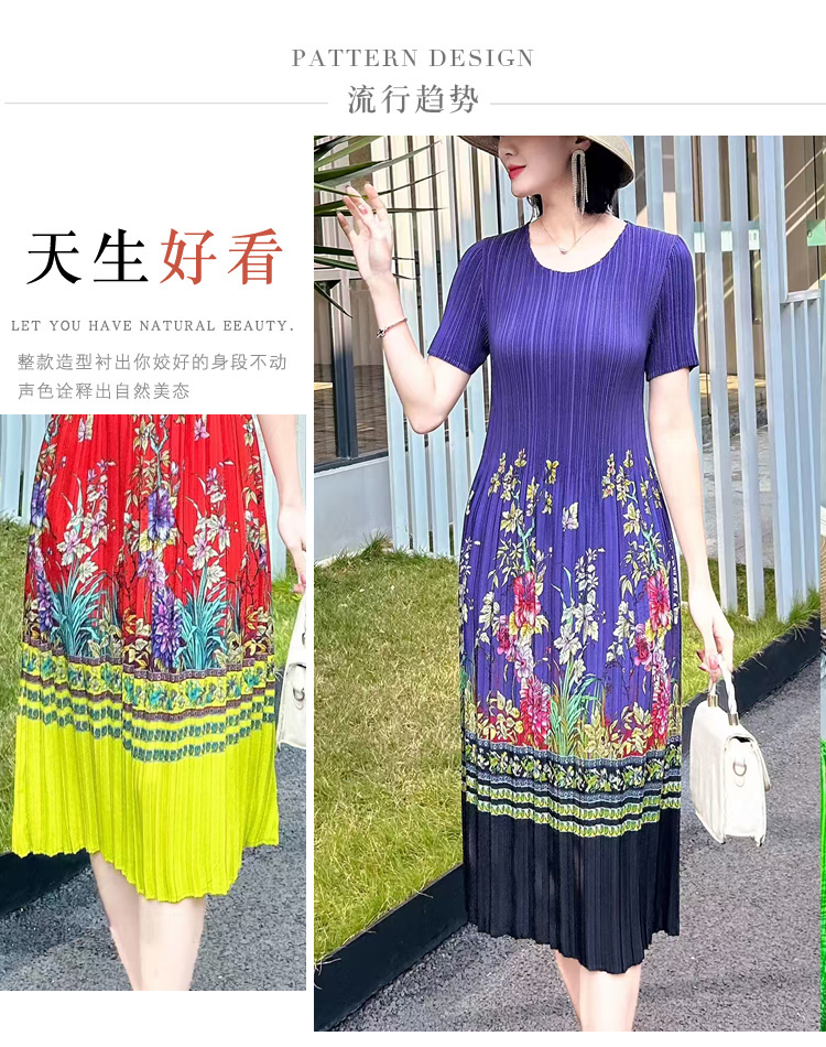MY7026# 贵妇人褶皱连衣裙夏季新款高端气质名媛大码百褶裙妈妈装裙子女裝貨源服裝批發