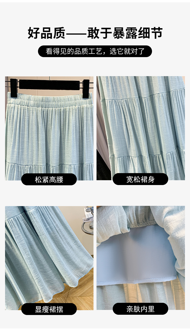 MY7028# 大码女装夏季胖mm时尚百搭宽松显瘦遮胯设计感棉麻舒适三节半身裙女裝貨源服裝批發