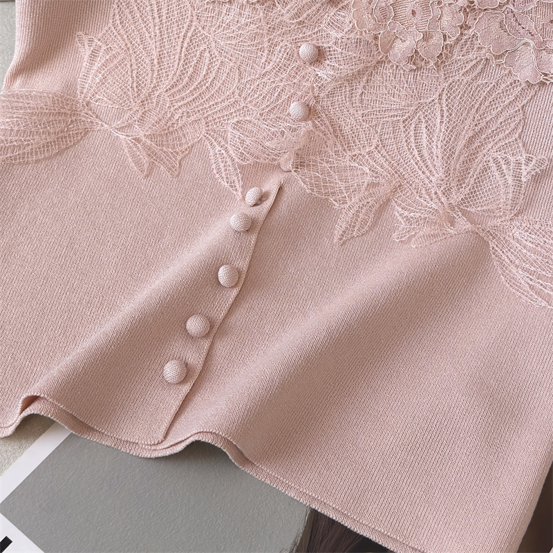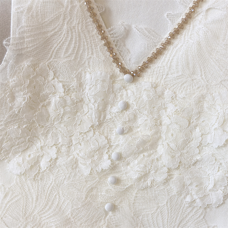 MY7061# 重工镶钻设计感蕾丝羽毛拼接背心上衣女修身高级感无袖针织衫女裝貨源服裝批發