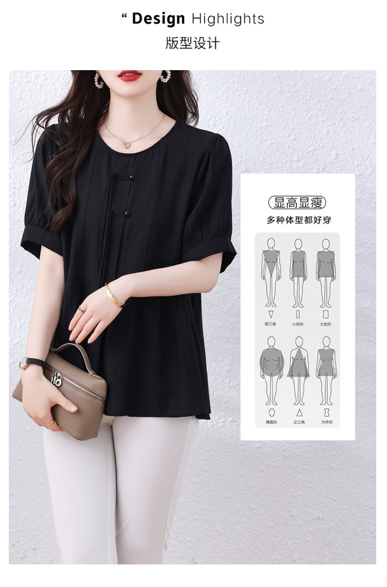 MY7069# 夏季新款胖mm国风改良大码宽松百搭短袖上衣衬衫女裝貨源服裝批發