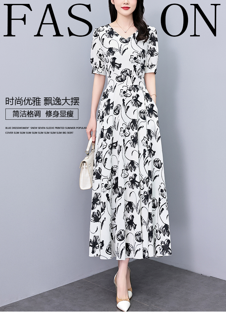 MY7074# 真丝连衣裙女夏长款夏季新款缎面大码胖mm收腰显瘦过膝长裙子女裝貨源服裝批發