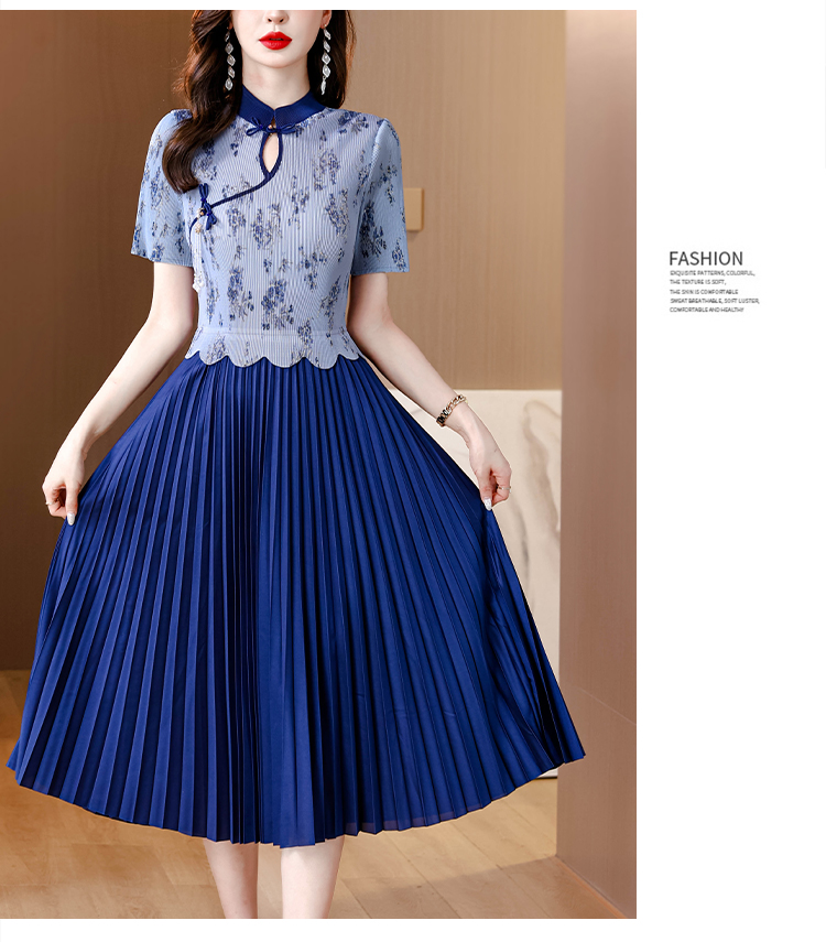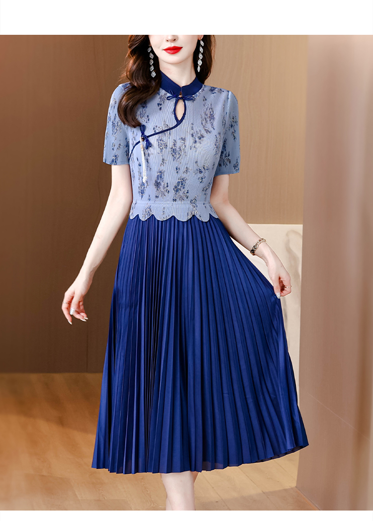MY7075# 中国风三宅褶皱改良旗袍连衣裙遮肉显瘦高贵气质妈妈连衣裙女裝貨源服裝批發