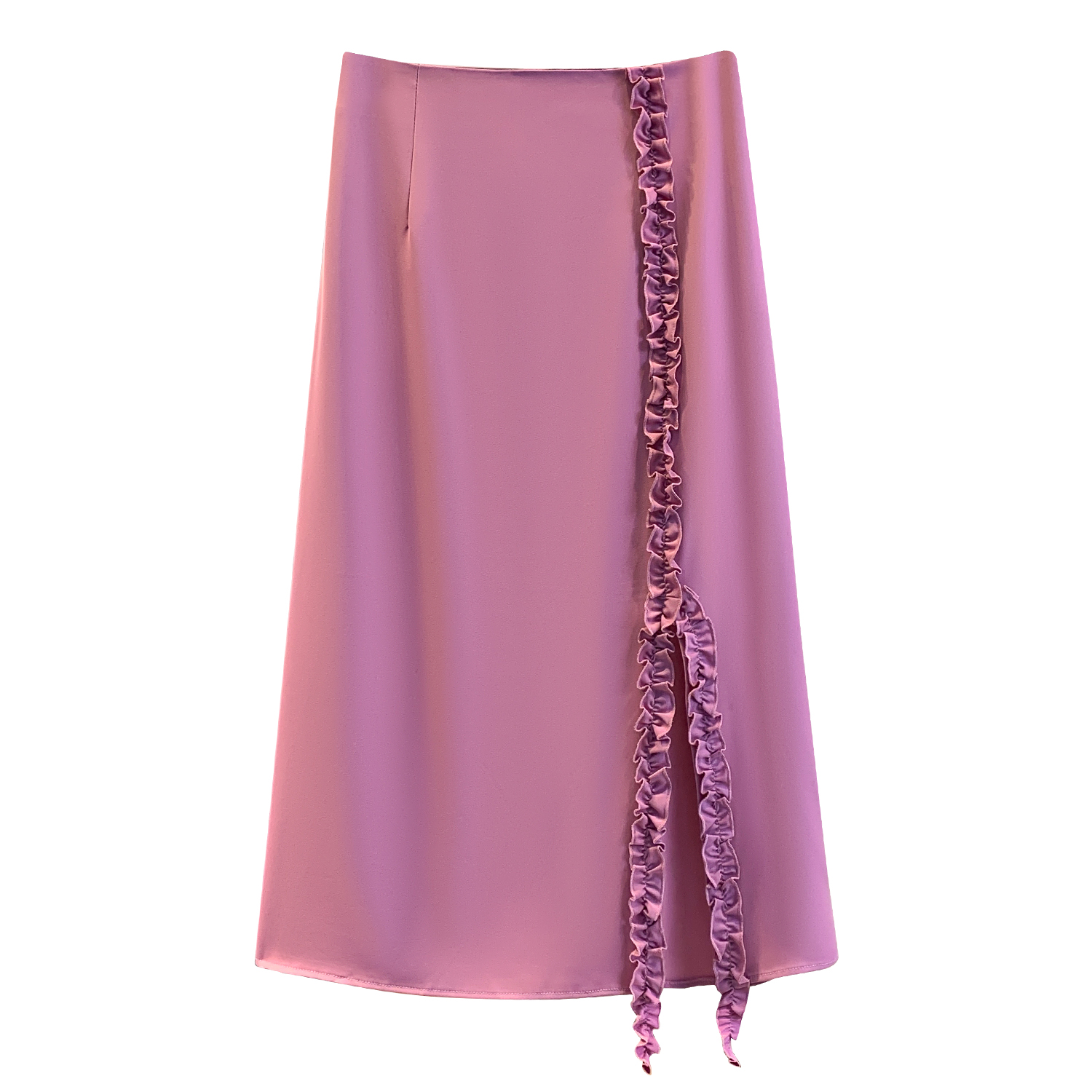 MY7165# 大码女装夏季新款木耳边粉色开叉半身裙修身显瘦百搭裙子女裝貨源服裝批發
