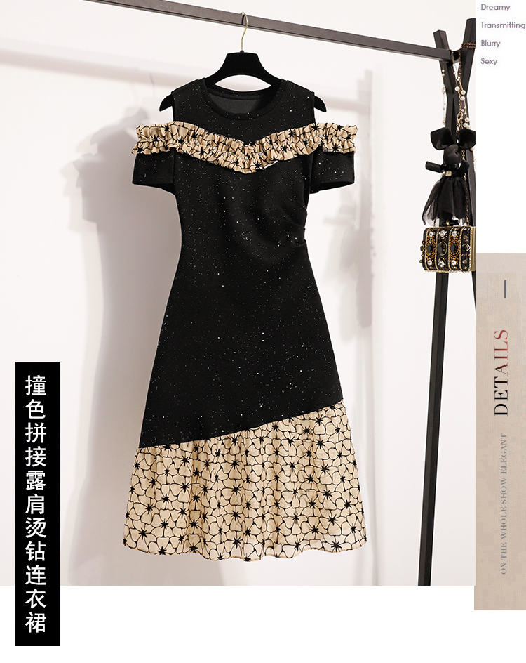 MY2725# 拼接连衣裙夏短袖仙气飘飘亮闪闪网纱中长款大码T恤裙女裝貨源...