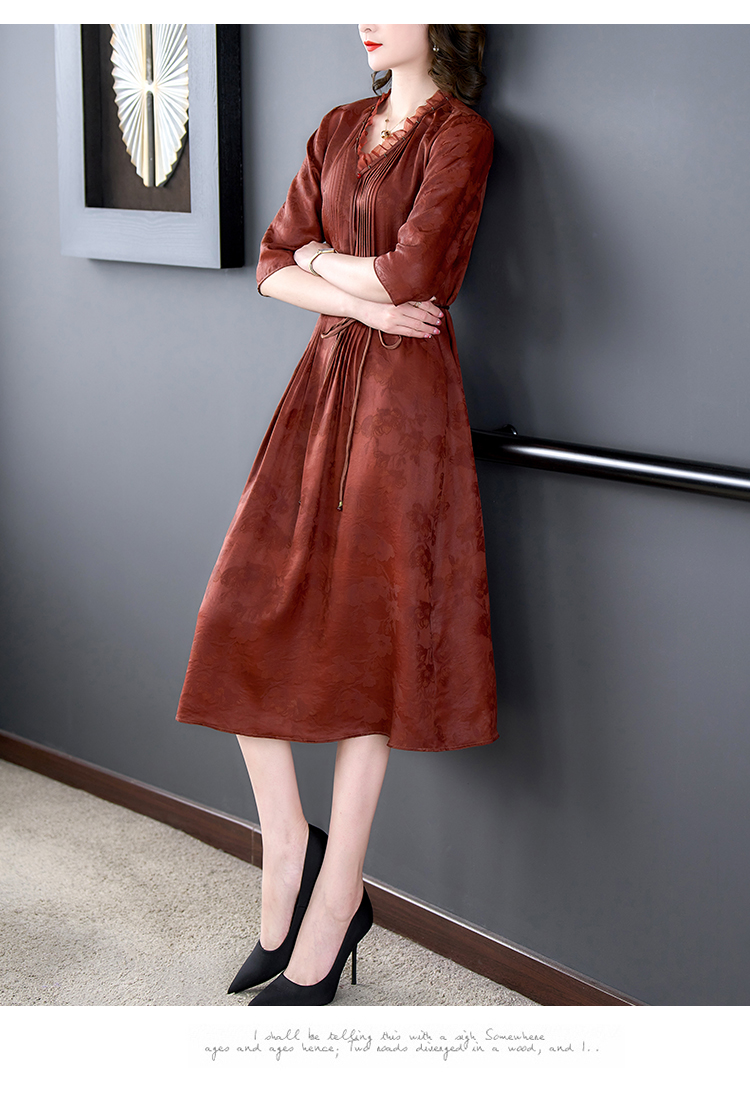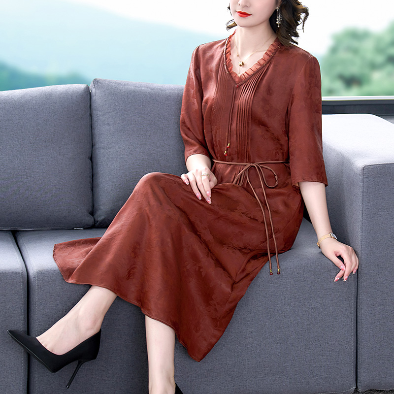 MY8653# 夏季新品女装连衣裙V领简约淑女荷叶边裙中袖气质时尚女裝貨源服裝批發