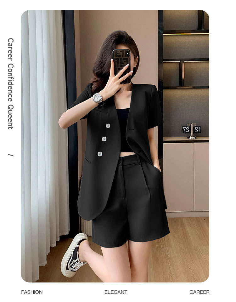 MY9612# 白色无领短袖西装外套女夏季薄款2025新款小个子职业装小西服套装女裝貨源服裝批發