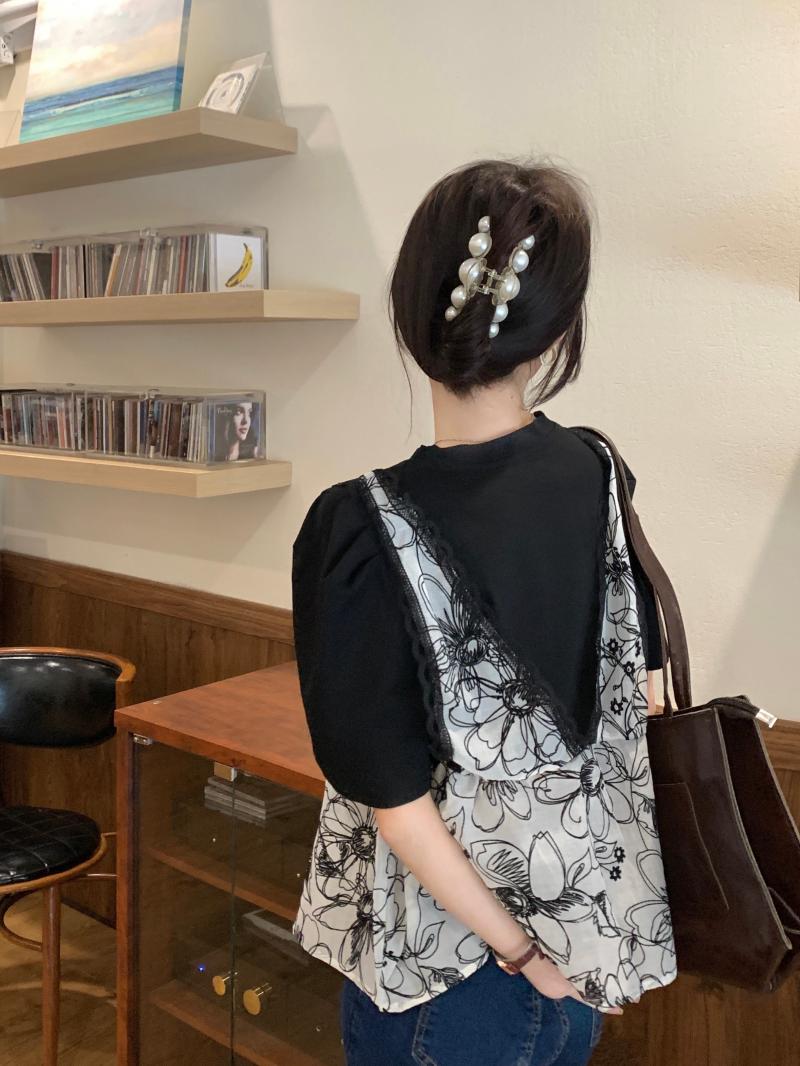 MY9632#夏季宽松短袖设计感小众衬衣上衣假两件娃娃减龄衬衫女裝貨源服裝批發