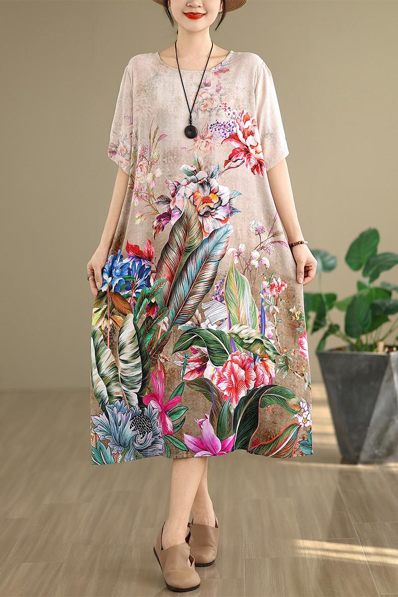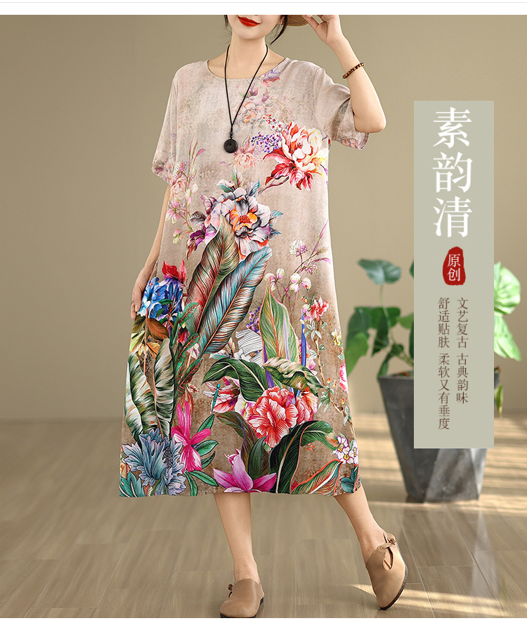 MY9797# 夏季新款文艺宽松显瘦中长款印花棉绸连衣裙女装大码裙子女裝貨源服裝批發