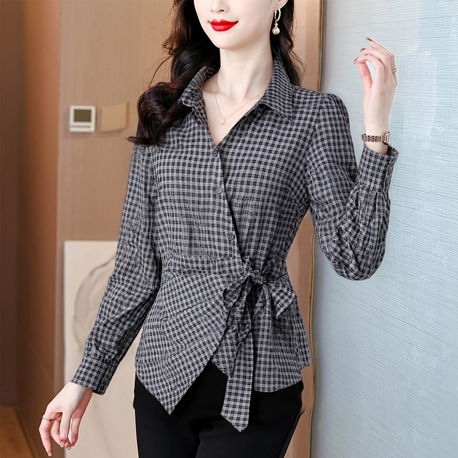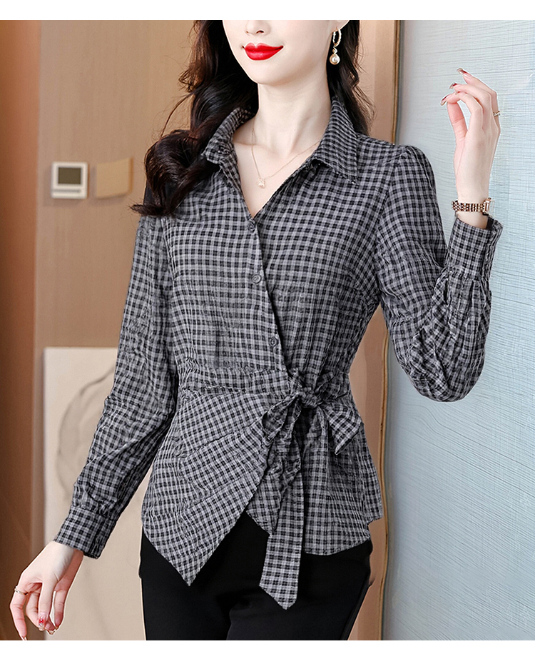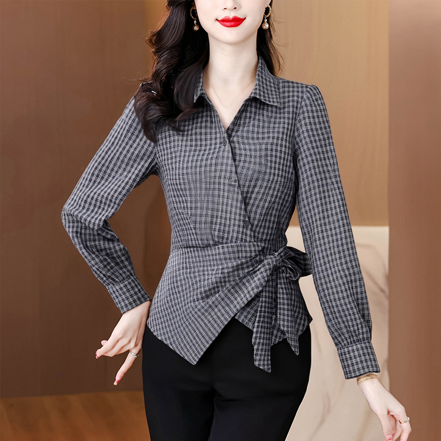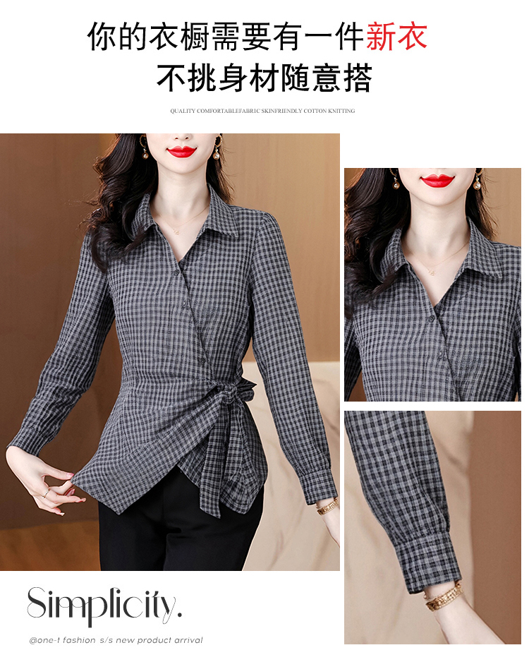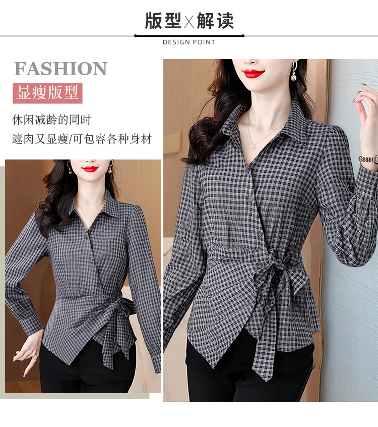 MY13592# 新款法式设计感绑带收腰不规则衬衫小众上衣女女裝貨源服裝批發