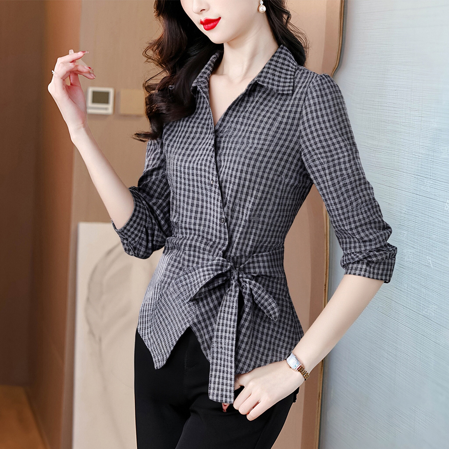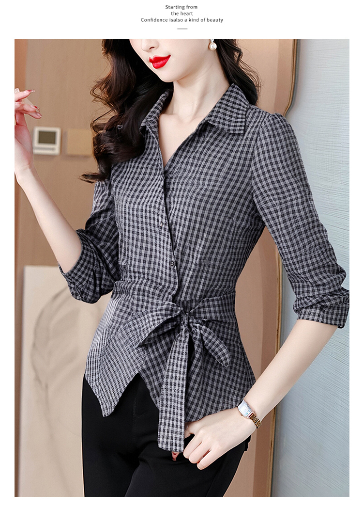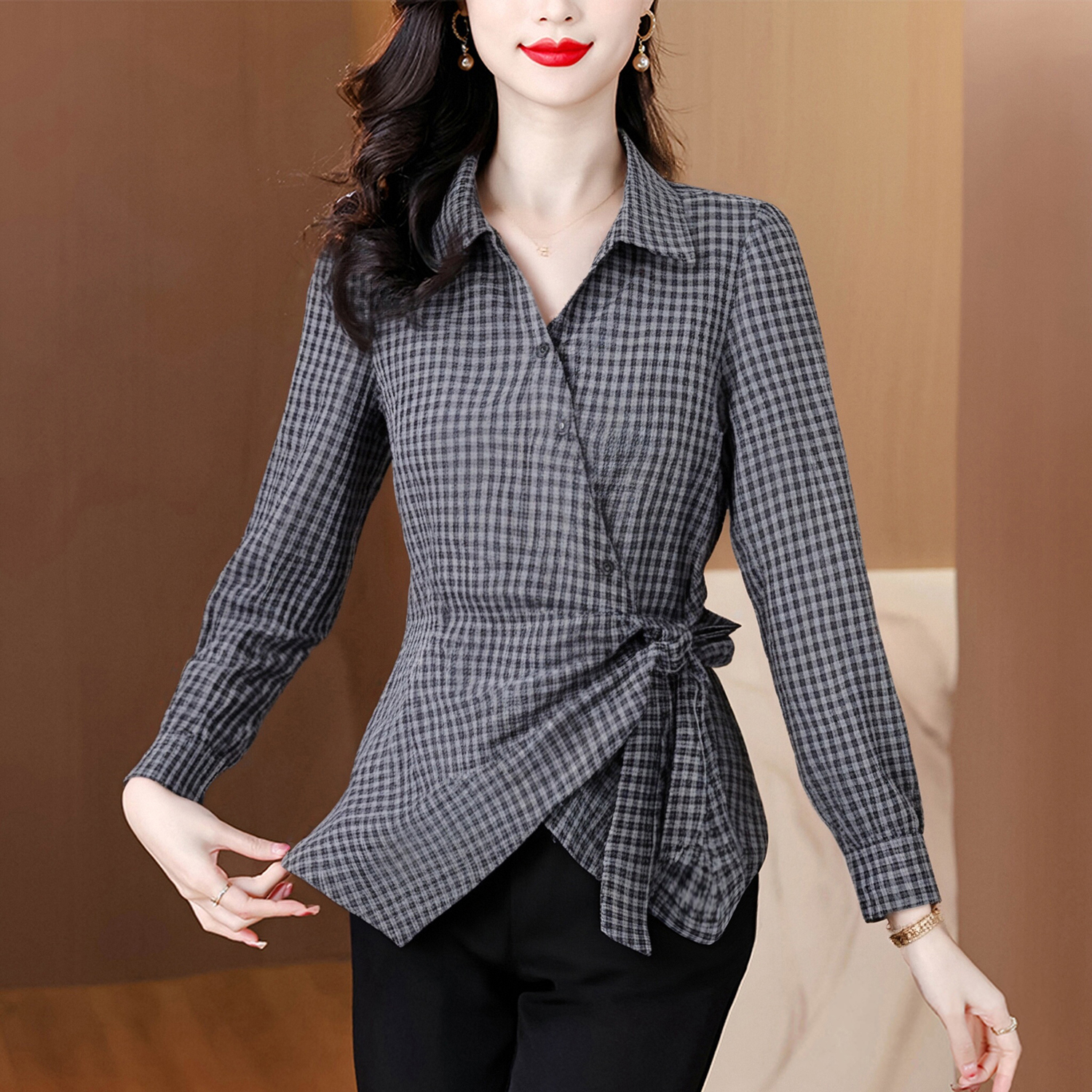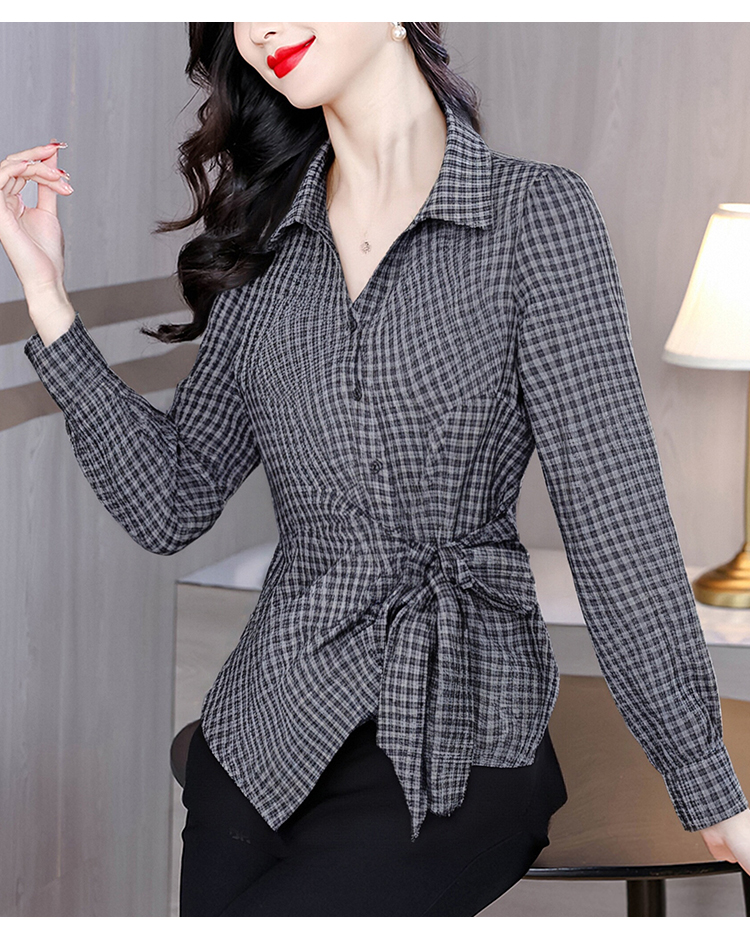 MY13592# 新款法式设计感绑带收腰不规则衬衫小众上衣女女裝貨源服裝批發