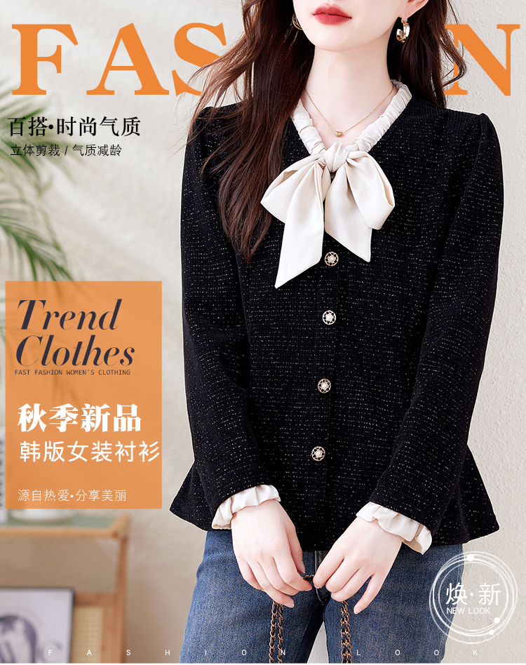 MY13599# 大码女装衬衫百搭时尚气质韩版胖mm小香风上衣显瘦秋装女裝貨源服裝批發
