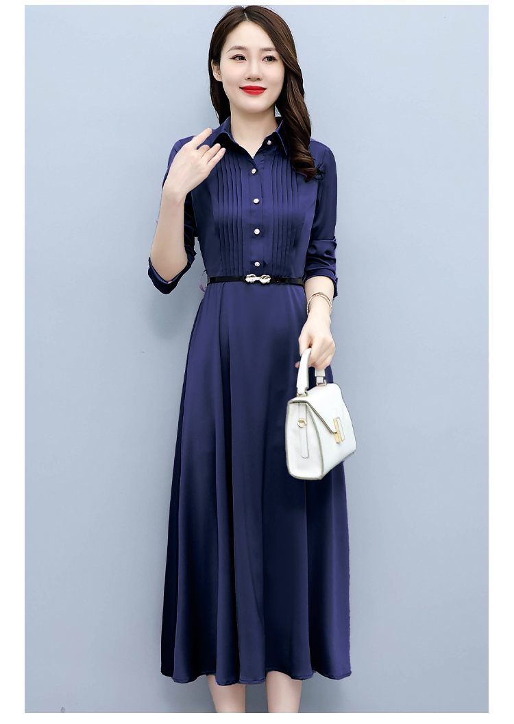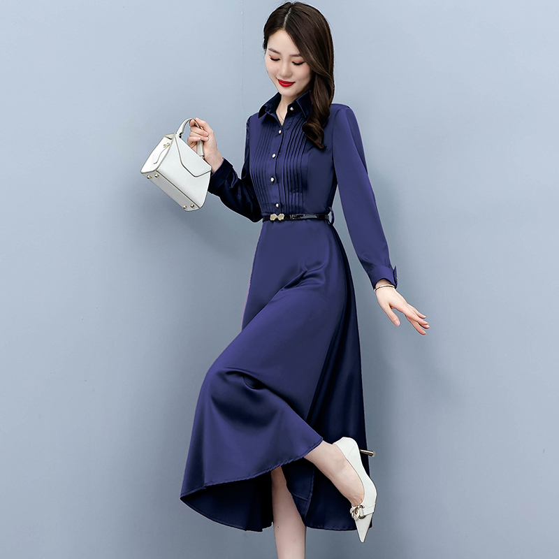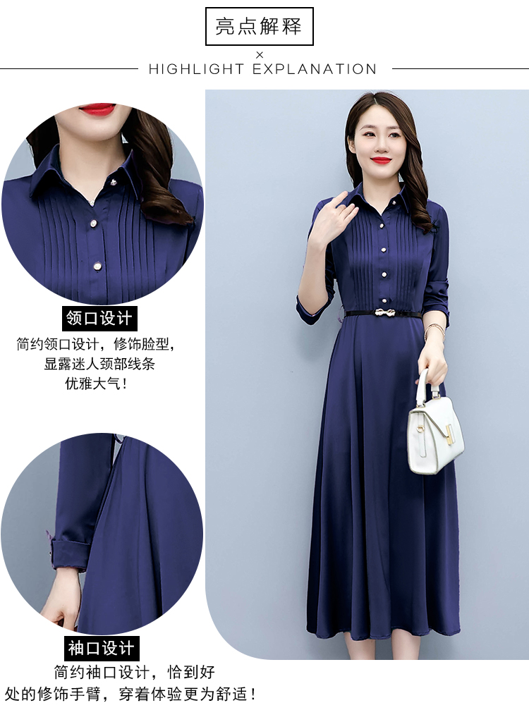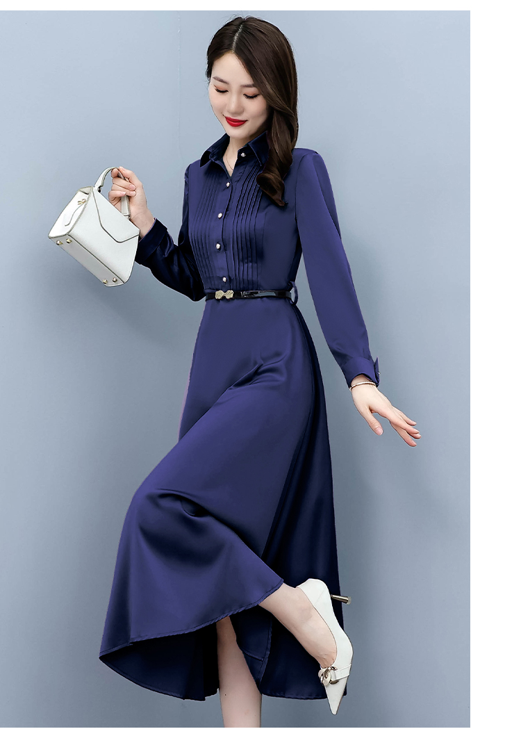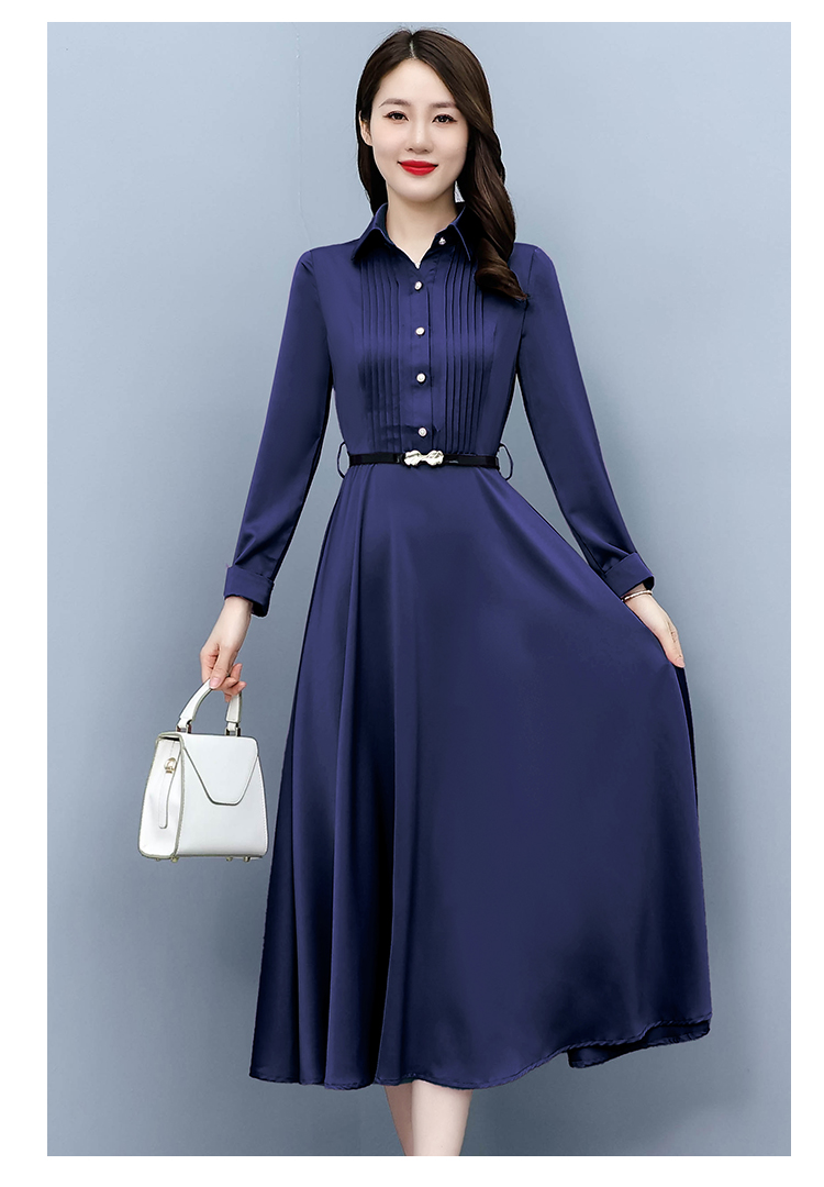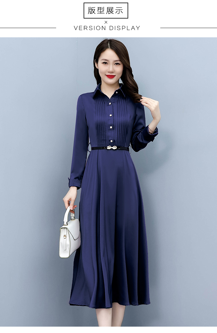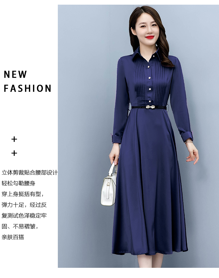 MY13608# 新款醋酸缎面长袖连衣裙气质显瘦遮肚纯色女装女裝貨源服裝批發