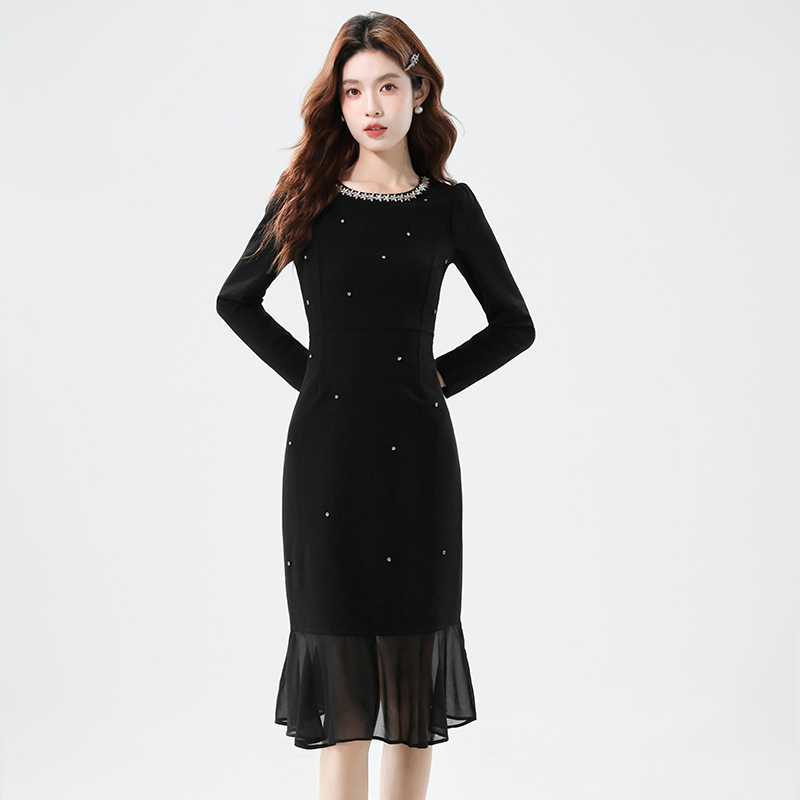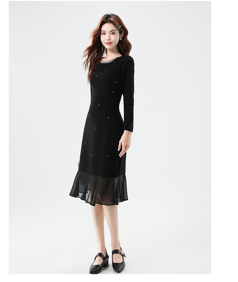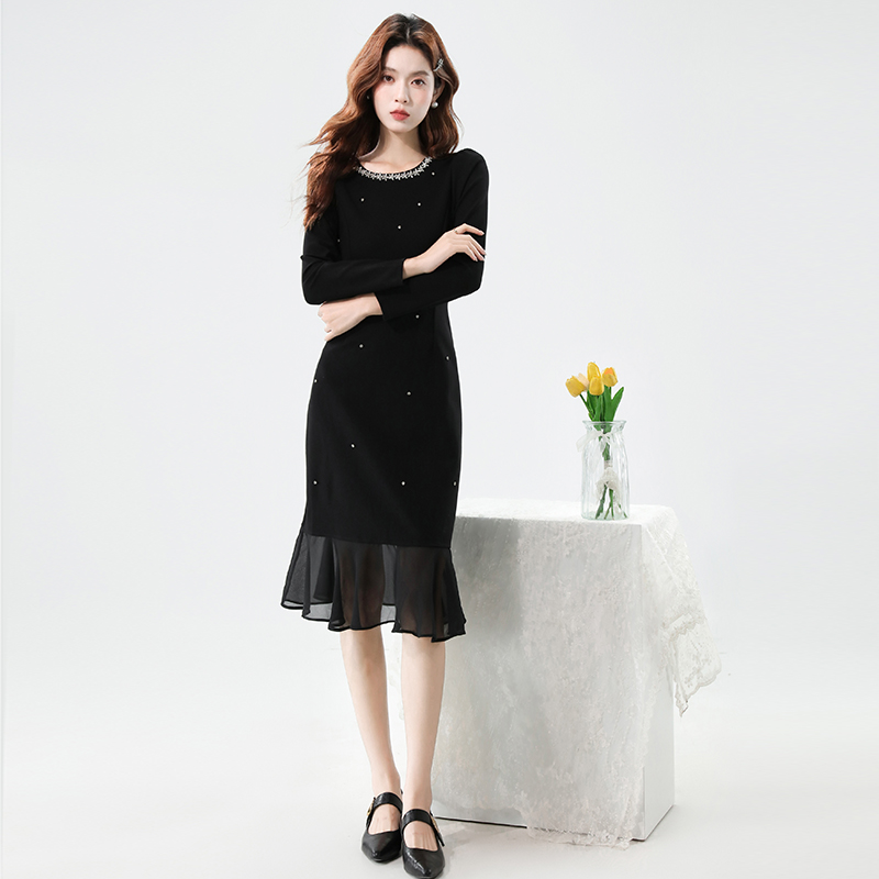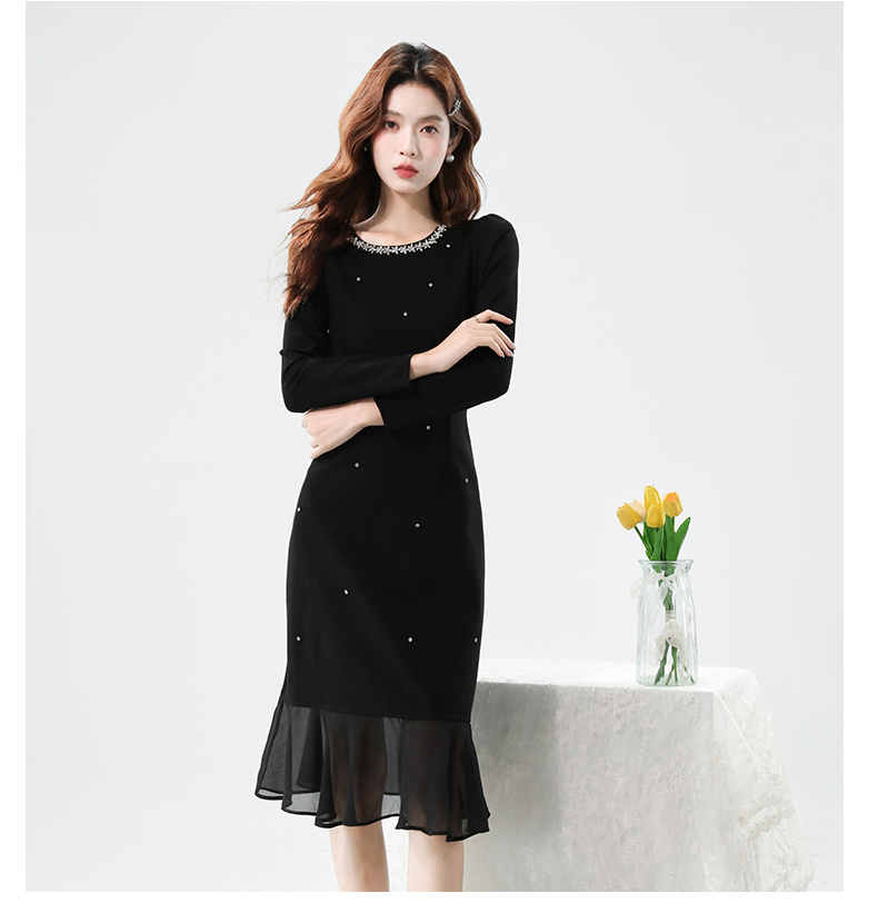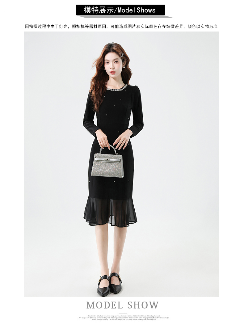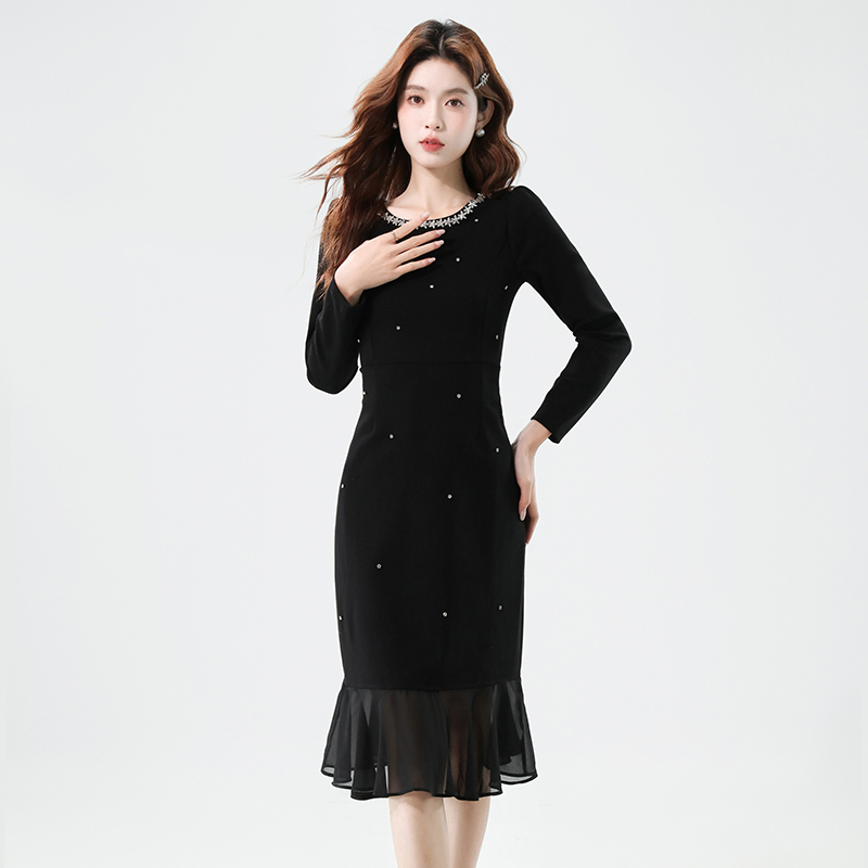 MY13613# 时尚钉钻重工气质显瘦雪纺拼接鱼尾连衣裙女裝貨源服裝批發