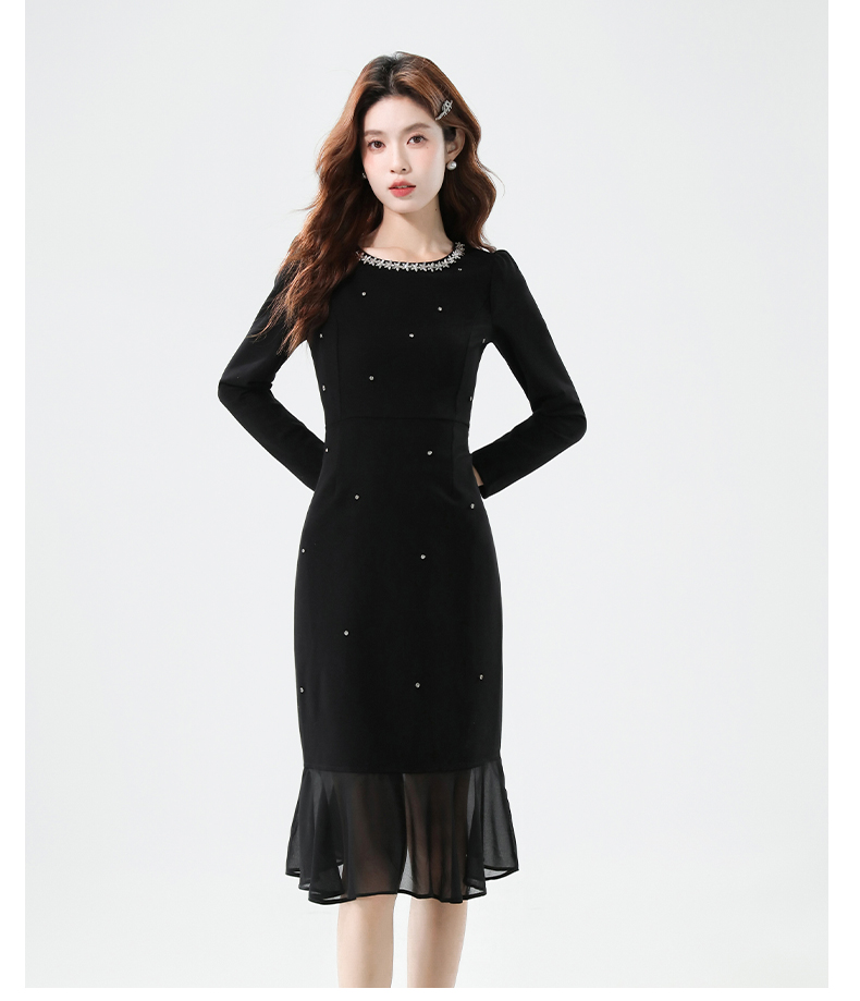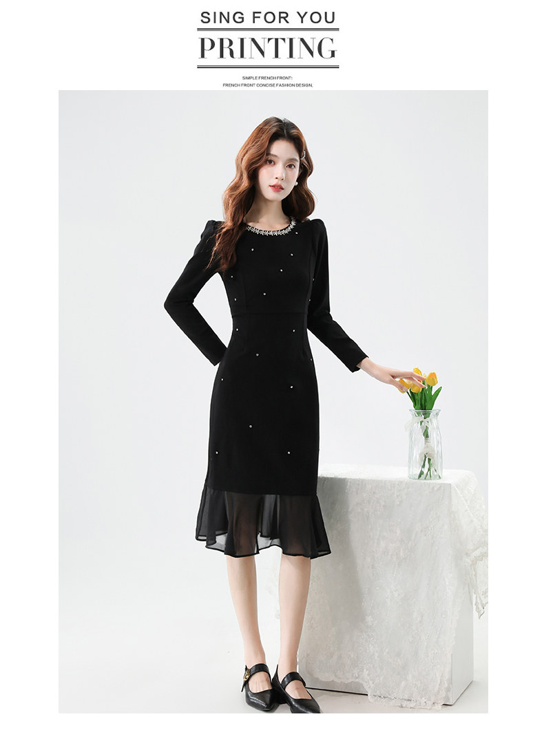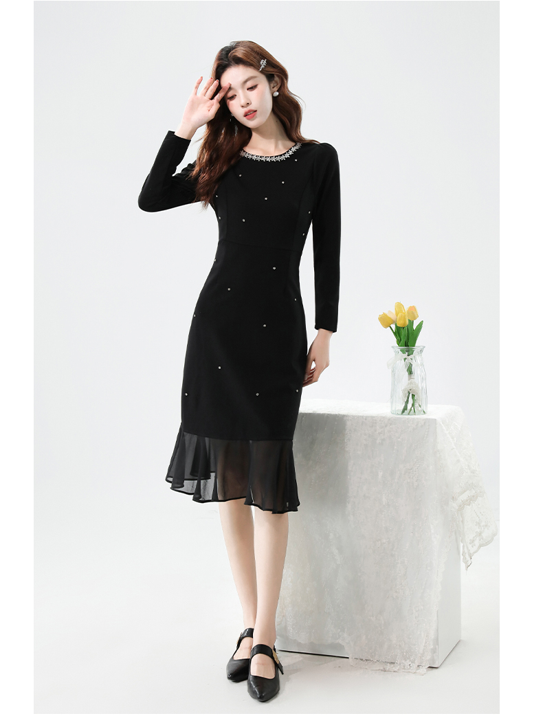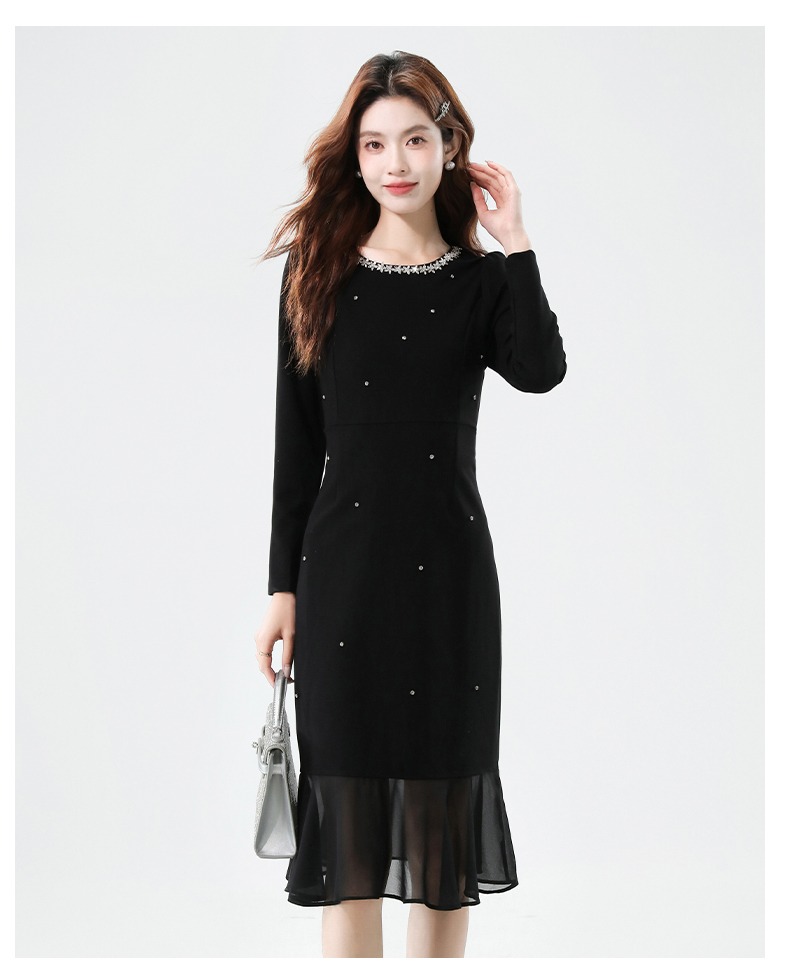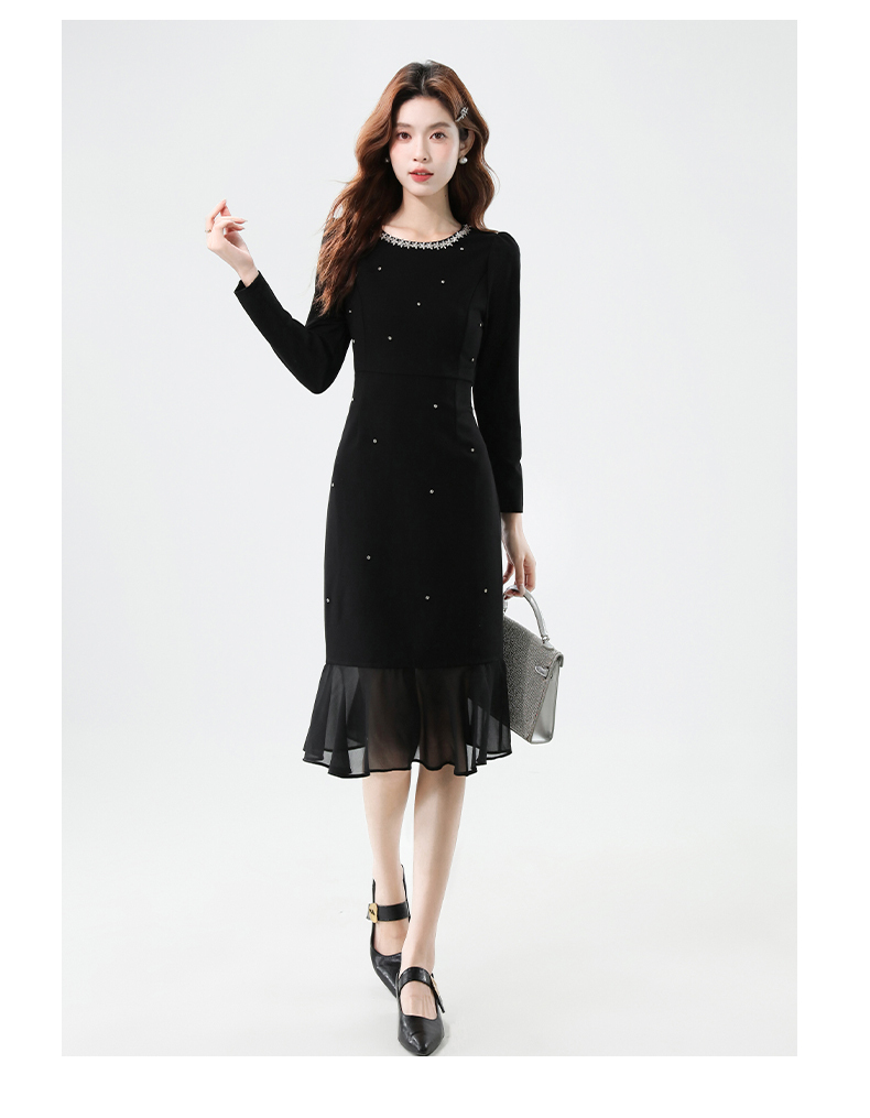 MY13613# 时尚钉钻重工气质显瘦雪纺拼接鱼尾连衣裙女裝貨源服裝批發