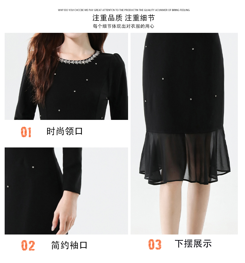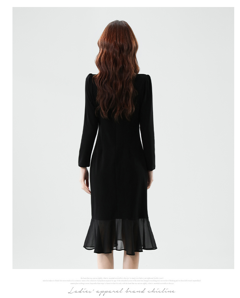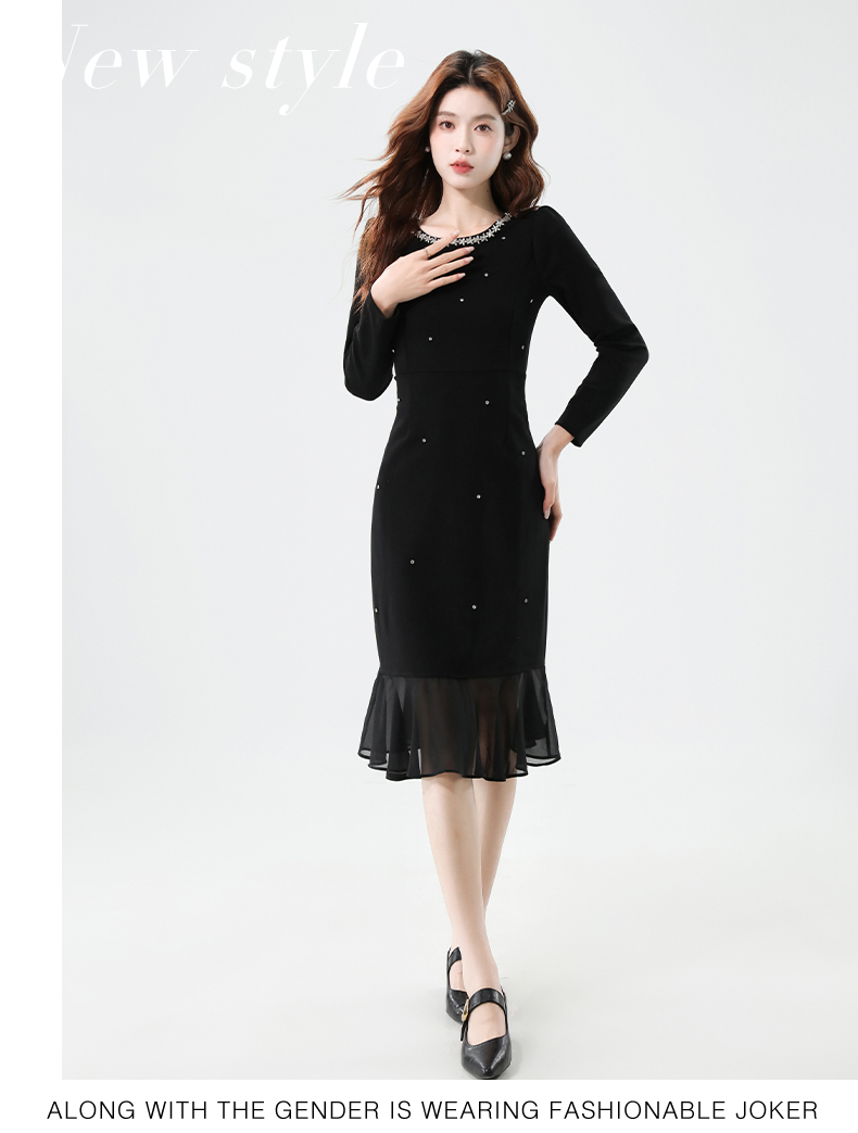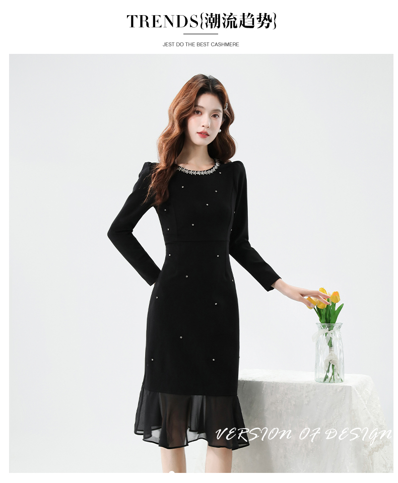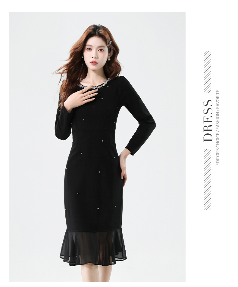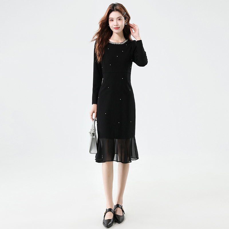 MY13613# 时尚钉钻重工气质显瘦雪纺拼接鱼尾连衣裙女裝貨源服裝批發