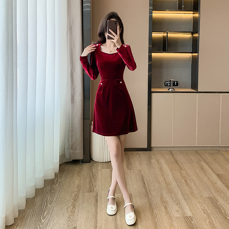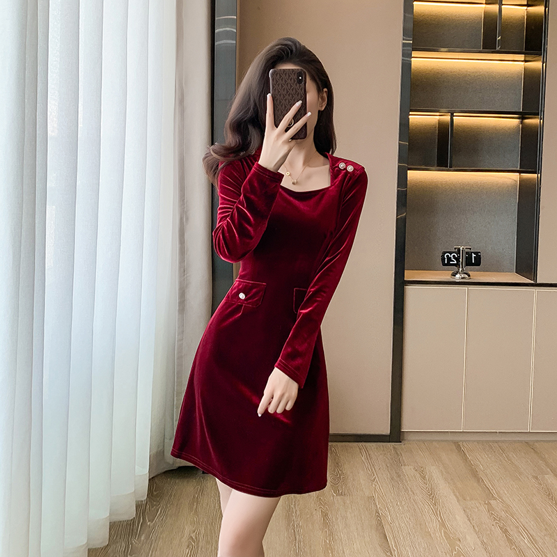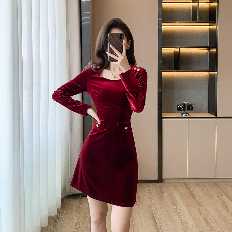 MY13620# 金丝绒女秋装内搭洋气灯笼袖法式锁骨方领短款上衣长袖女裝貨源服裝批發