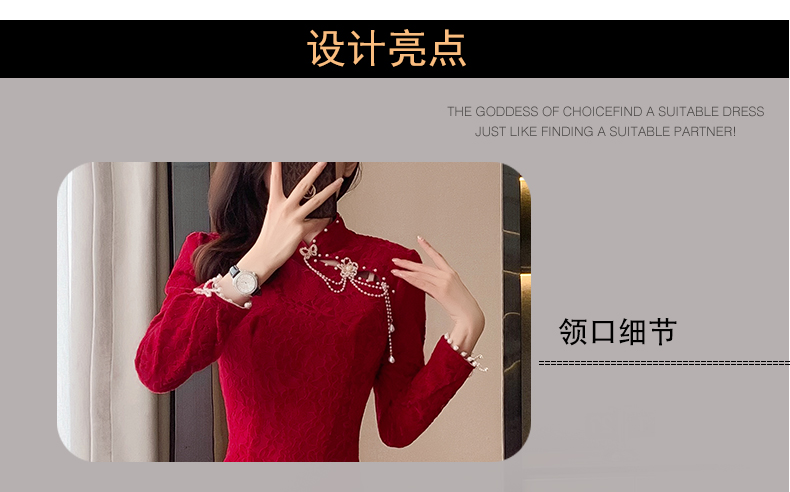 MY13626# 法式立体花朵飘带性感露锁骨蕾丝高腰气质收腰鱼尾连衣裙女裝...