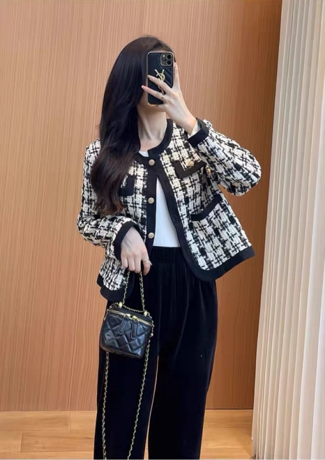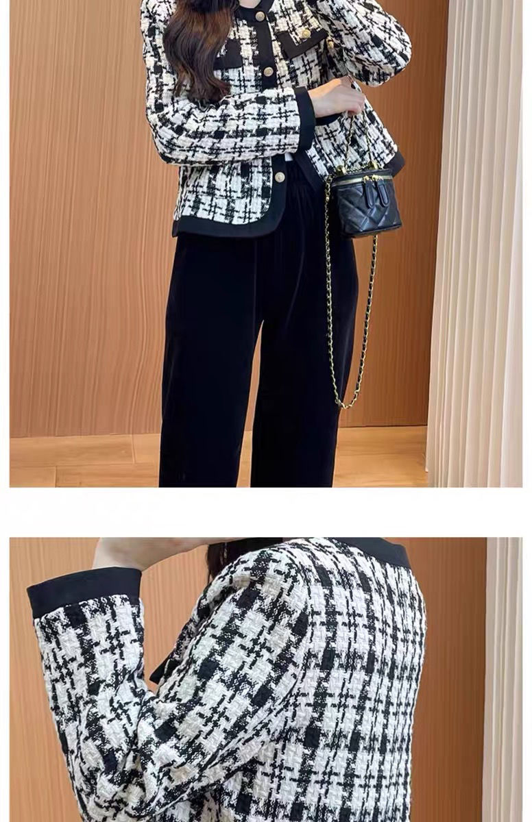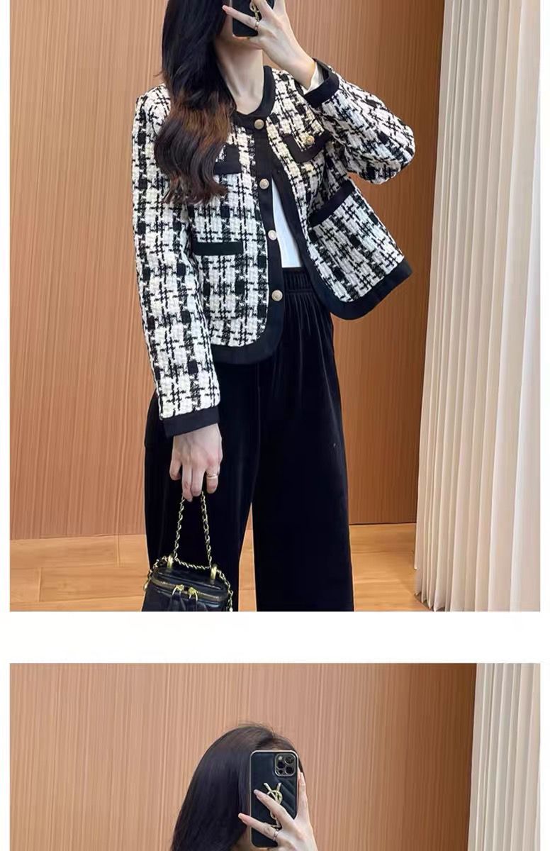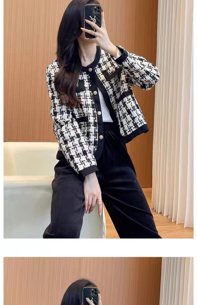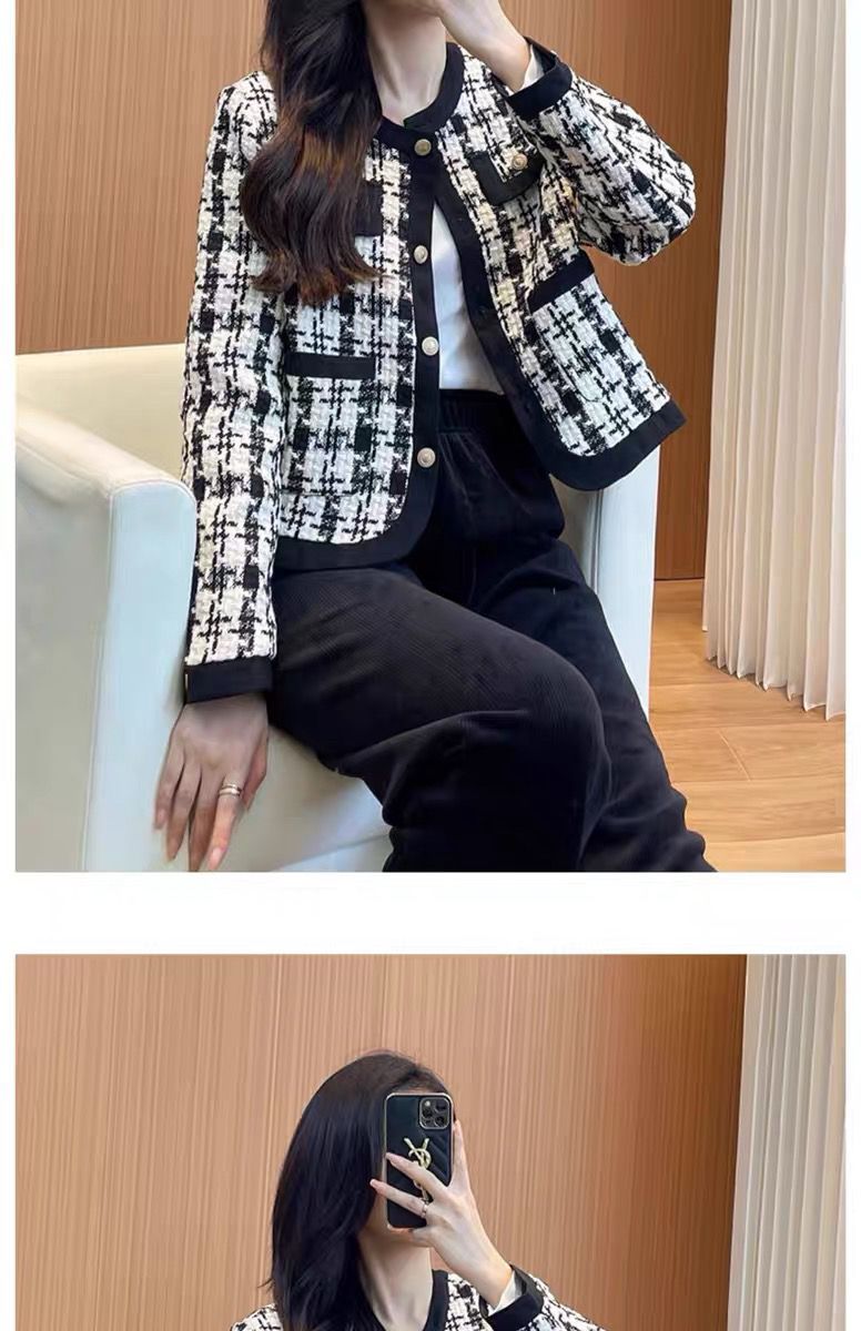MY13640# 新款小外套千鸟格小个子韩版气质名媛小香风格子短款上衣女裝貨源服裝批發