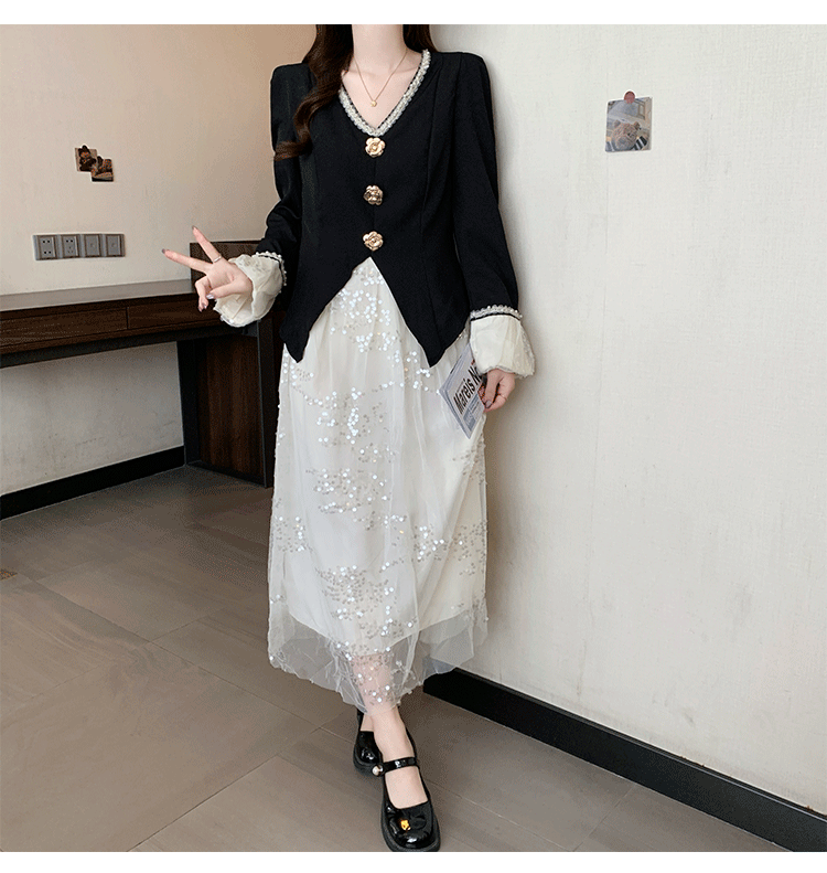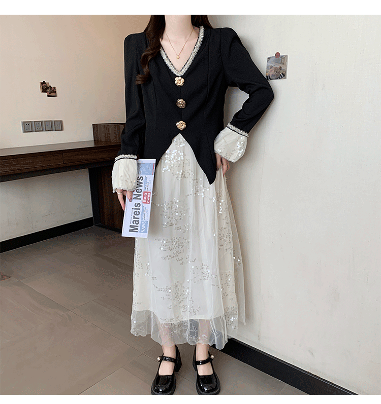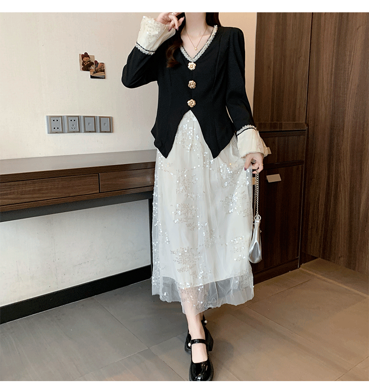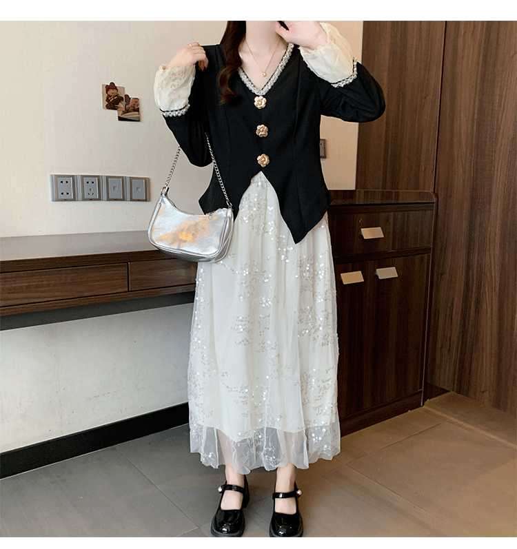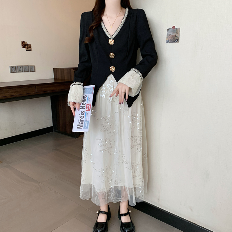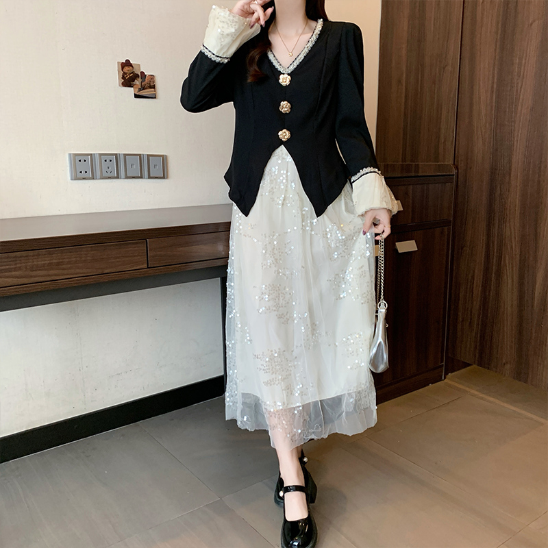MY13643# 新款大码女装法式高级感时尚收腰显瘦假两件连衣裙女裝貨源服裝批發