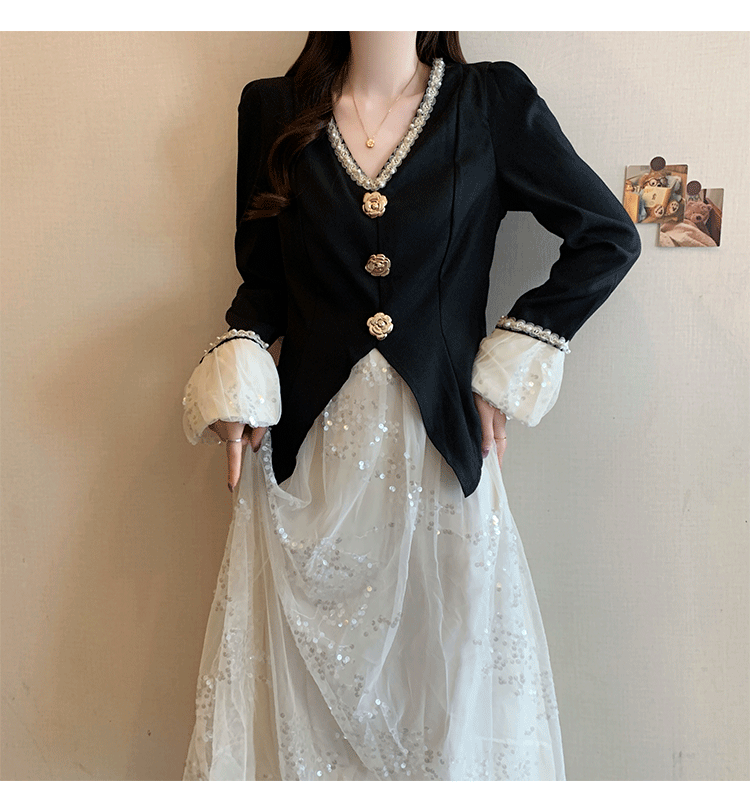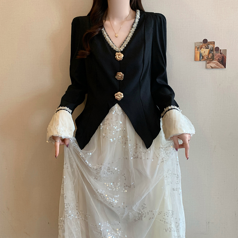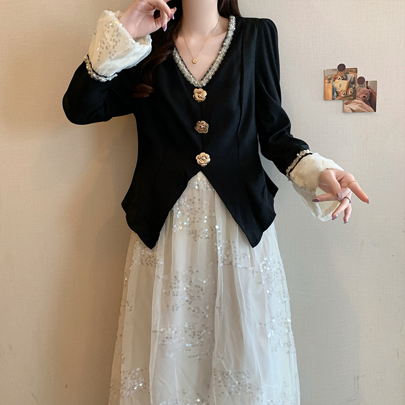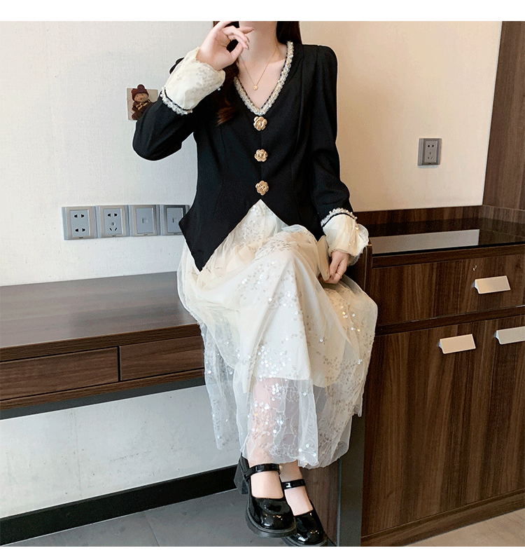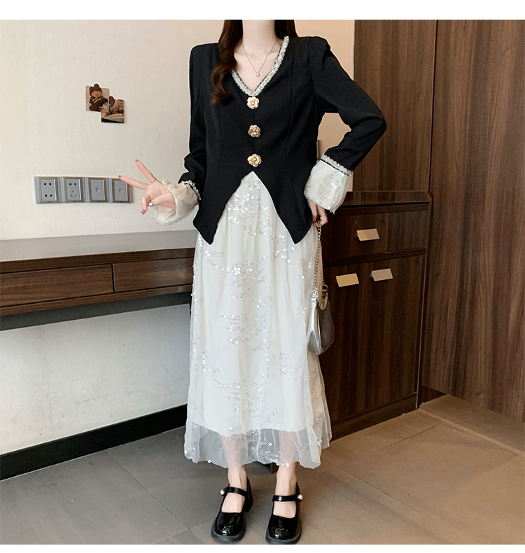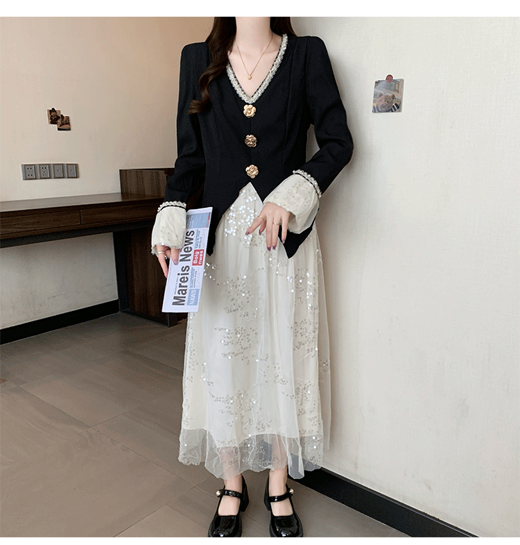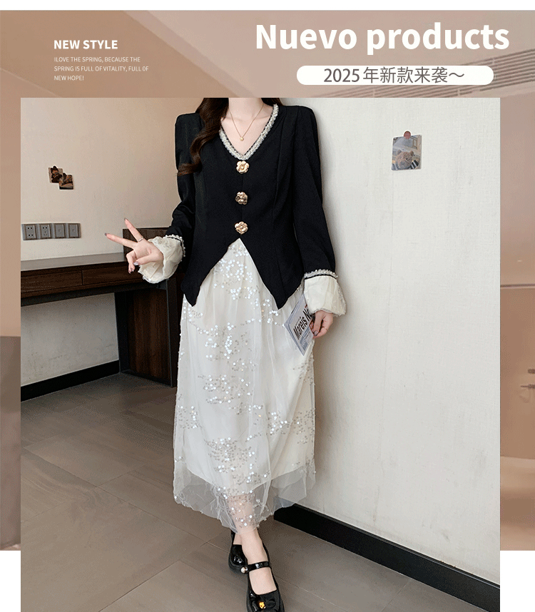 MY13643# 新款大码女装法式高级感时尚收腰显瘦假两件连衣裙女裝貨源服裝批發