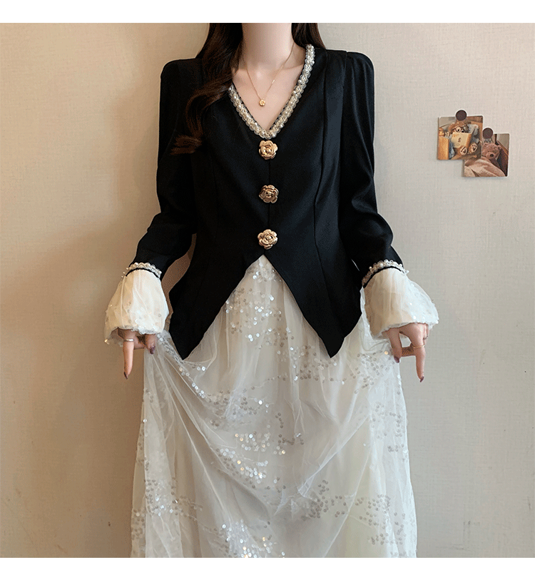 MY13613# 时尚钉钻重工气质显瘦雪纺拼接鱼尾连衣裙女裝貨源服裝批發