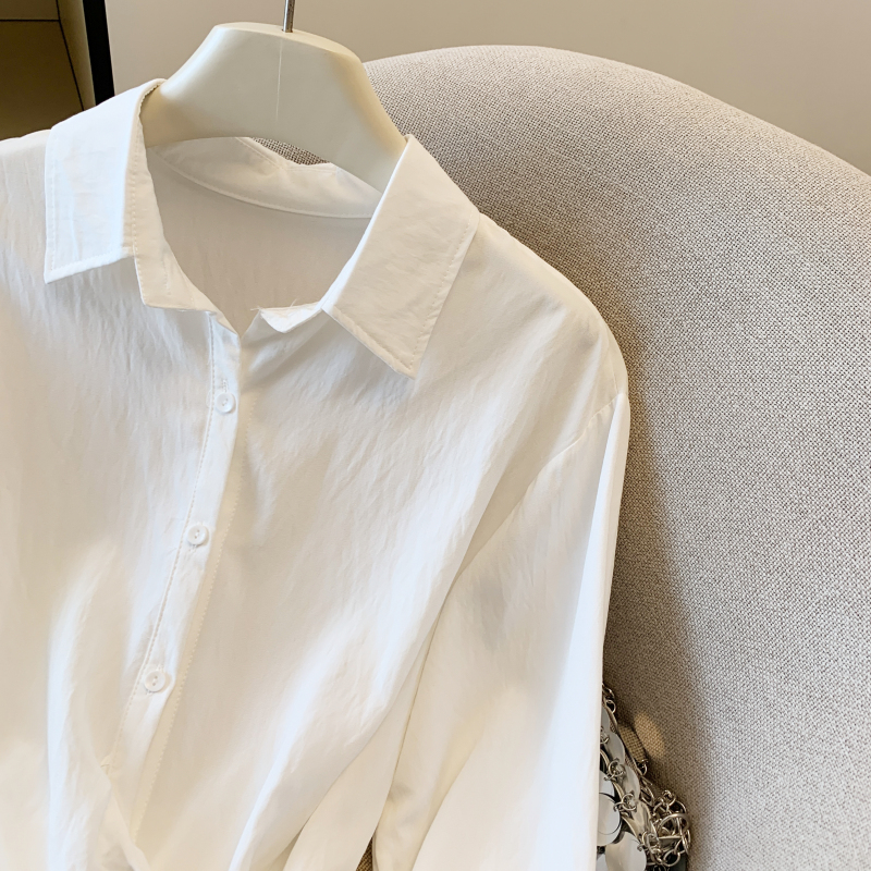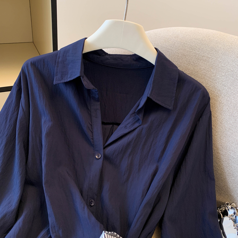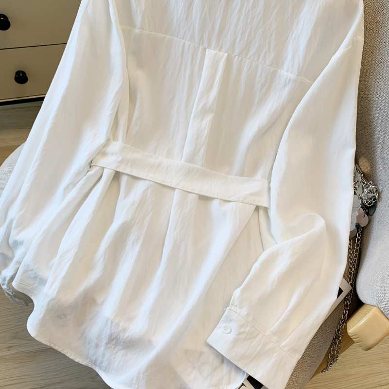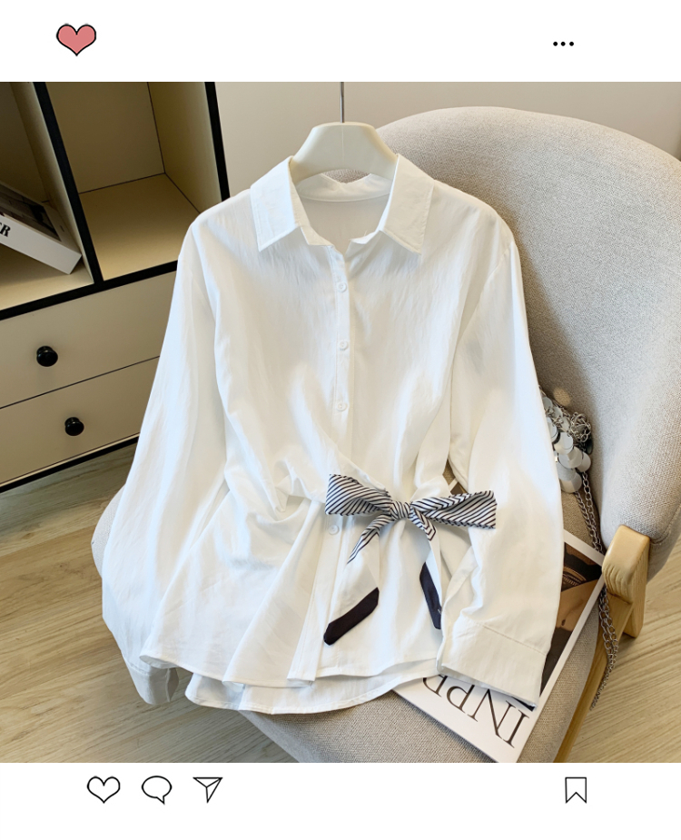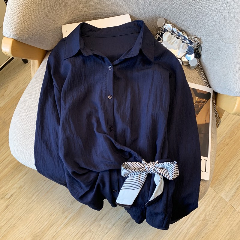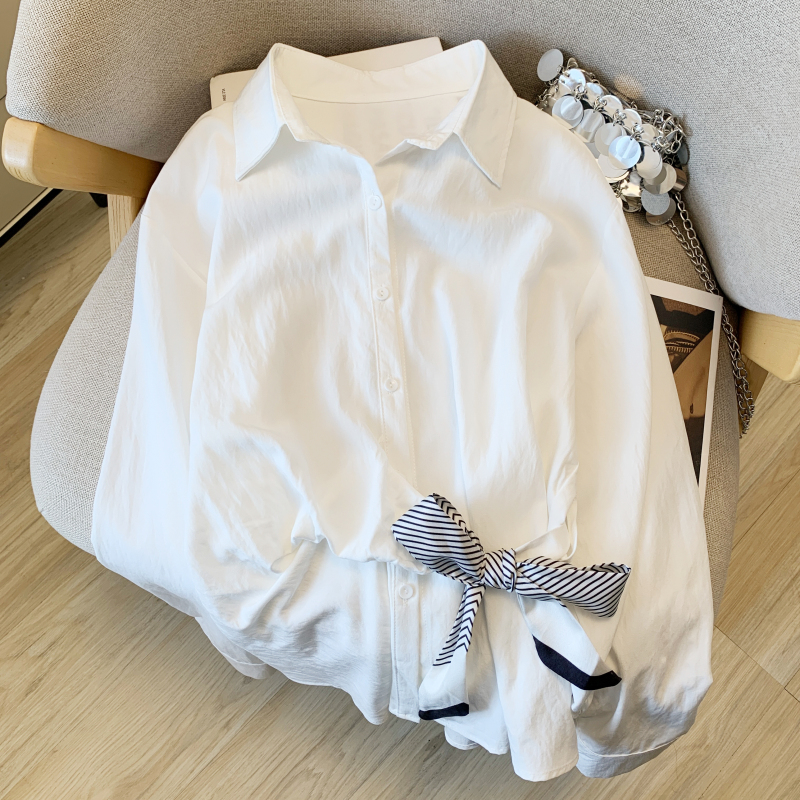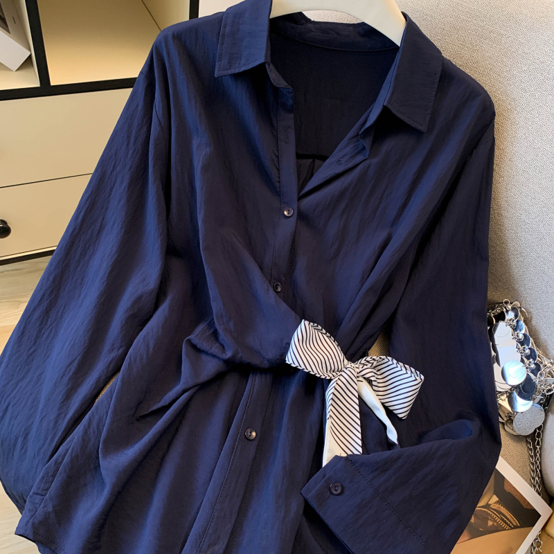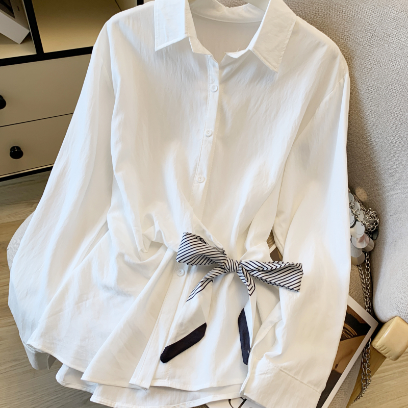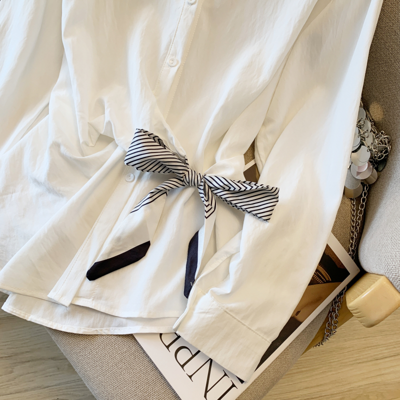 MY13647# 新款收腰显瘦设计感小众轻熟丝巾时尚别致长袖衬衣女裝貨源服裝批發