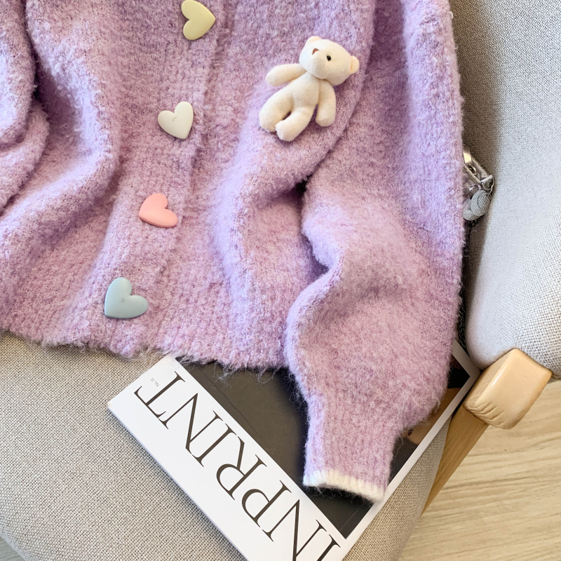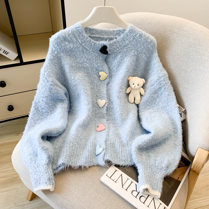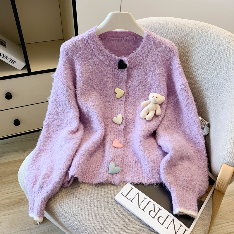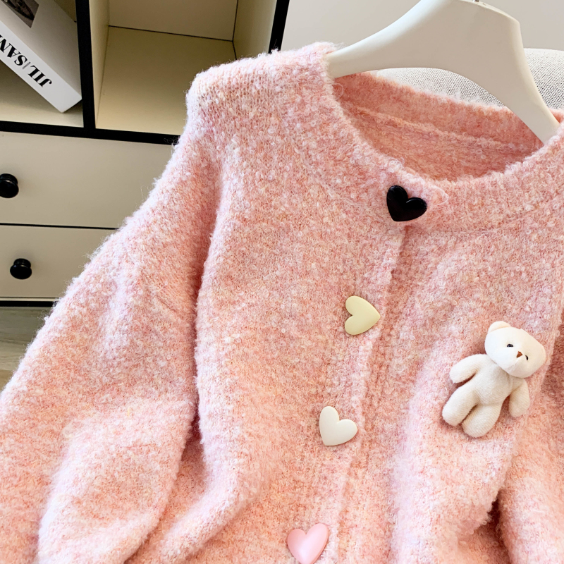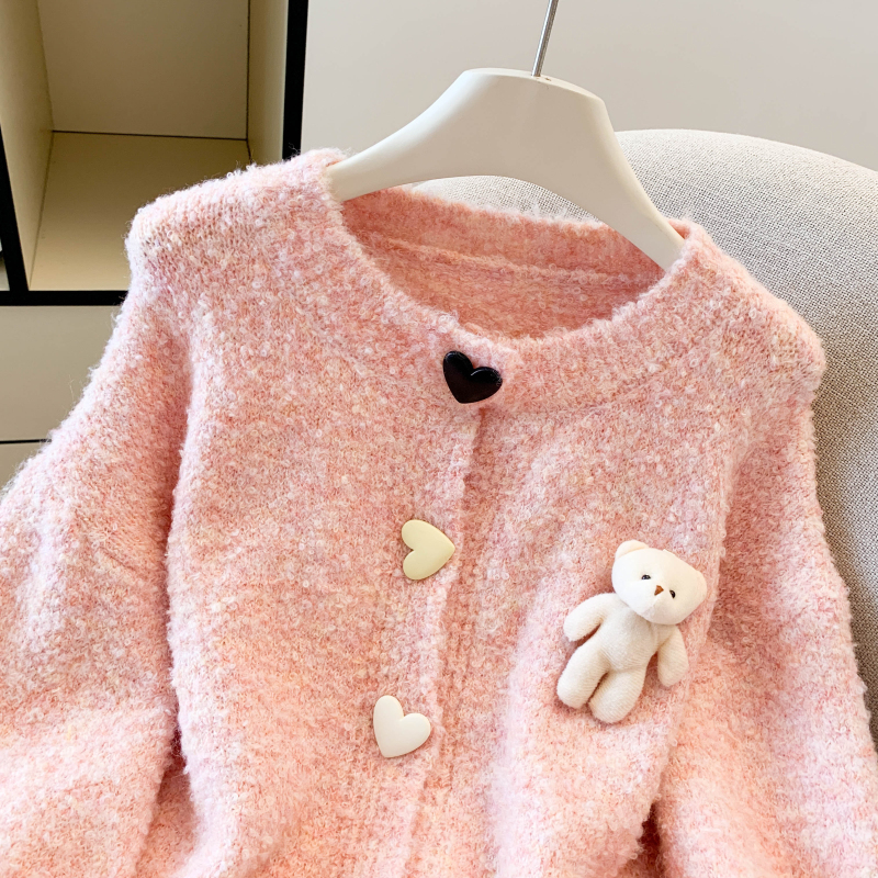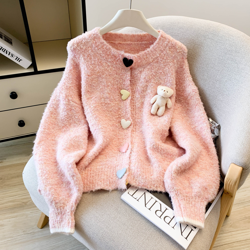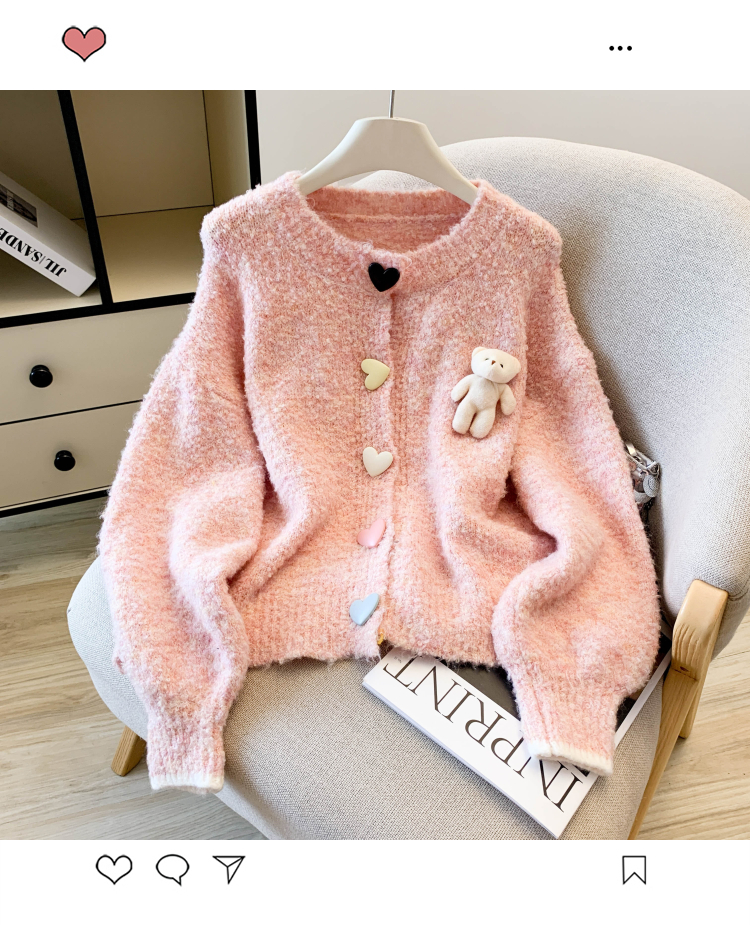 MY13648# 送小熊公仔 针织开衫毛衣女新款宽松软糯毛衣长袖外套女裝貨源服裝批發