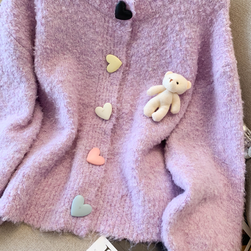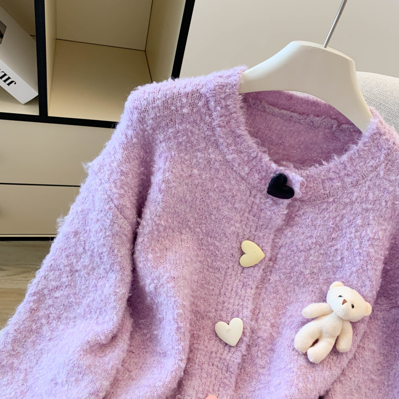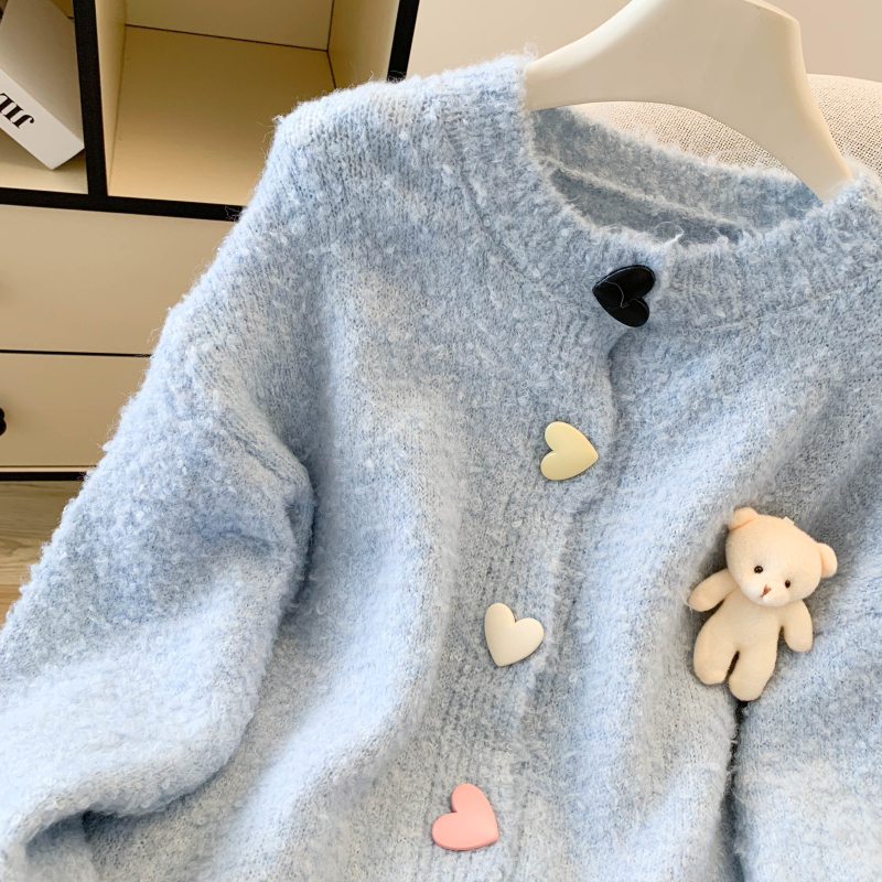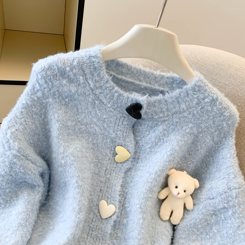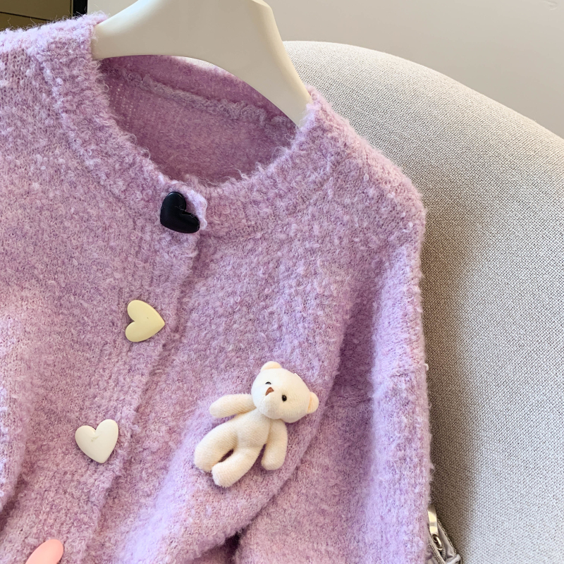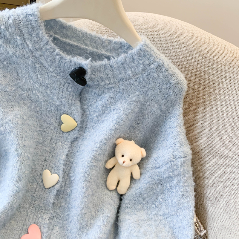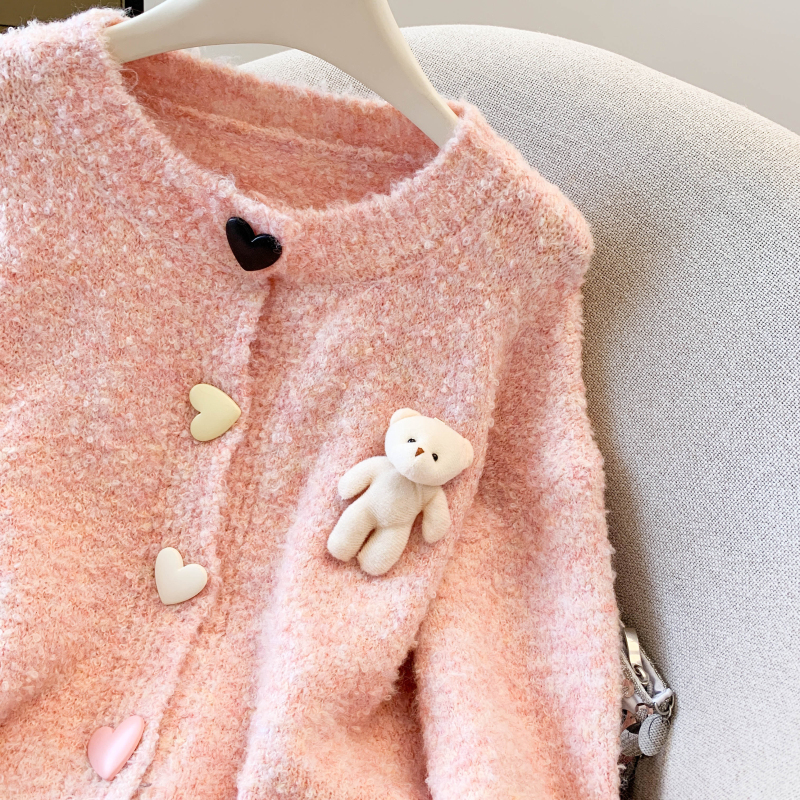 MY13648# 送小熊公仔 针织开衫毛衣女新款宽松软糯毛衣长袖外套女裝貨源服裝批發