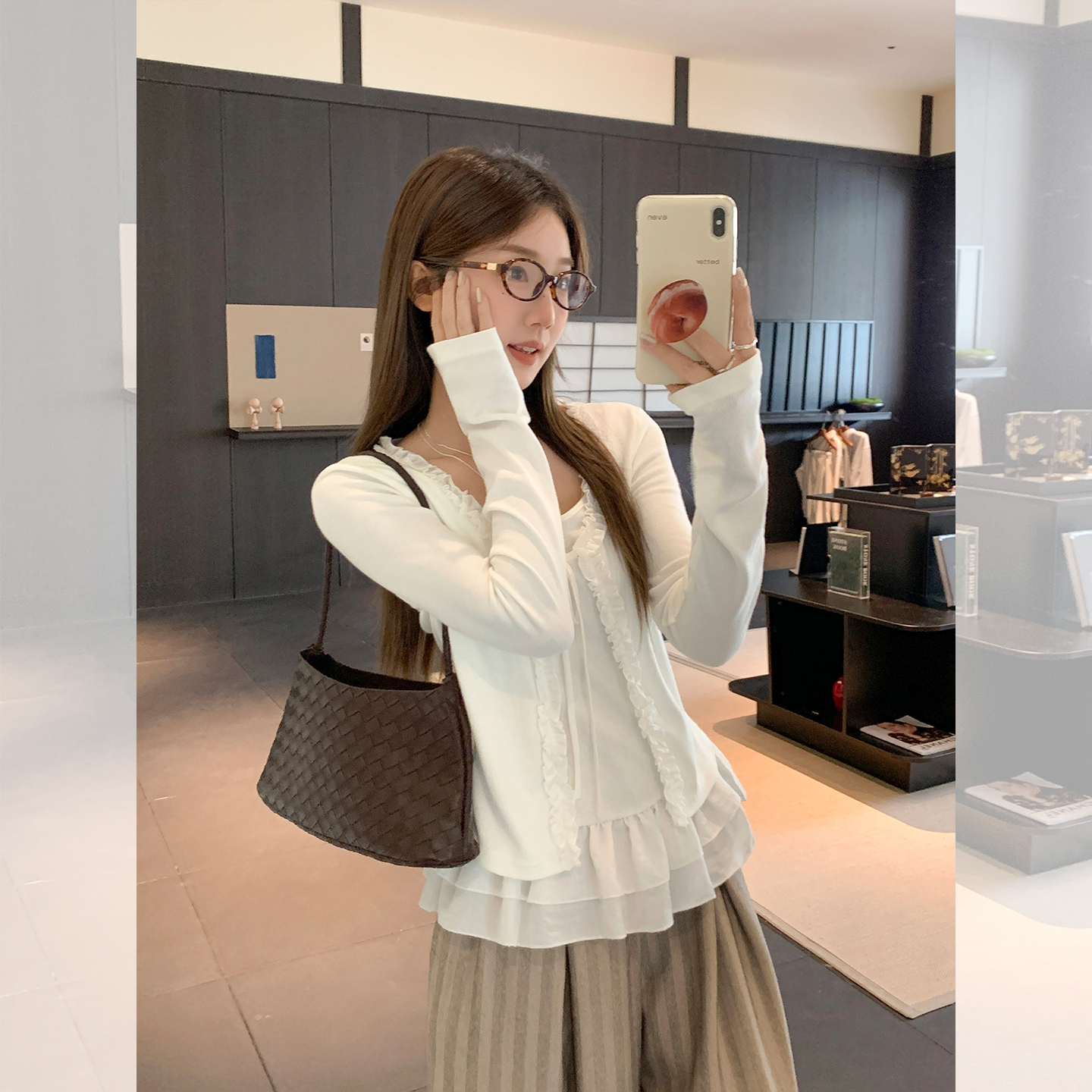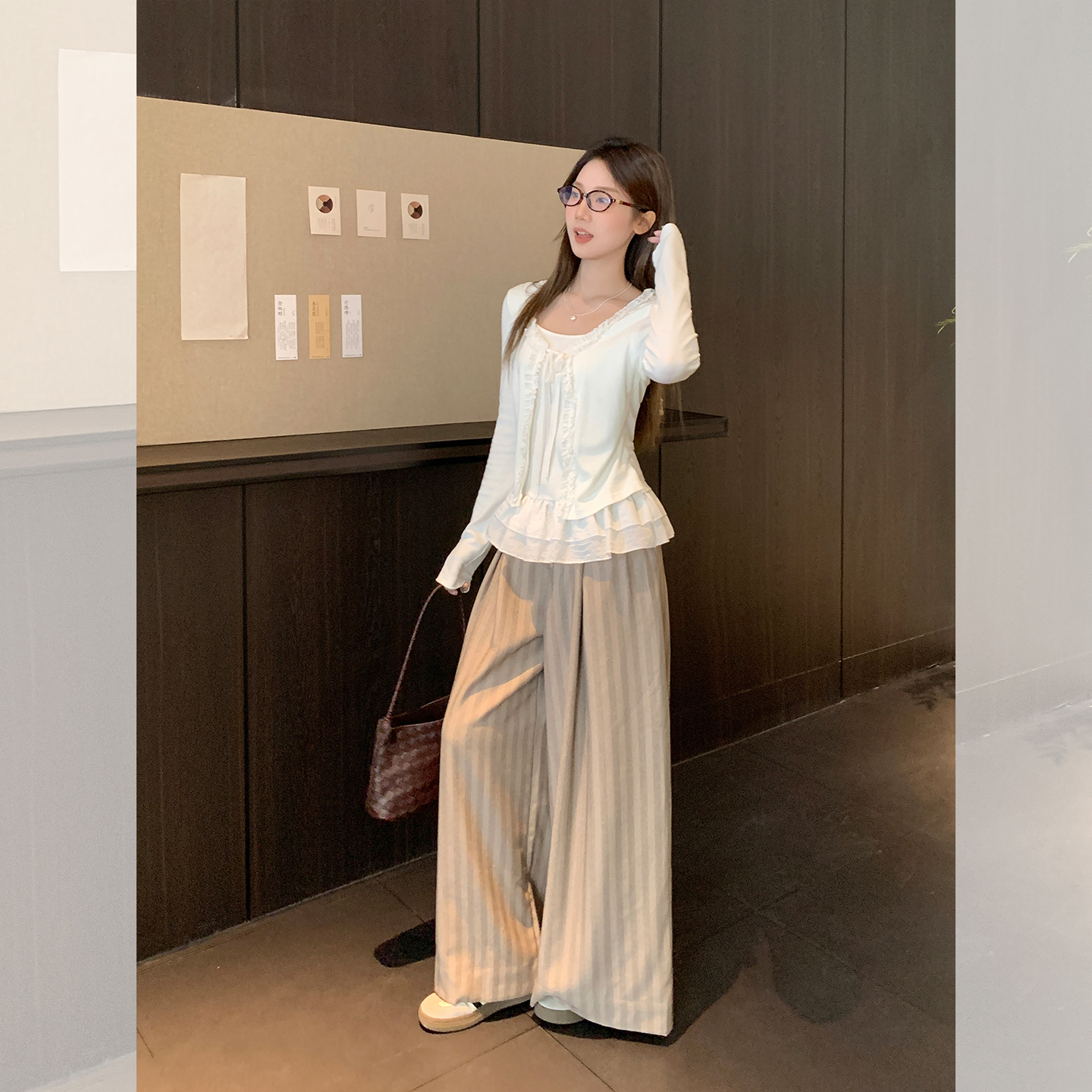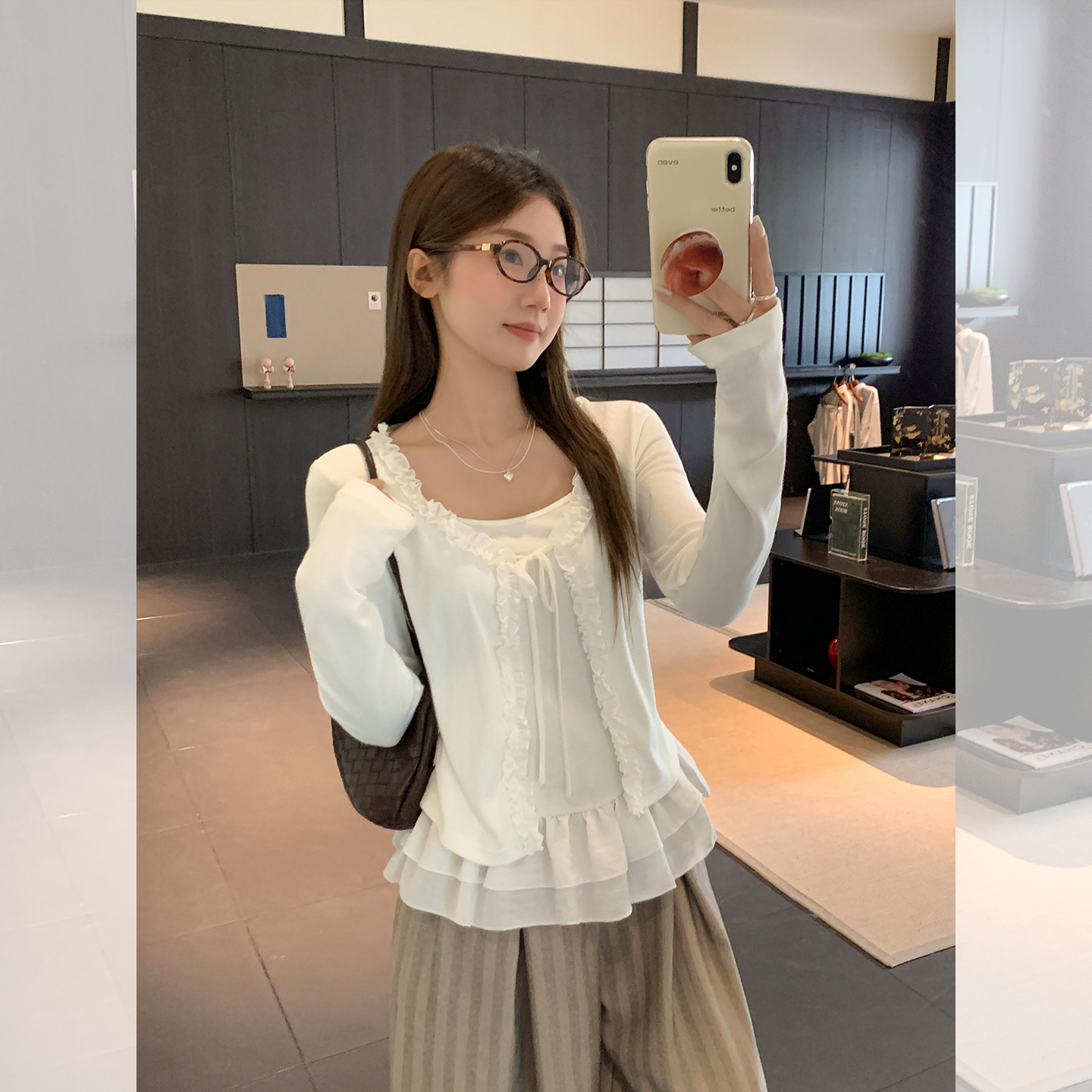 MY13653# 甜辣纯欲假两件拼接设计感长袖T恤新款花边系带上衣女裝貨源服裝批發