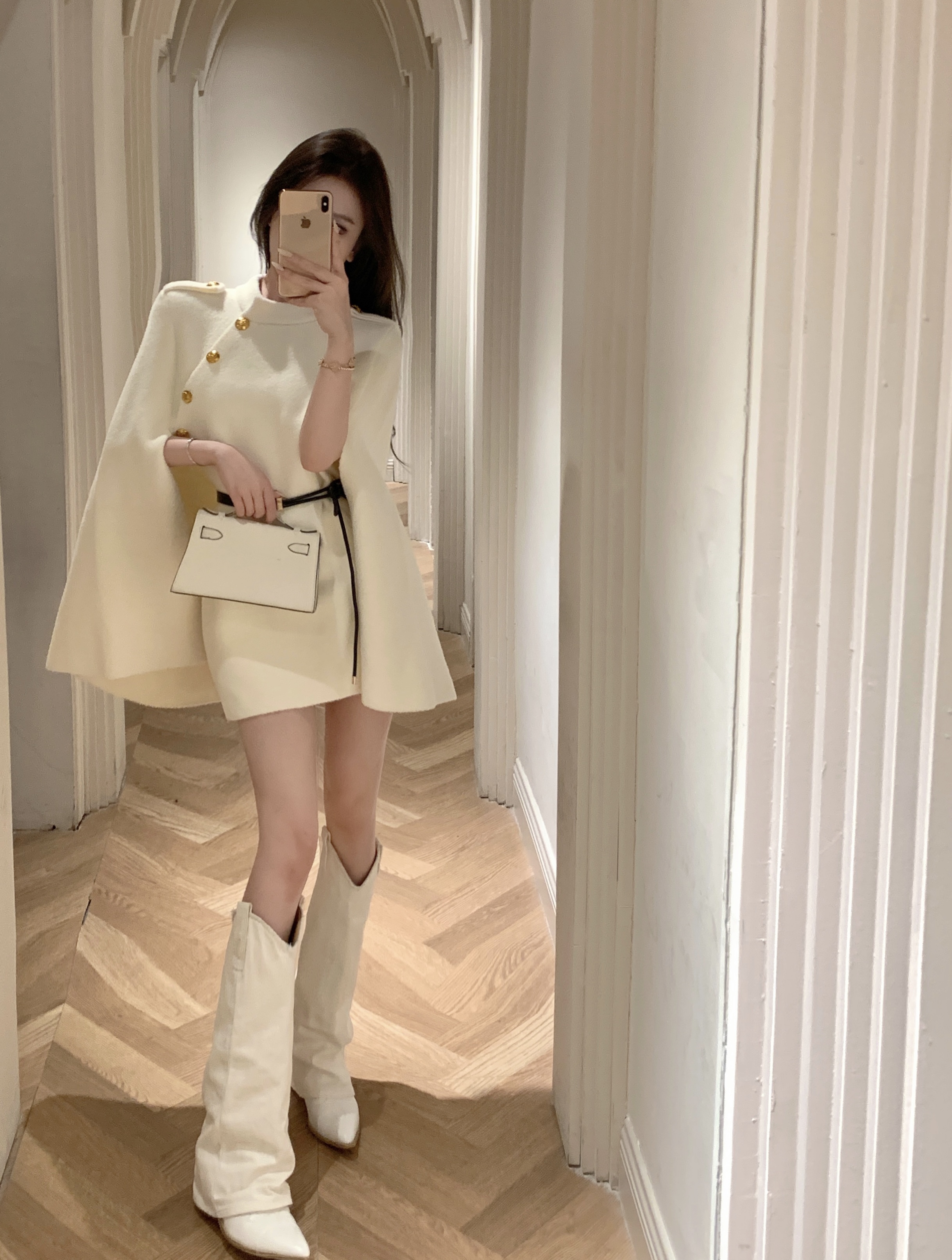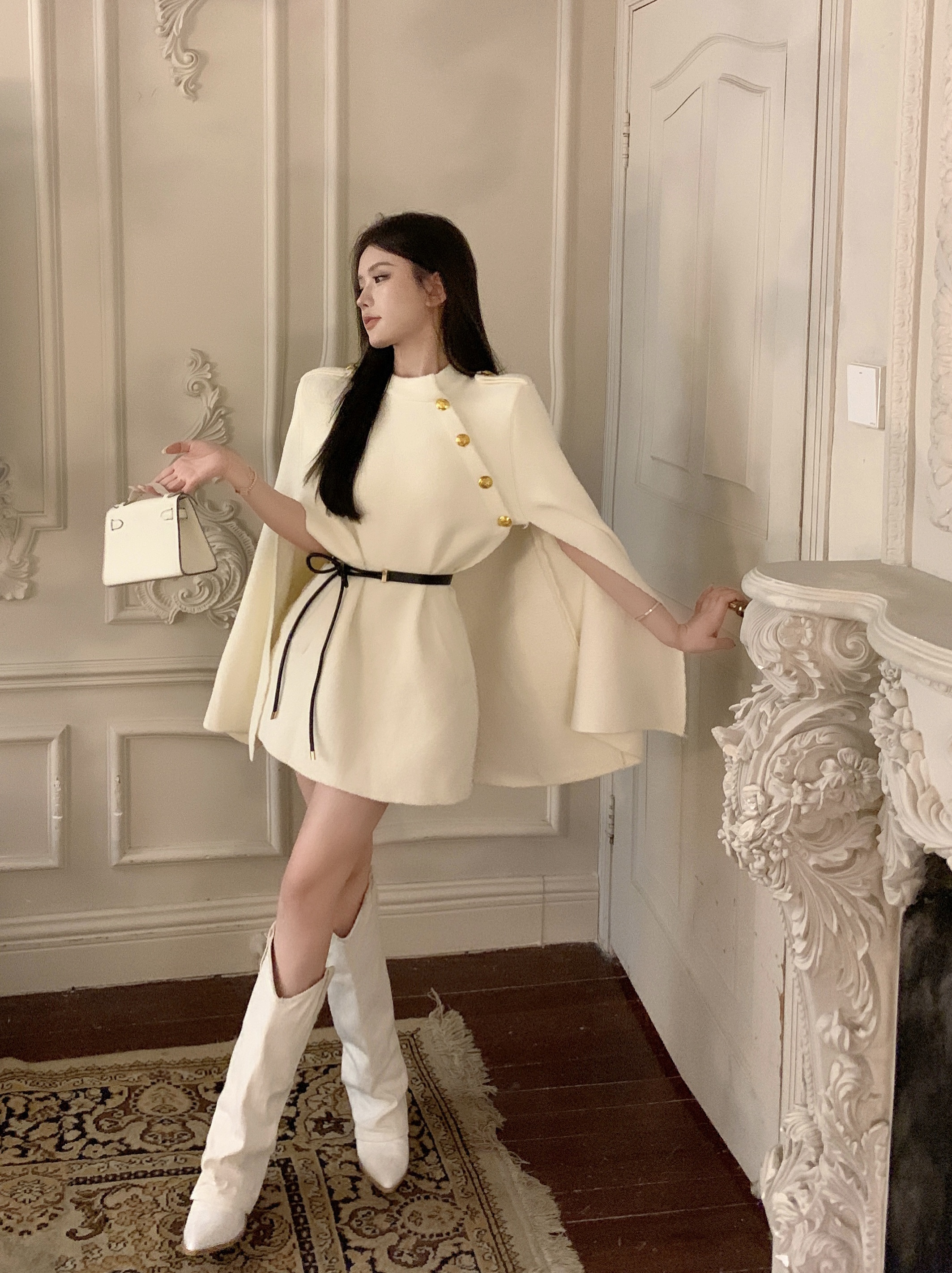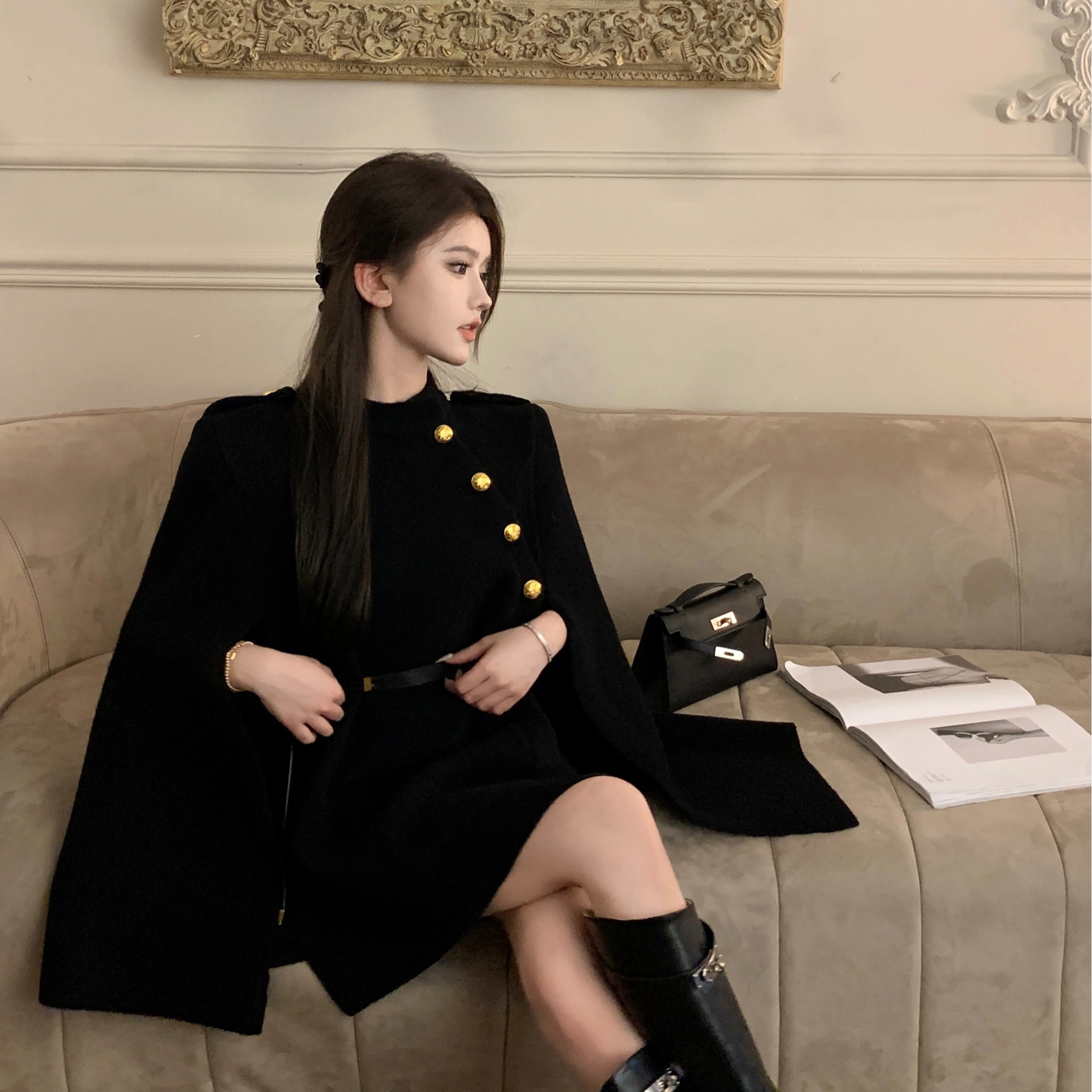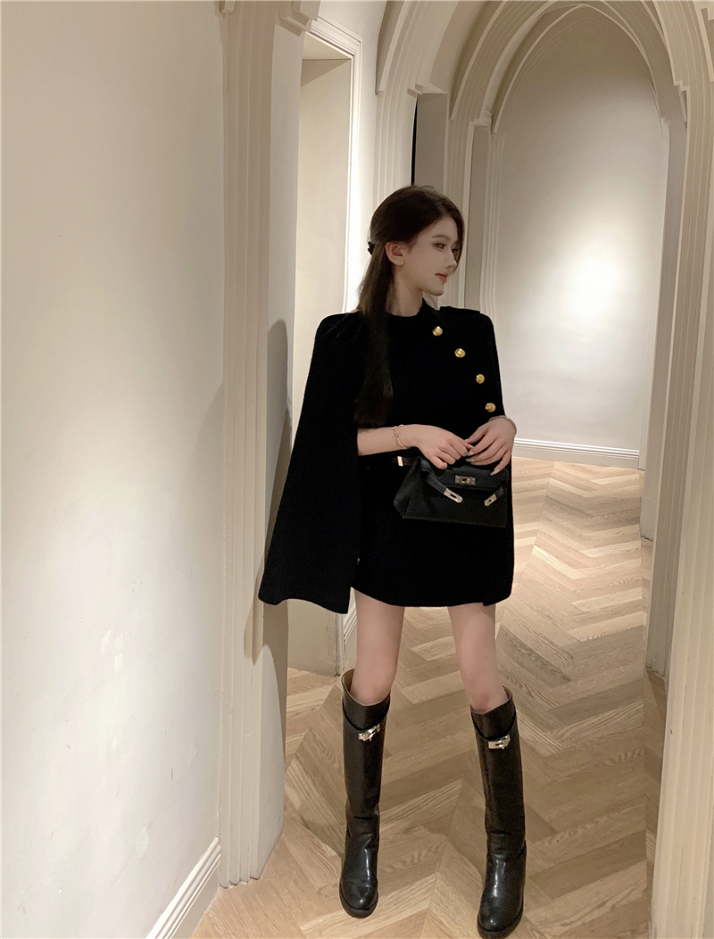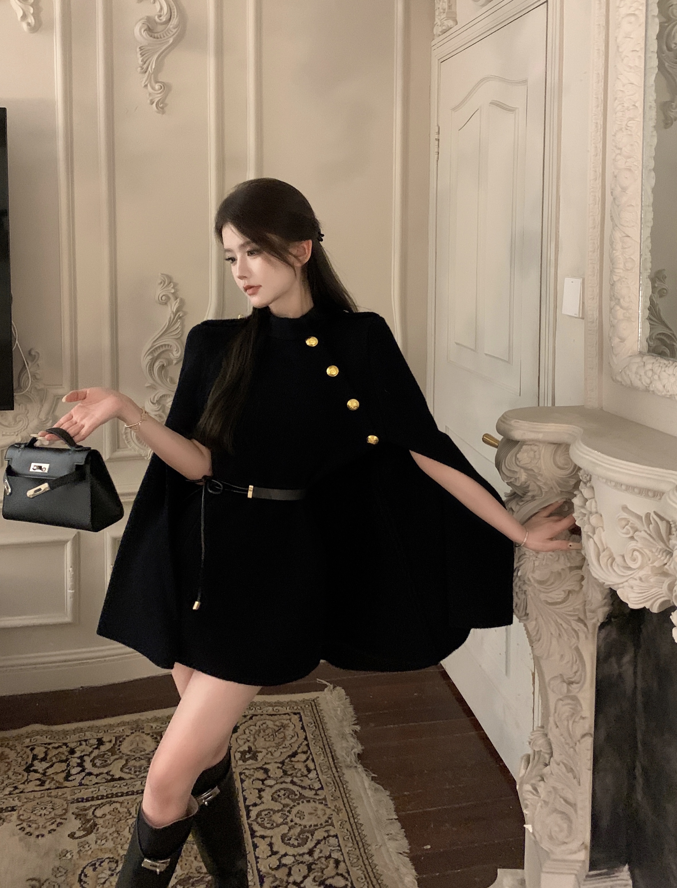 MY13680# 财阀斗篷 氛围感黑白2色高级时髦洋气百搭斗篷外套女女裝貨源服裝批發