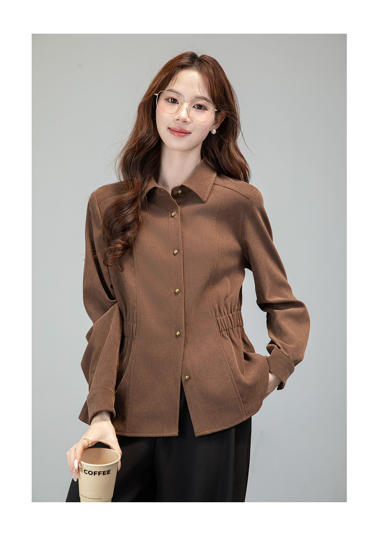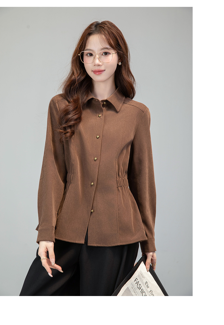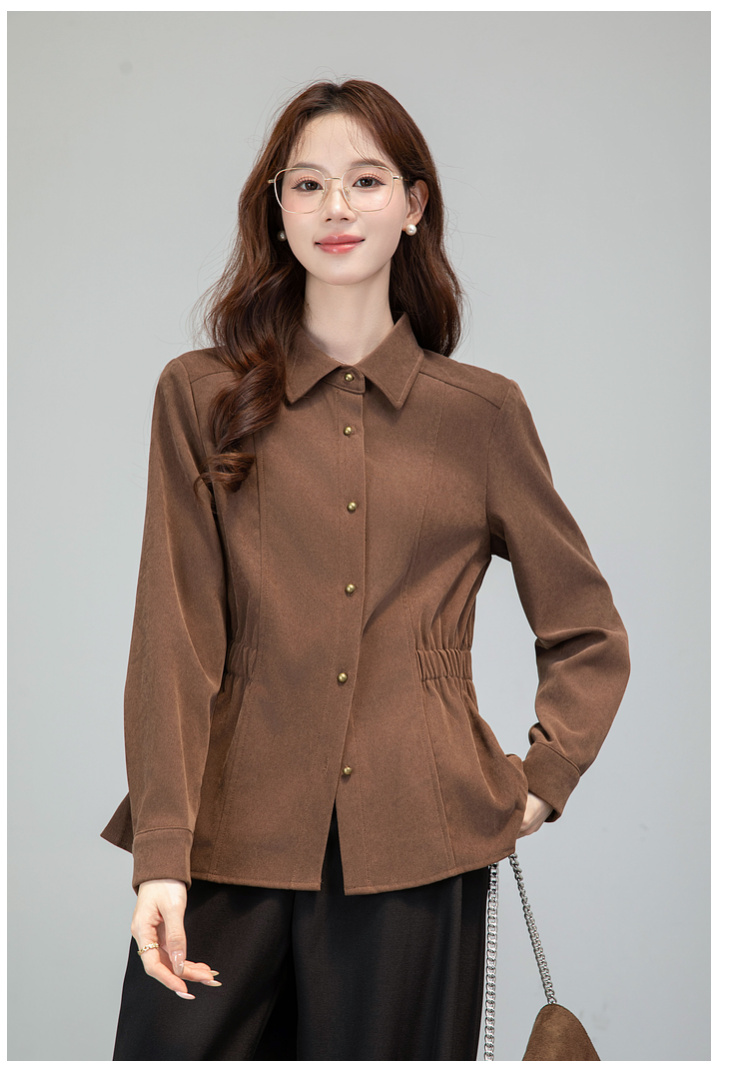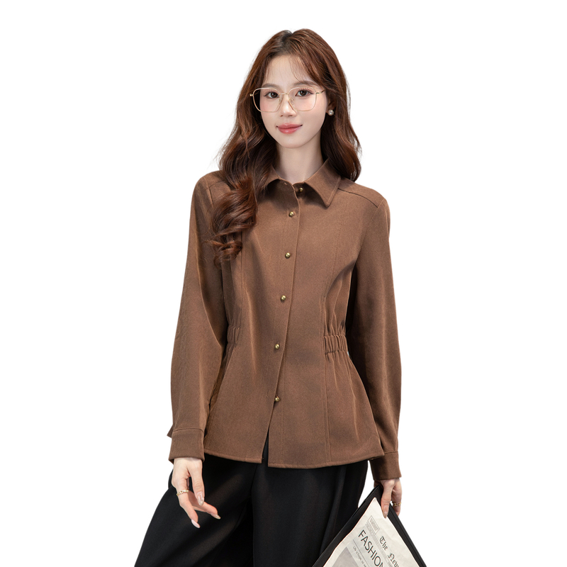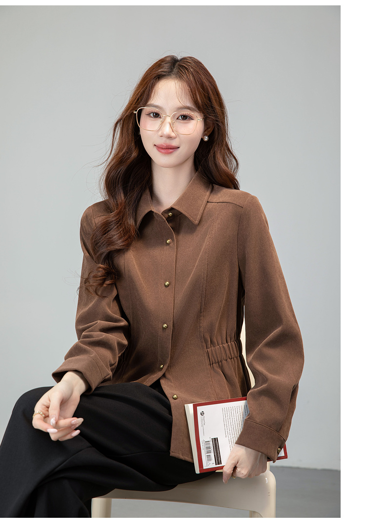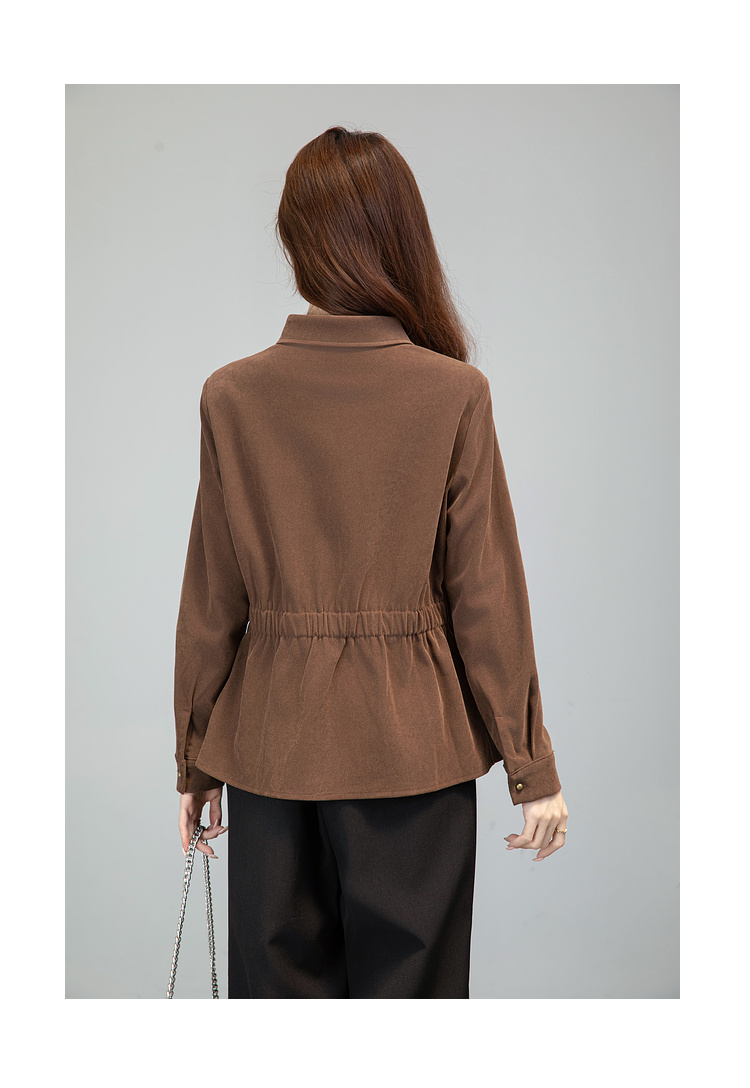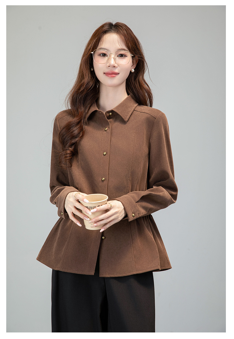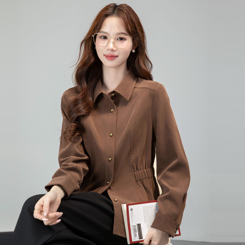 MY13688# 法式复古磨毛长袖衬衫新款翻领设计感小众收腰显瘦上衣女裝貨源服裝批發