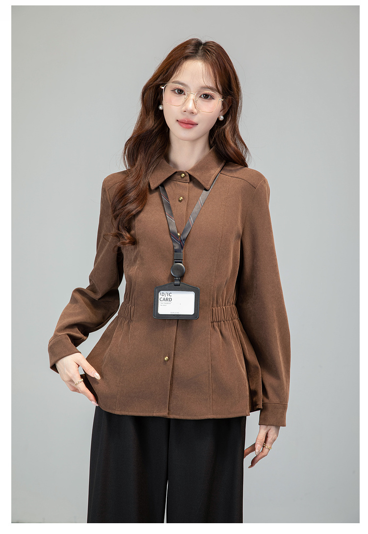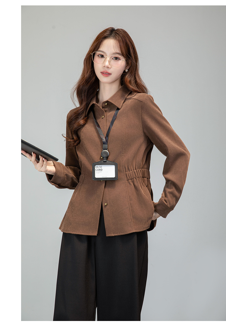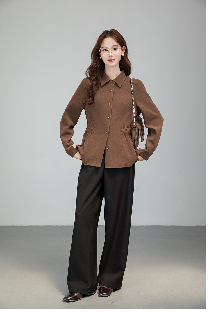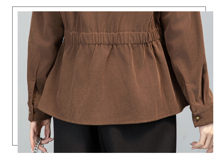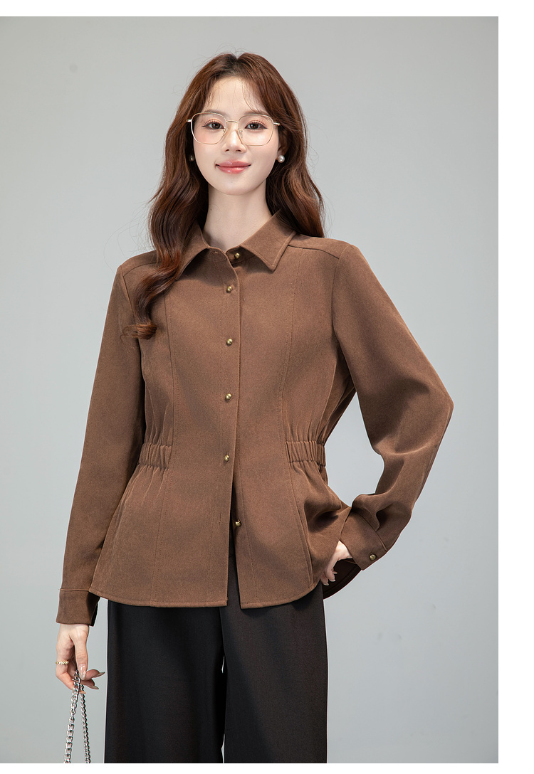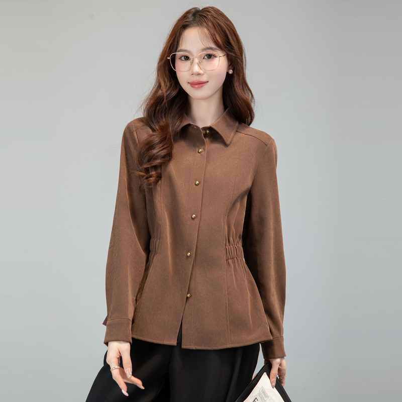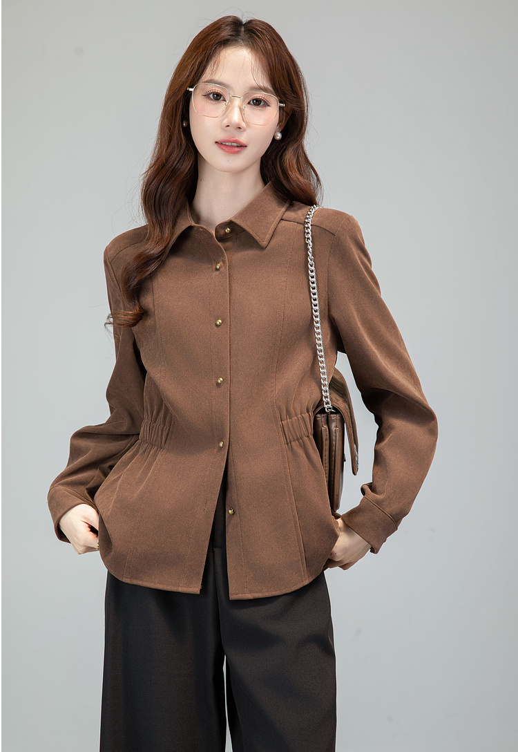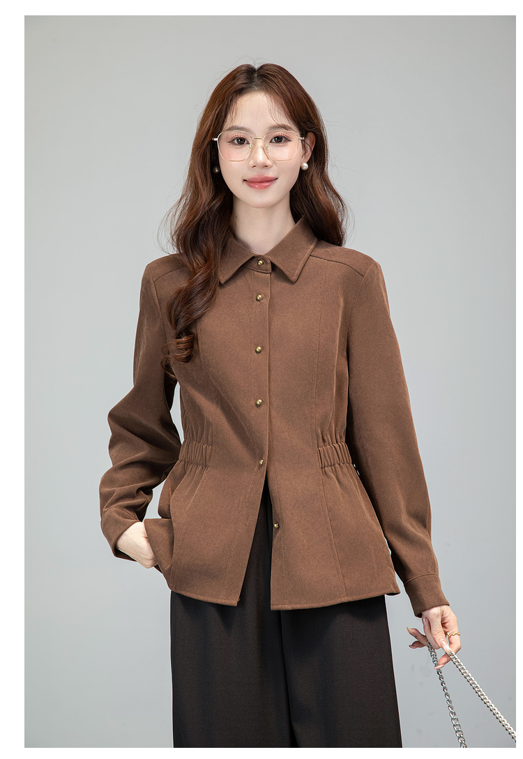 MY13688# 法式复古磨毛长袖衬衫新款翻领设计感小众收腰显瘦上衣女裝貨源服裝批發
