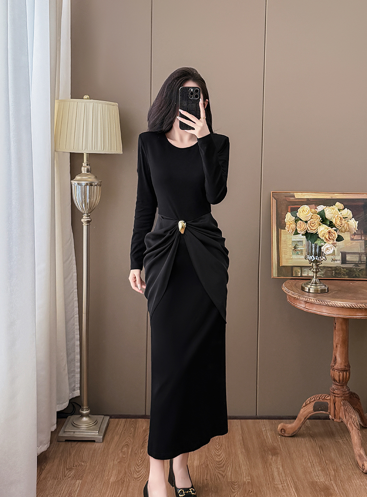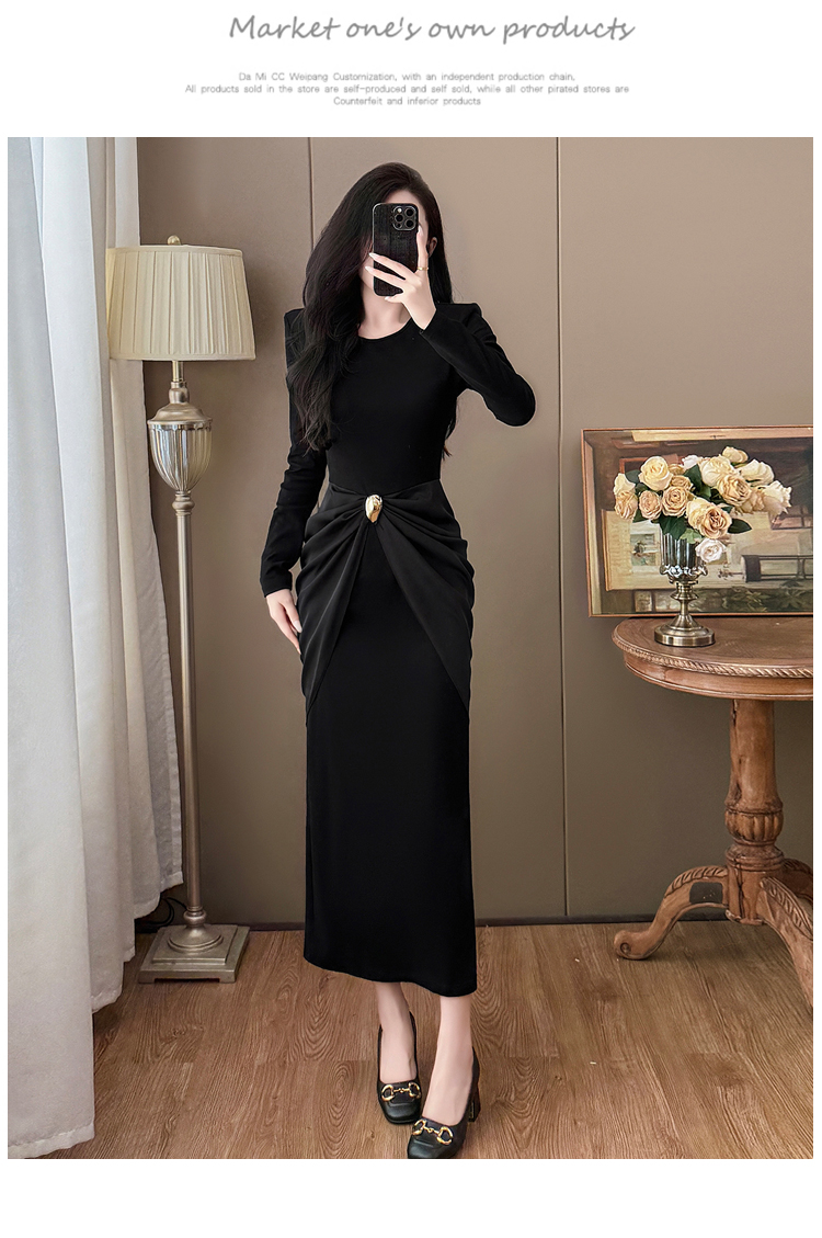 MY13712# 大码名媛高级感轻奢女神设计感气质显瘦拼接连衣裙女裝貨源服裝批發