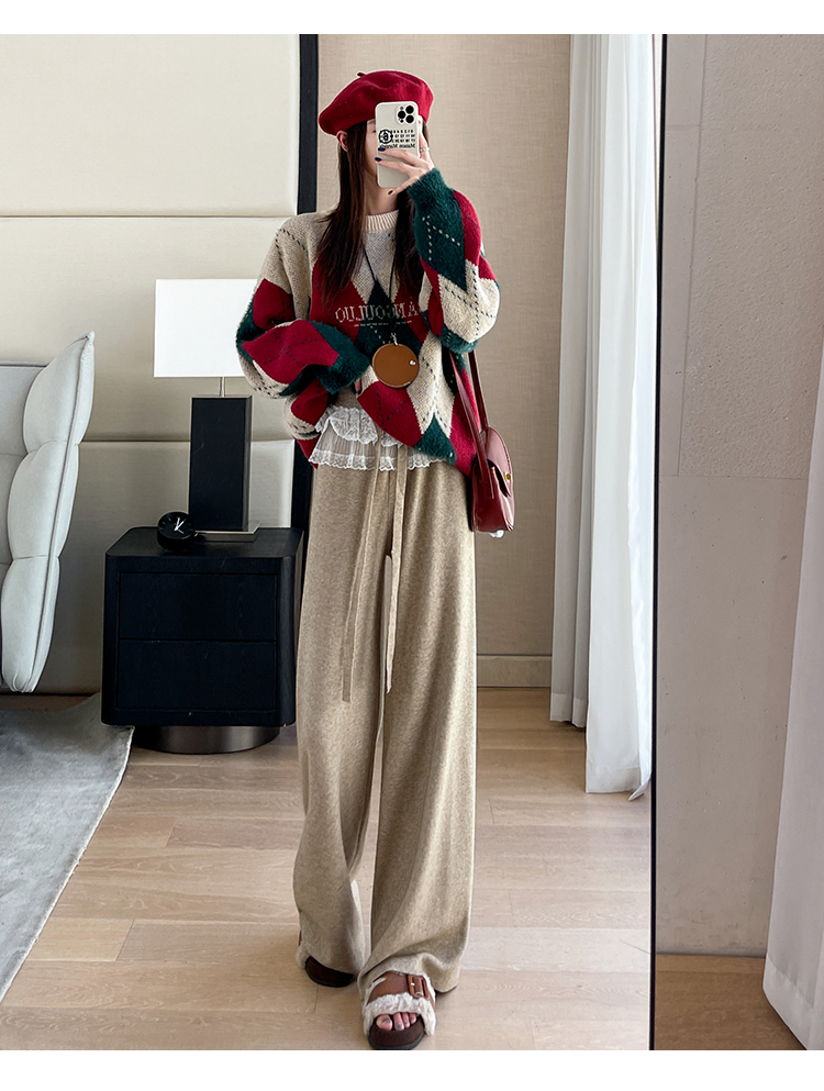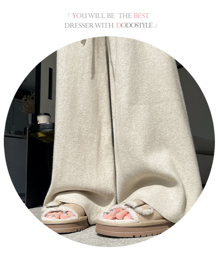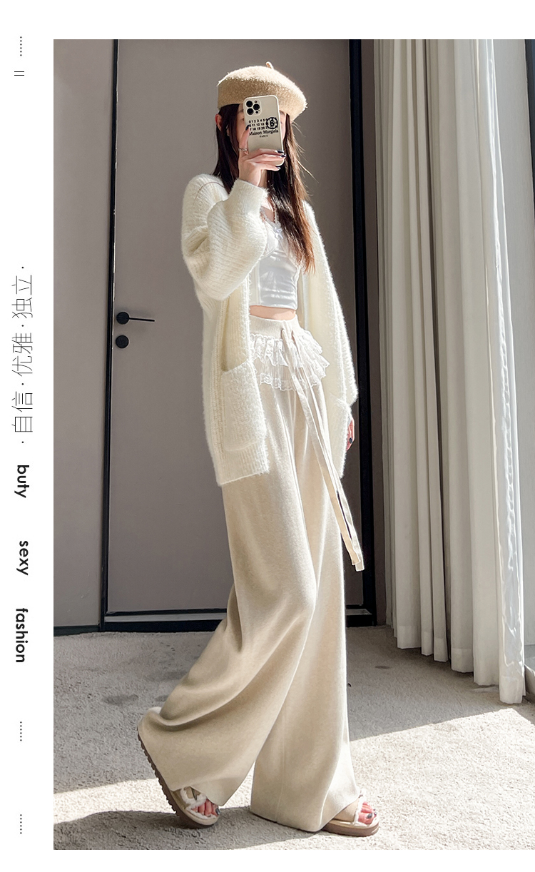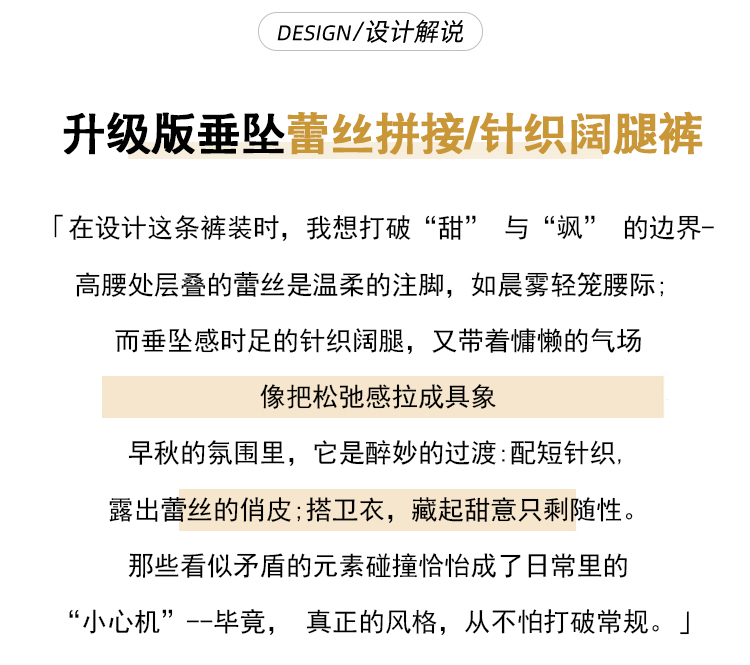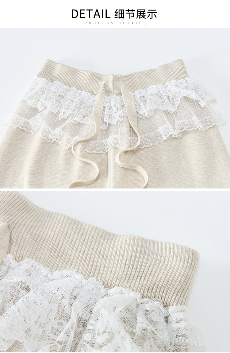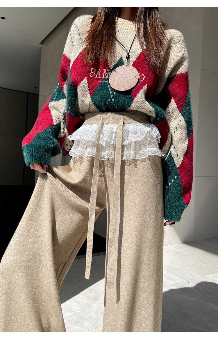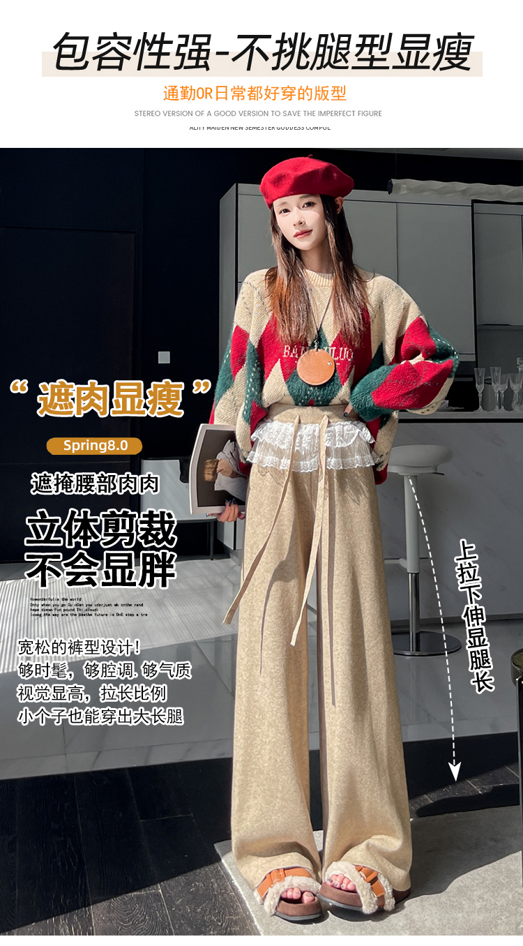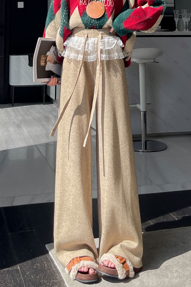 MY13720# 蕾丝拼接针织阔腿裤新款高腰显瘦慵懒垂感休闲裤子女裝貨源服裝批發