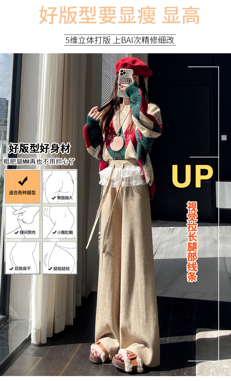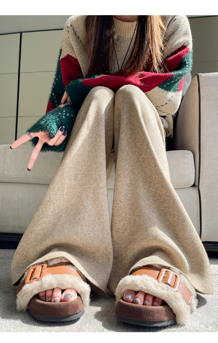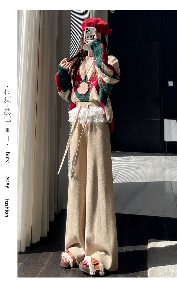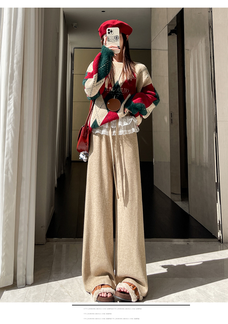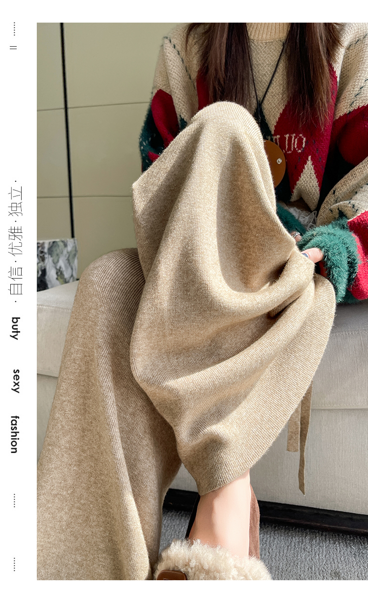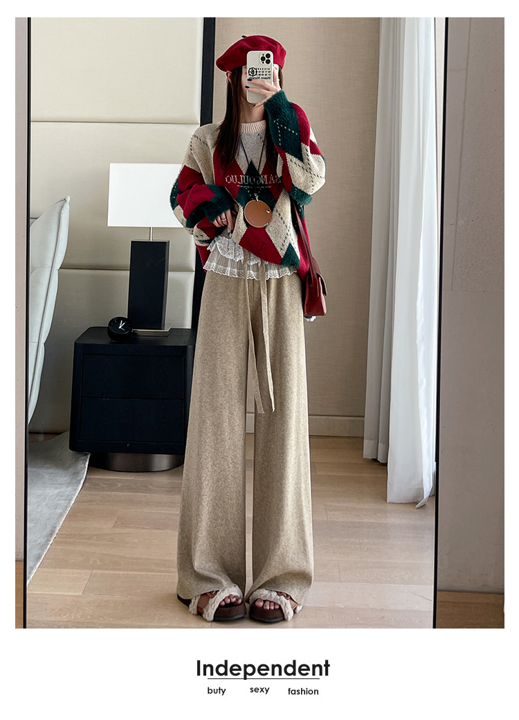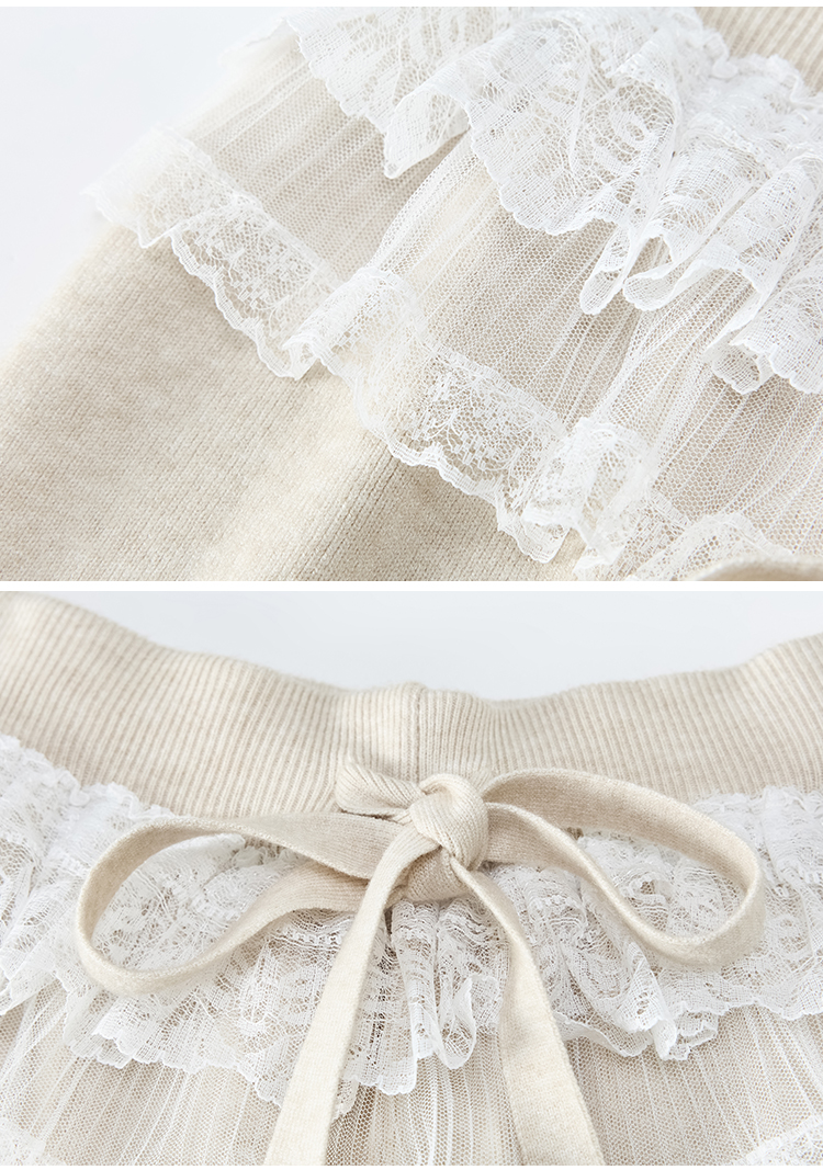 MY13720# 蕾丝拼接针织阔腿裤新款高腰显瘦慵懒垂感休闲裤子女裝貨源服裝批發