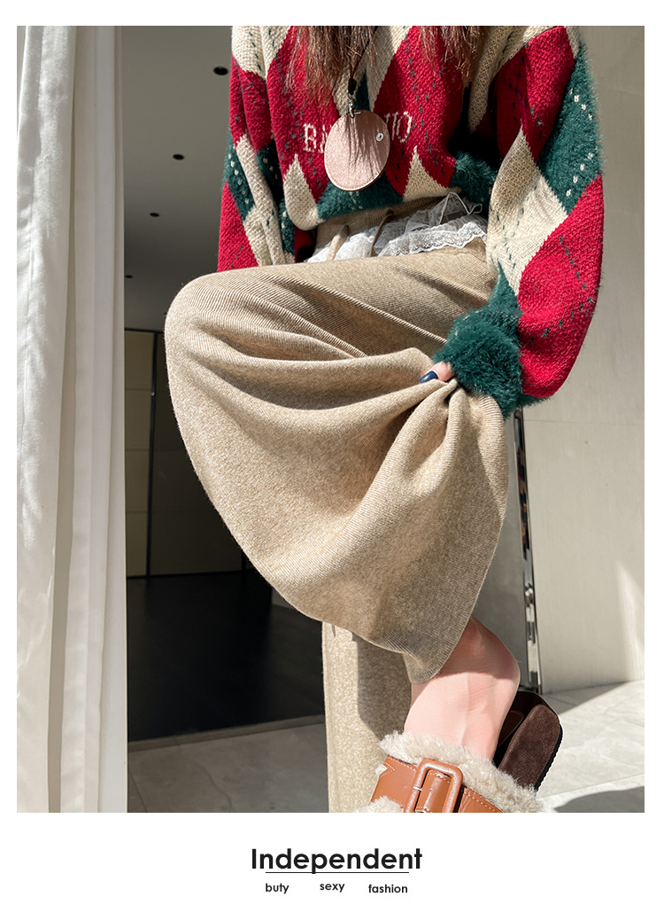 MY13711# 加厚毛呢半身裙女新款高腰显瘦防走光A字包臀短裙女裝貨源服...