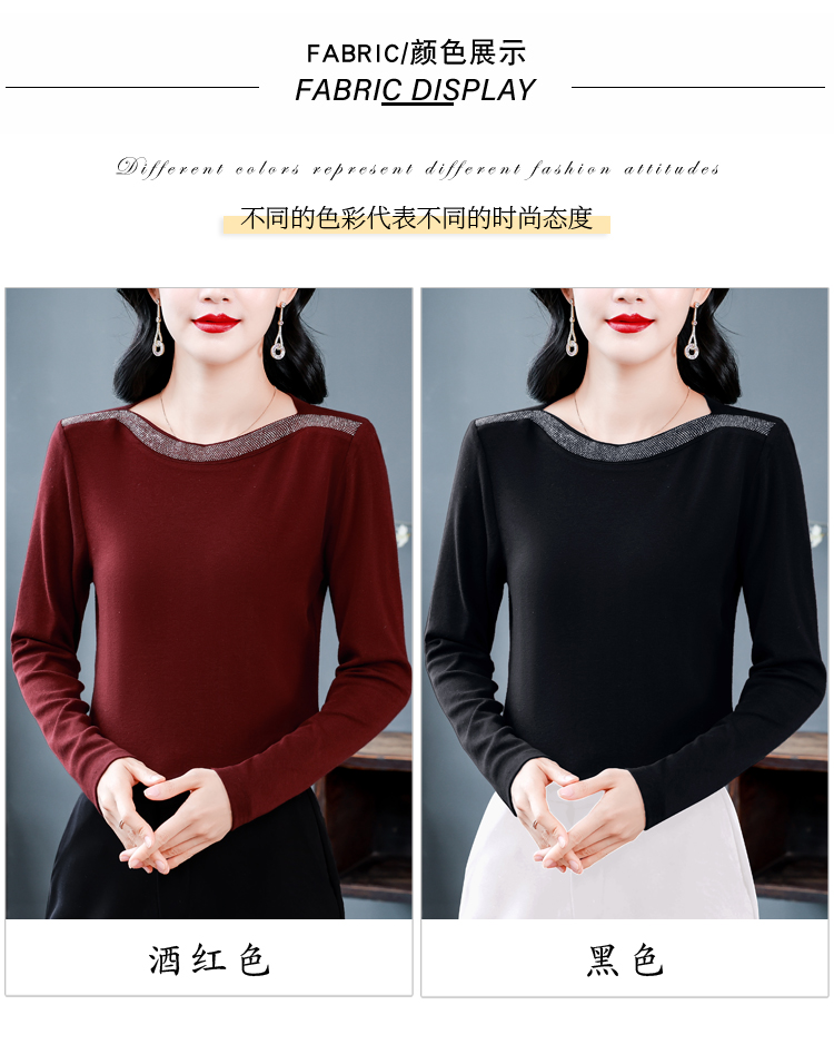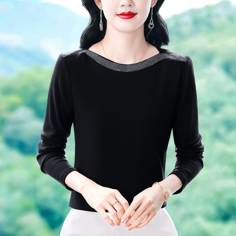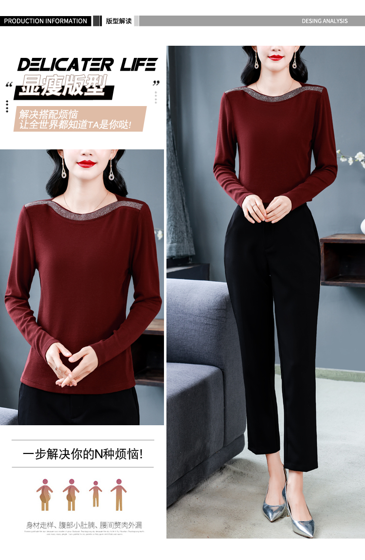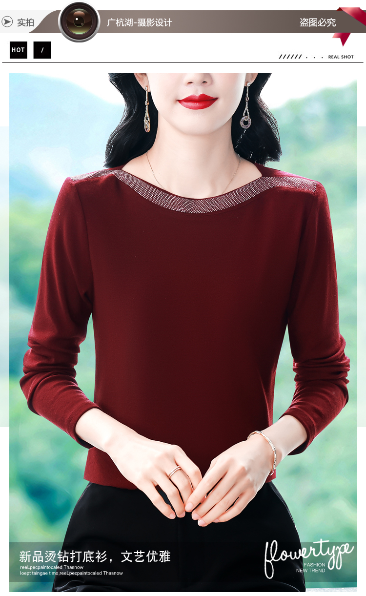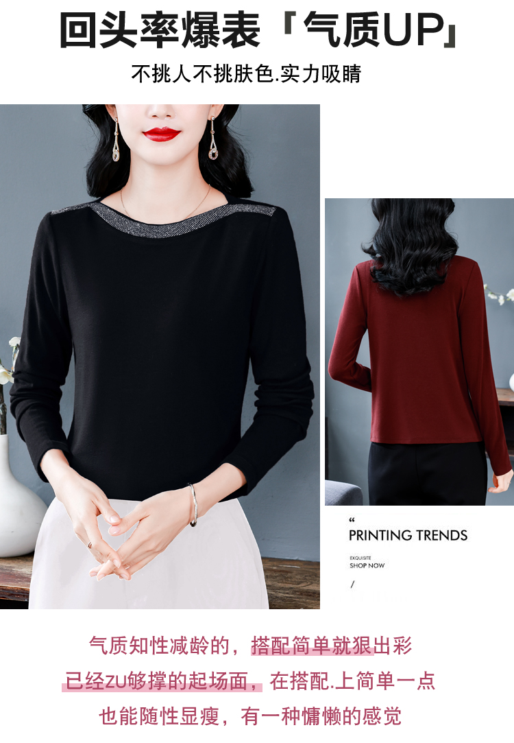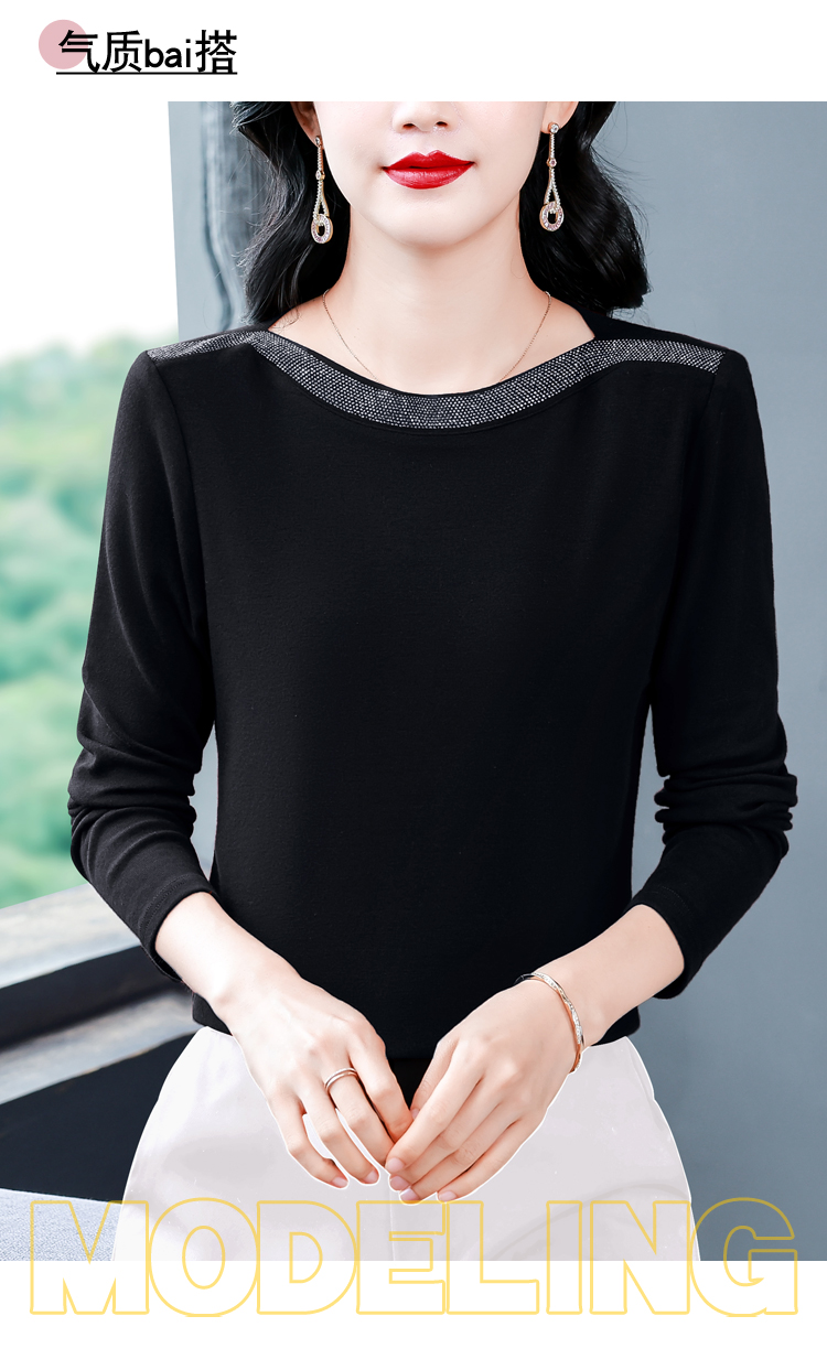 MY13721# 新款重工奥钻长袖T恤女气质显瘦打底上衣女裝貨源服裝批發