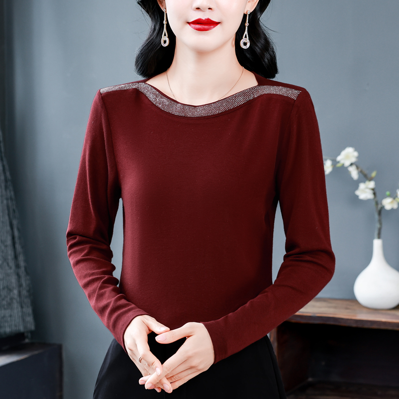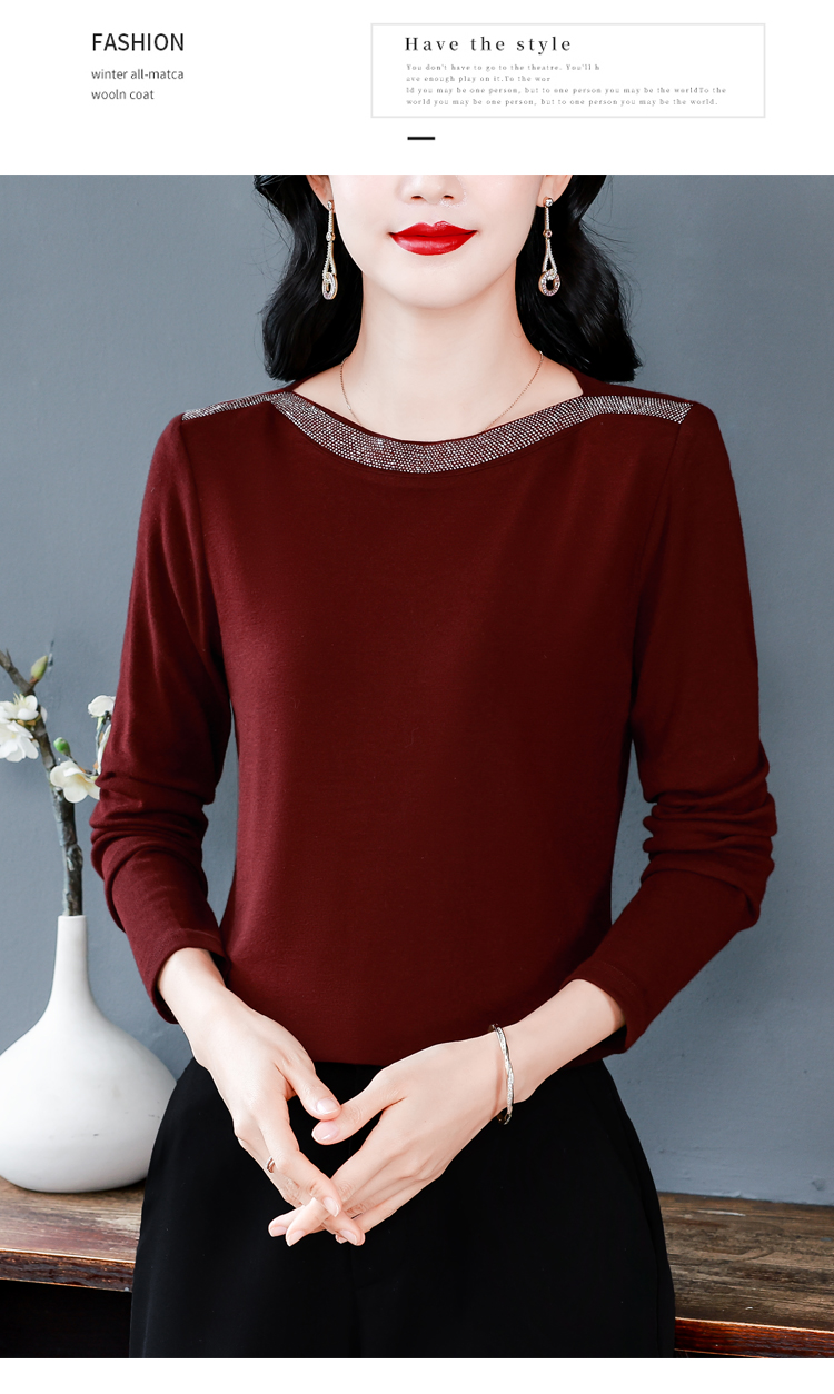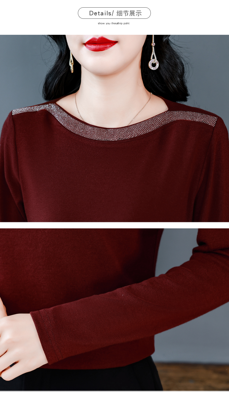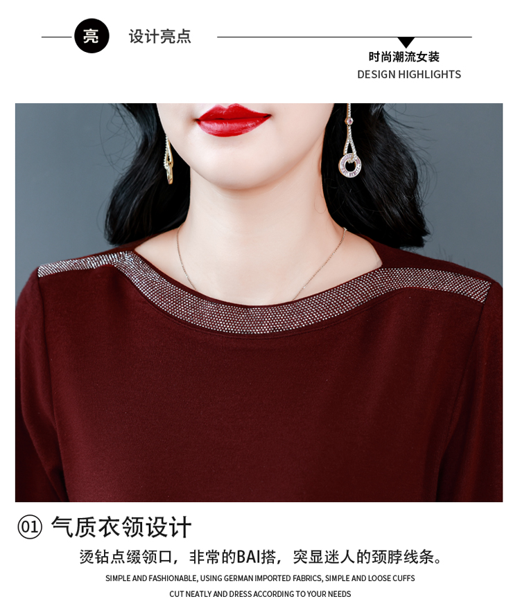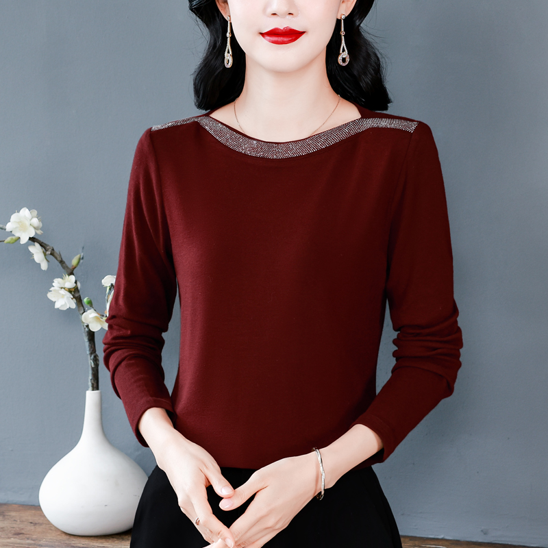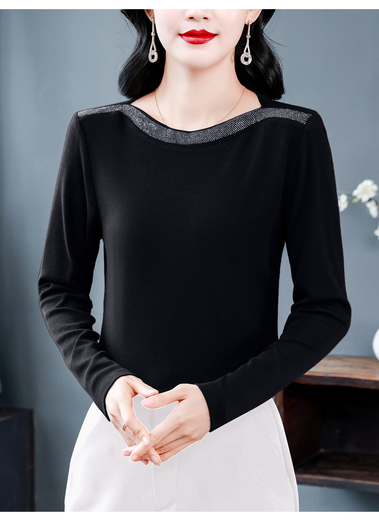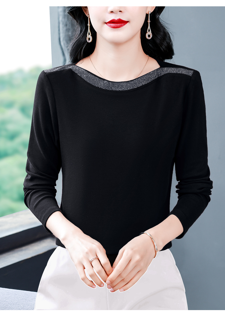 MY13721# 新款重工奥钻长袖T恤女气质显瘦打底上衣女裝貨源服裝批發