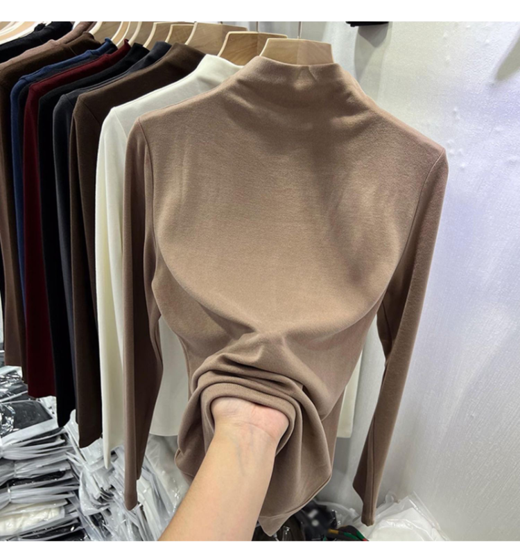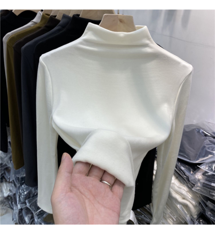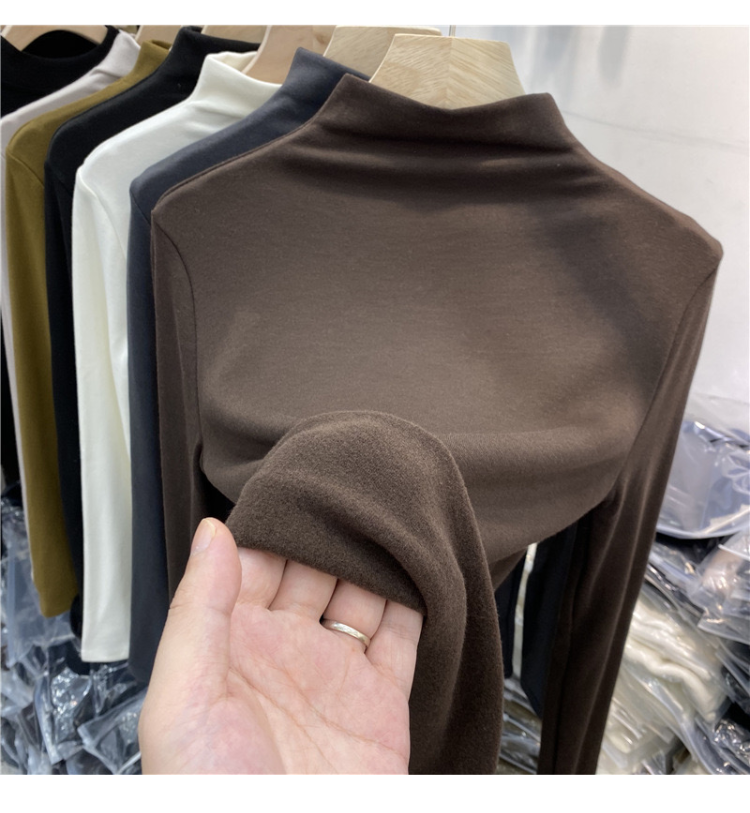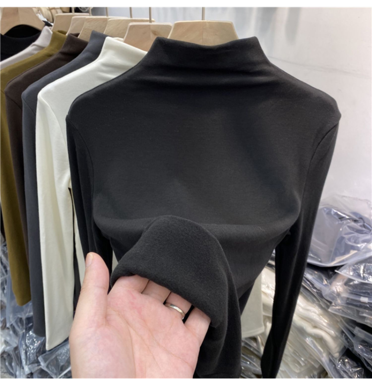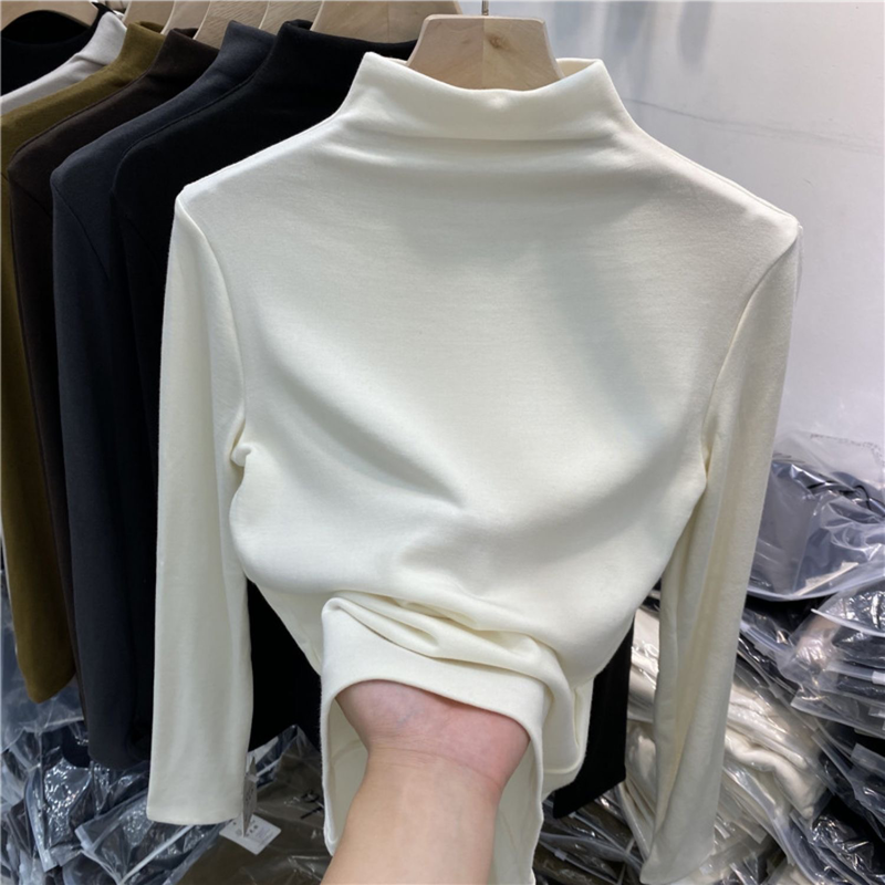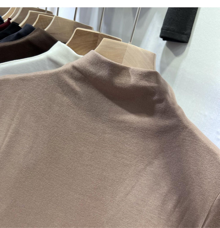 MY13725# 德绒半高领打底衫高级感软糯修身T恤内搭加厚加绒磨毛上衣女裝貨源服裝批發