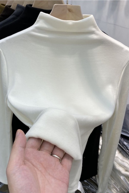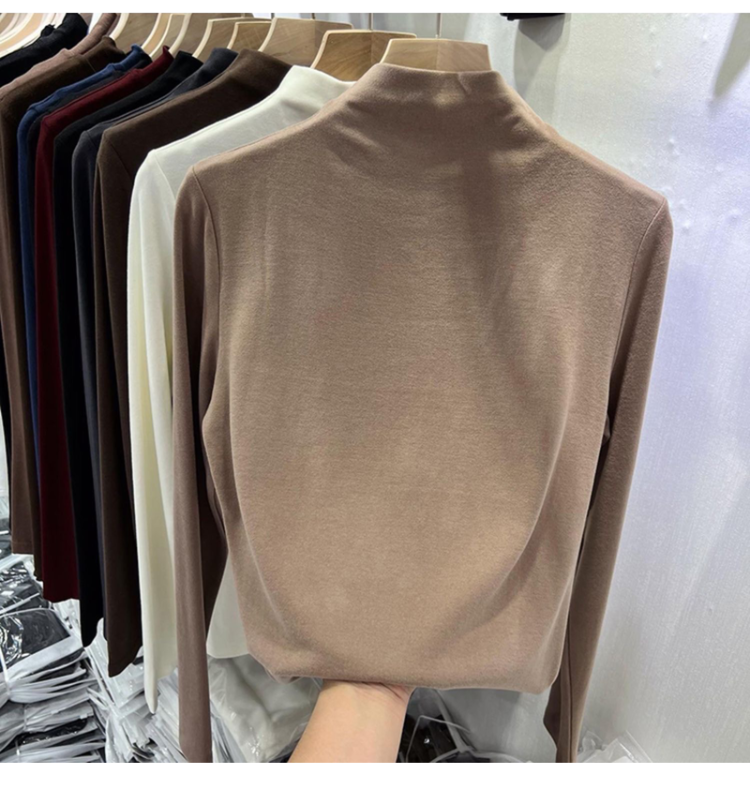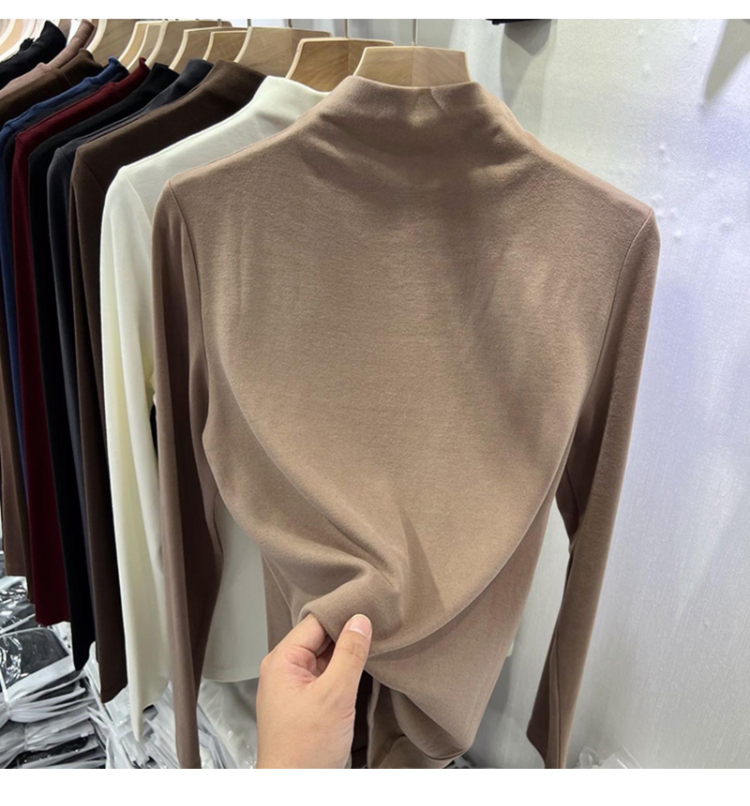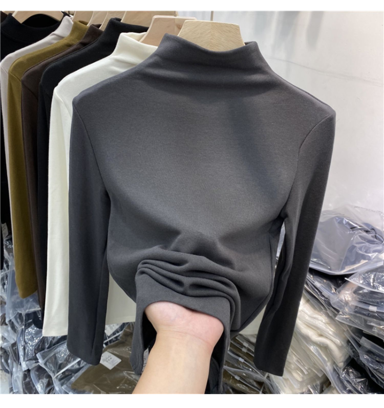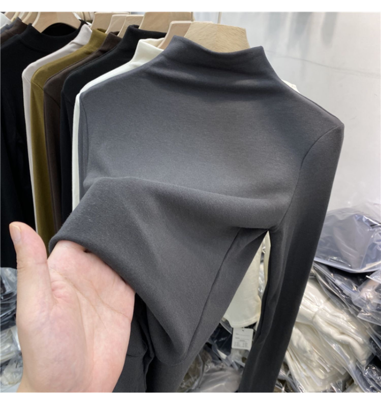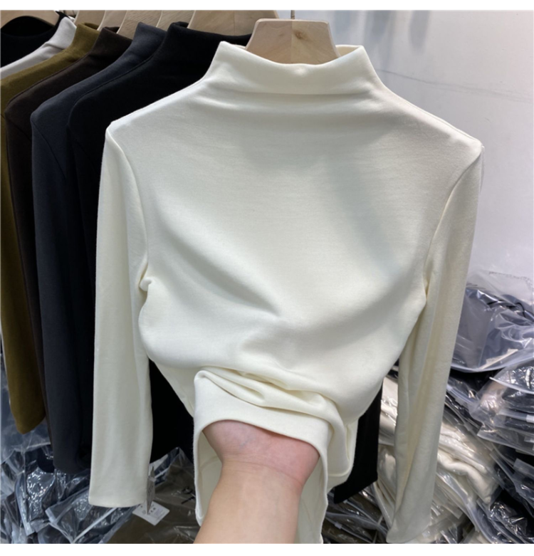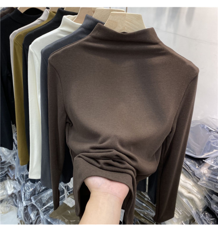 MY13725# 德绒半高领打底衫高级感软糯修身T恤内搭加厚加绒磨毛上衣女裝貨源服裝批發