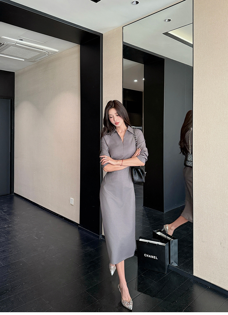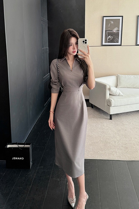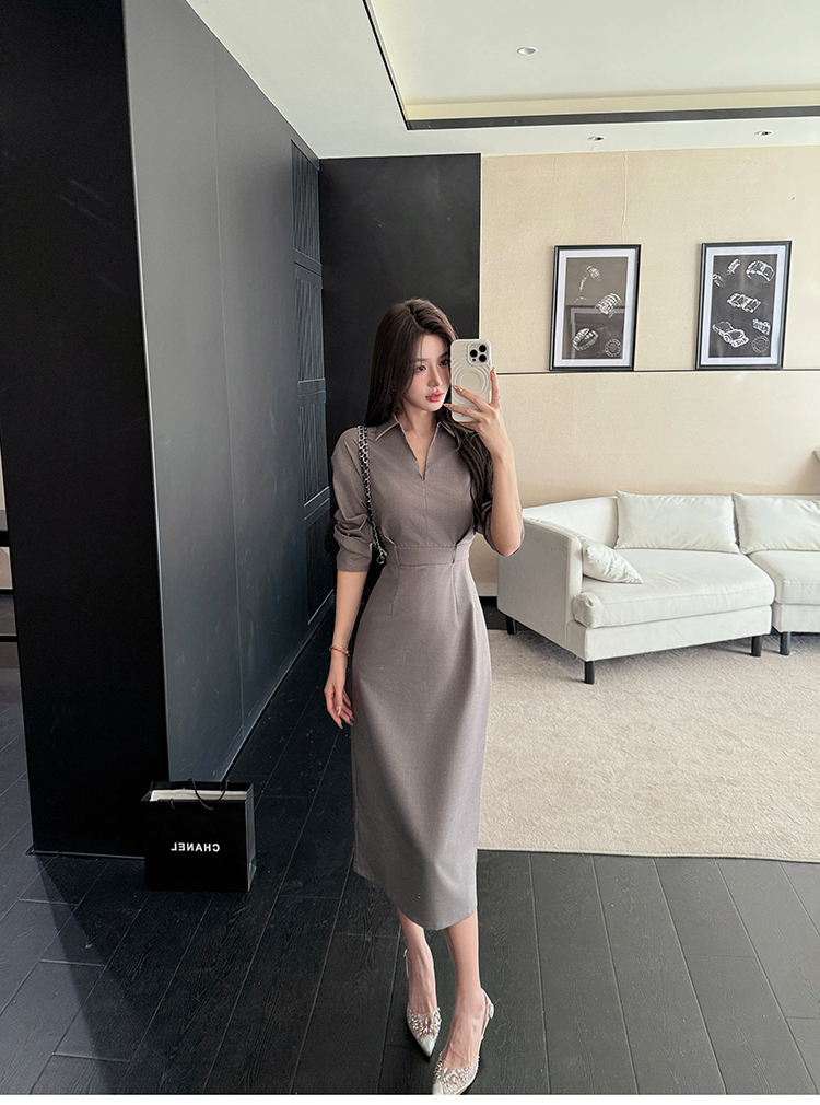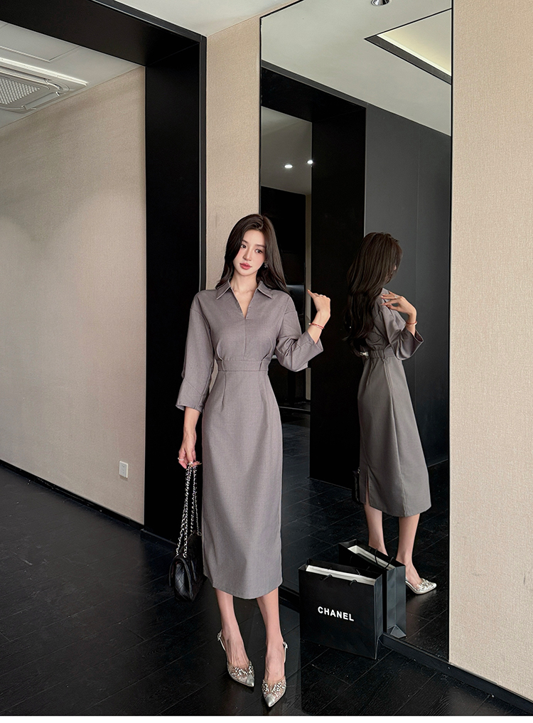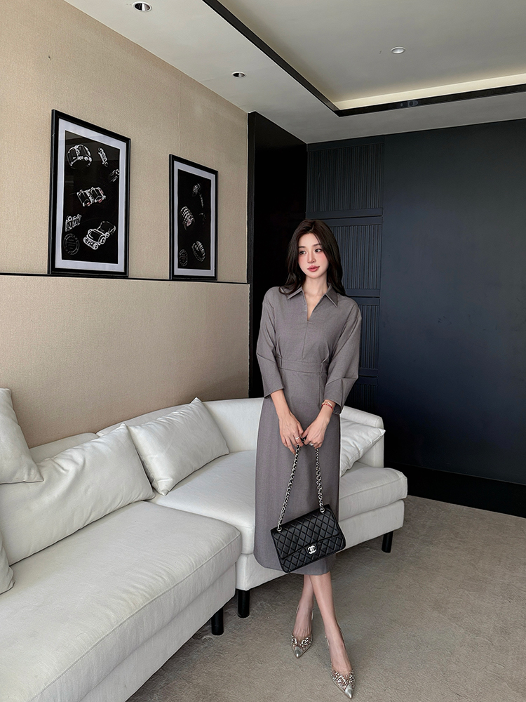 MY13727# 连衣裙新款轻奢高级感气质收腰西装裙子 长款连衣裙女裝貨源服裝批發