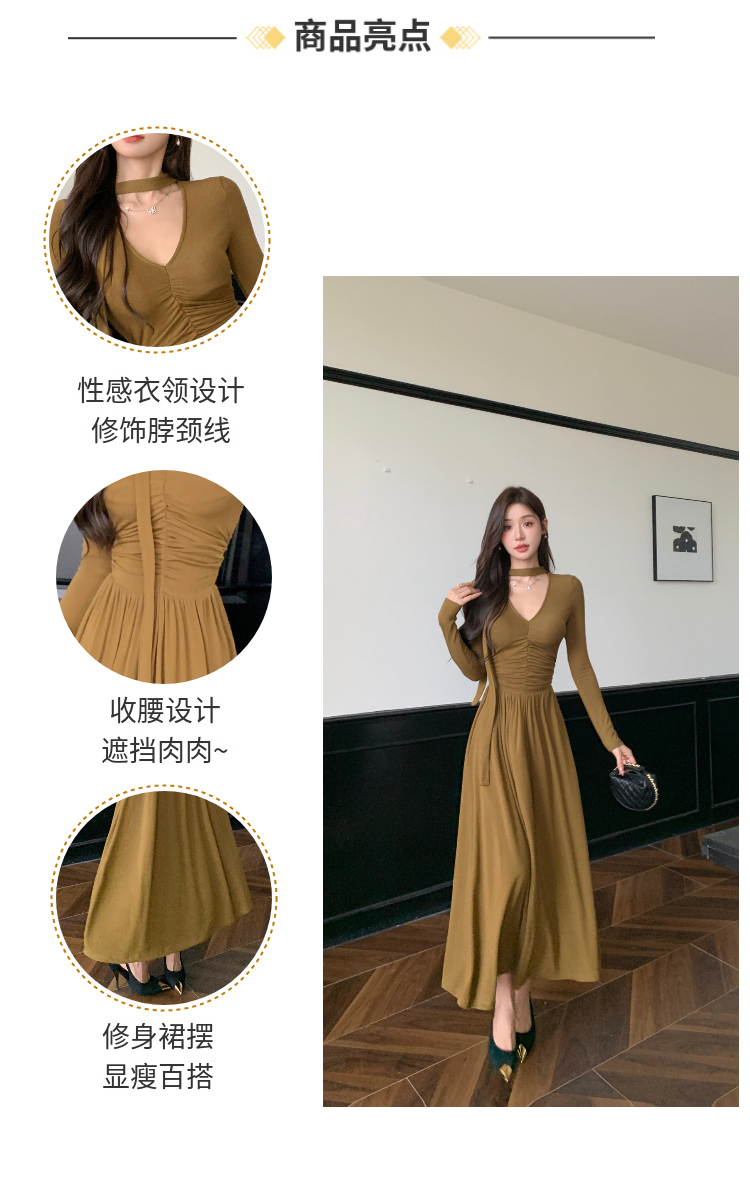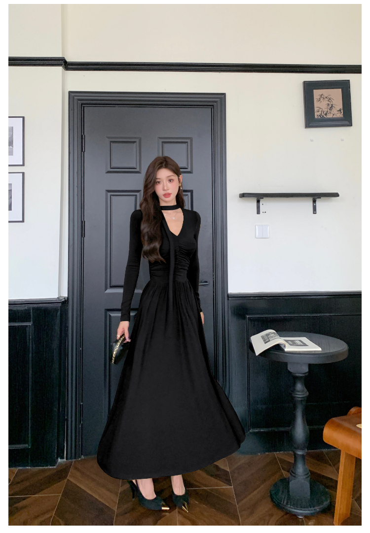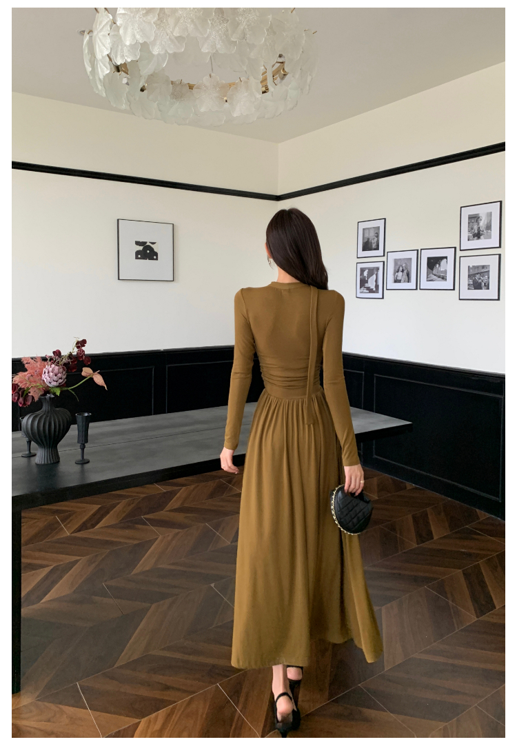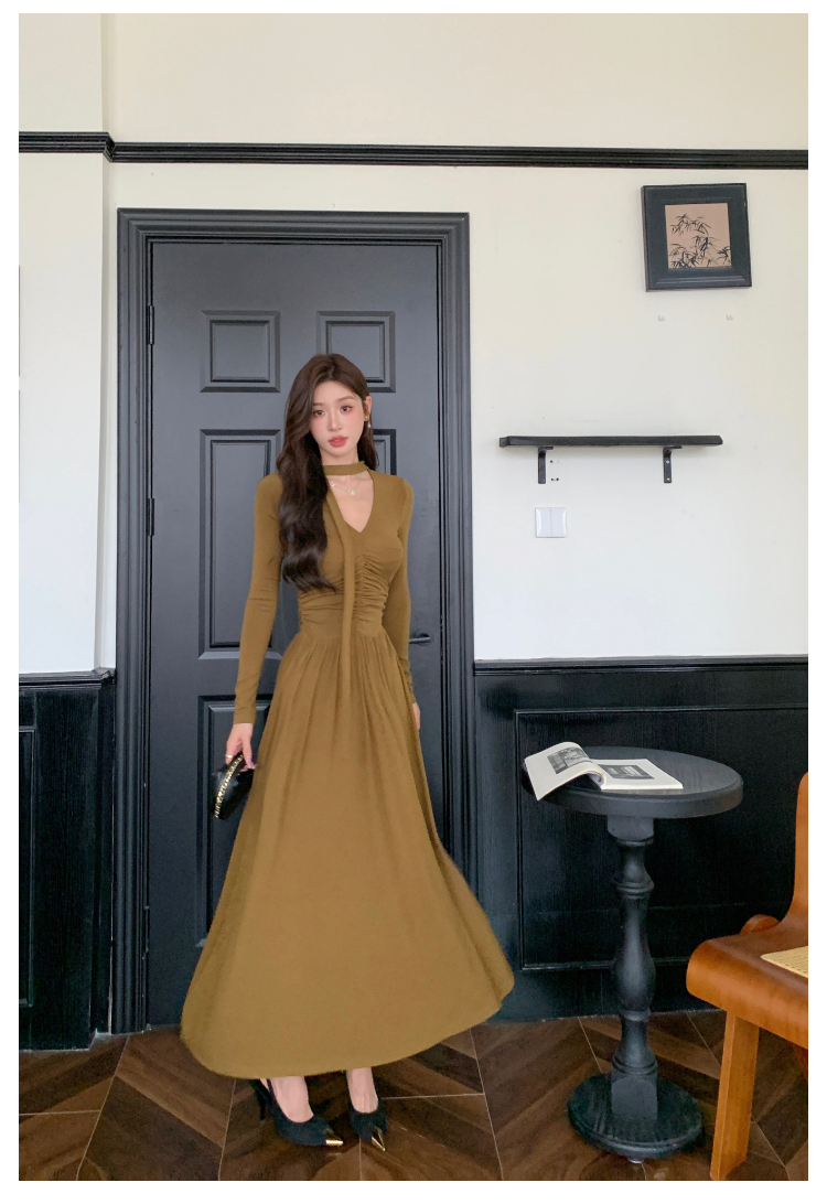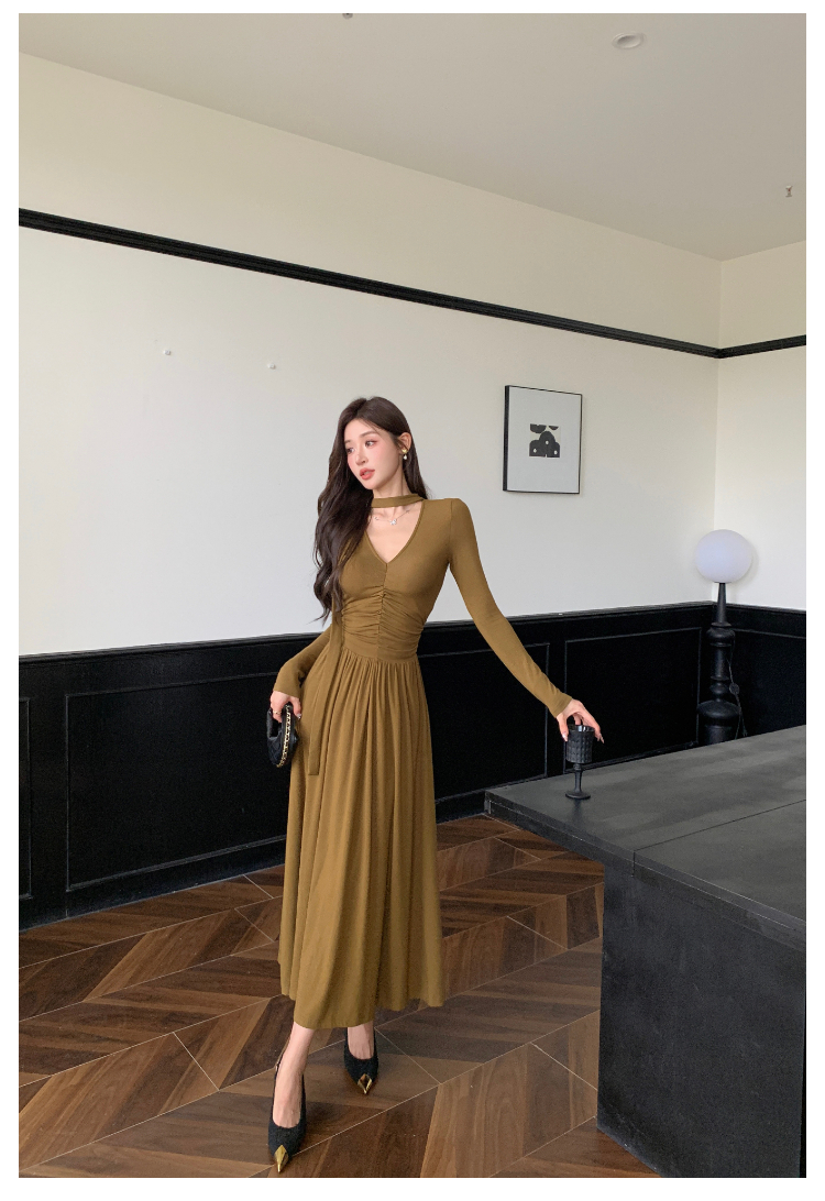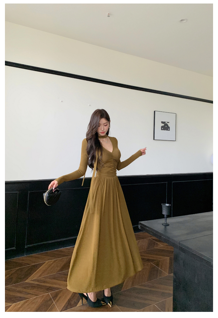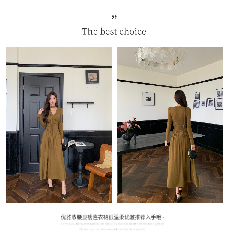 MY13729# 小众设计感褶皱飘带连衣裙女蠢修身显瘦a字针织长裙女裝貨源服裝批發