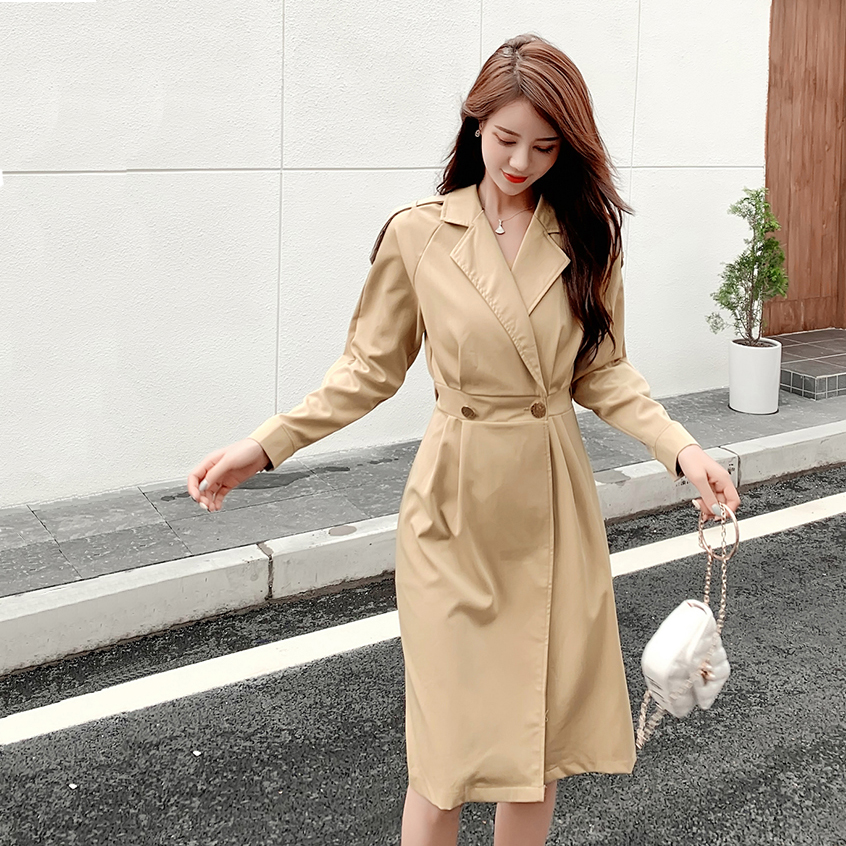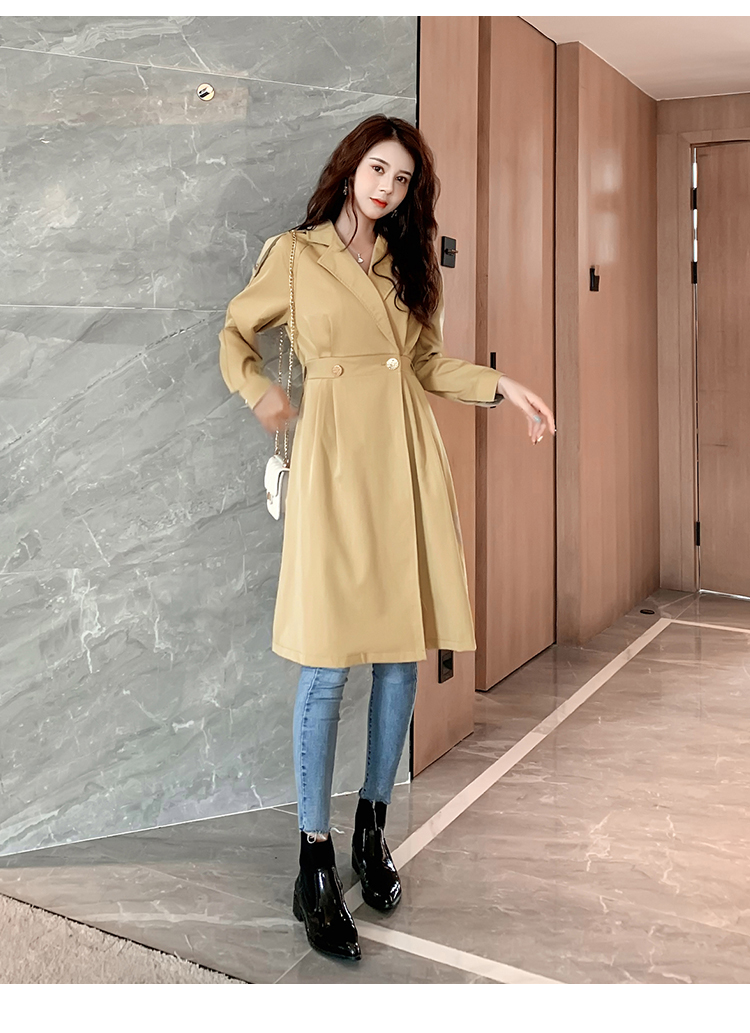 MY13734# 新款韩版小个子风衣外套女中长款减龄显瘦日常百搭西装裙女裝貨源服裝批發