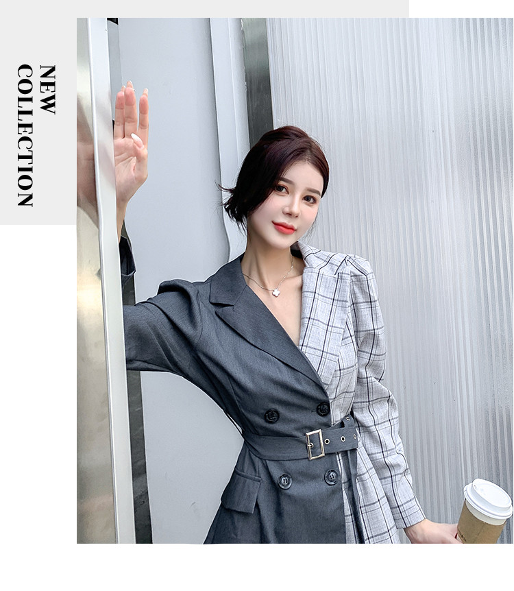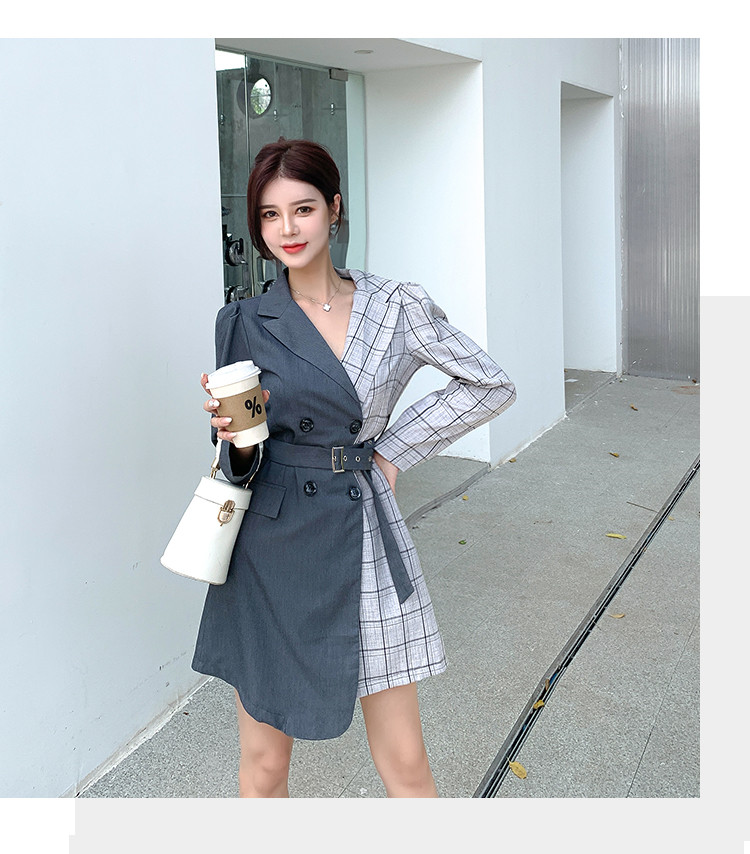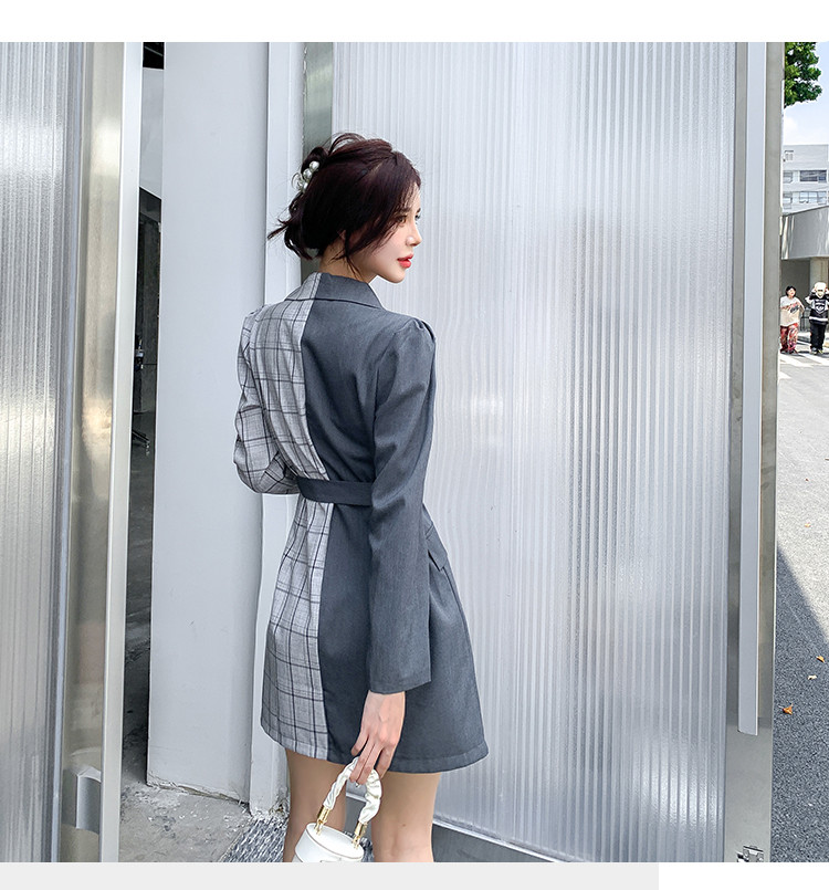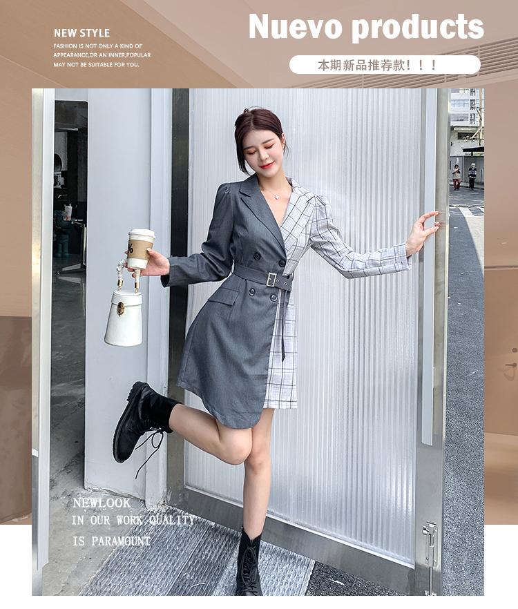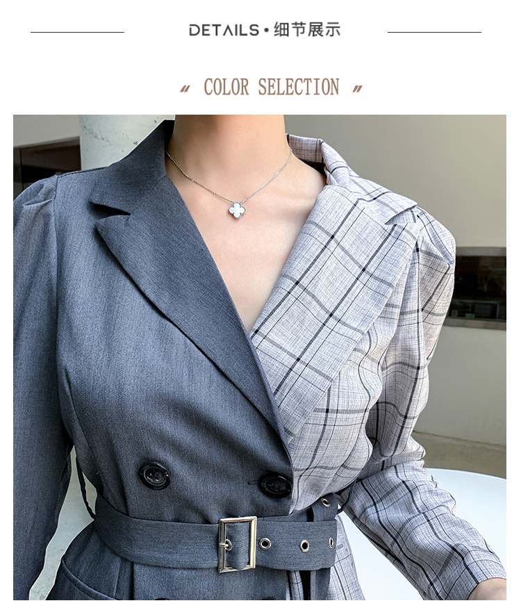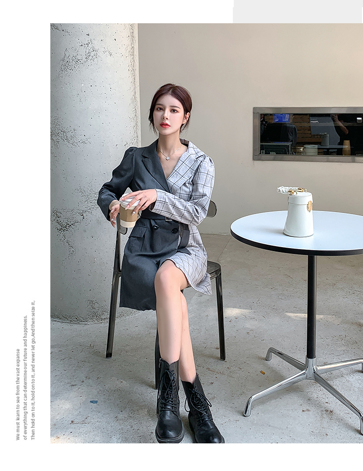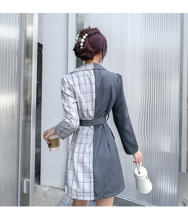 MY13735# 新款格调小个子风衣外套女中长款气质方格日常百搭西装裙女裝貨源服裝批發