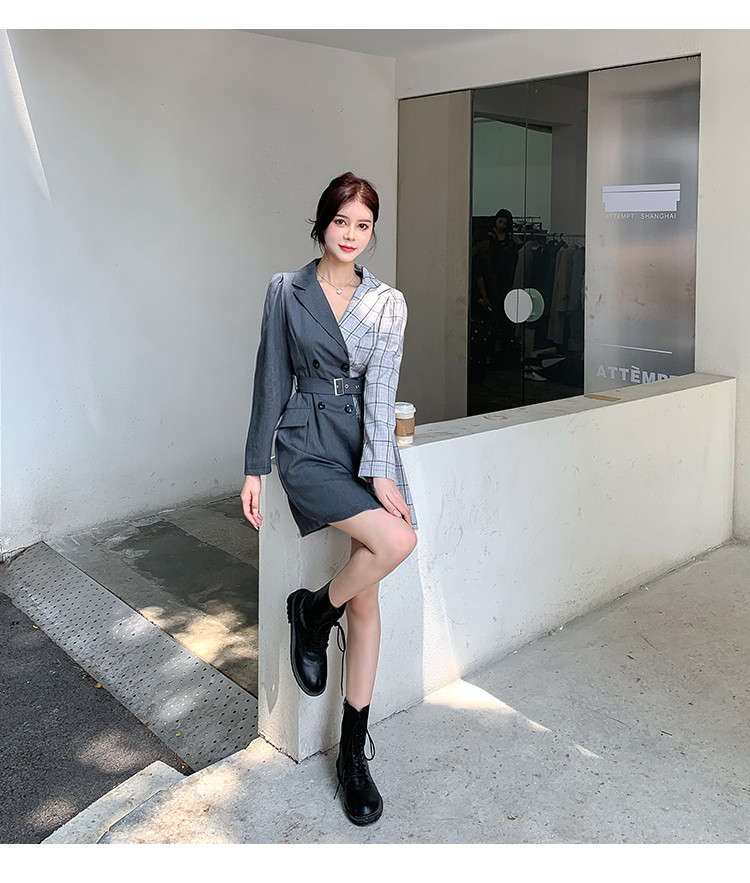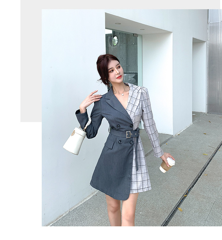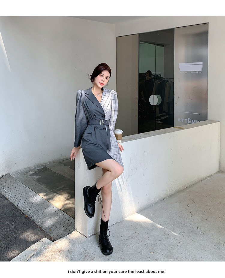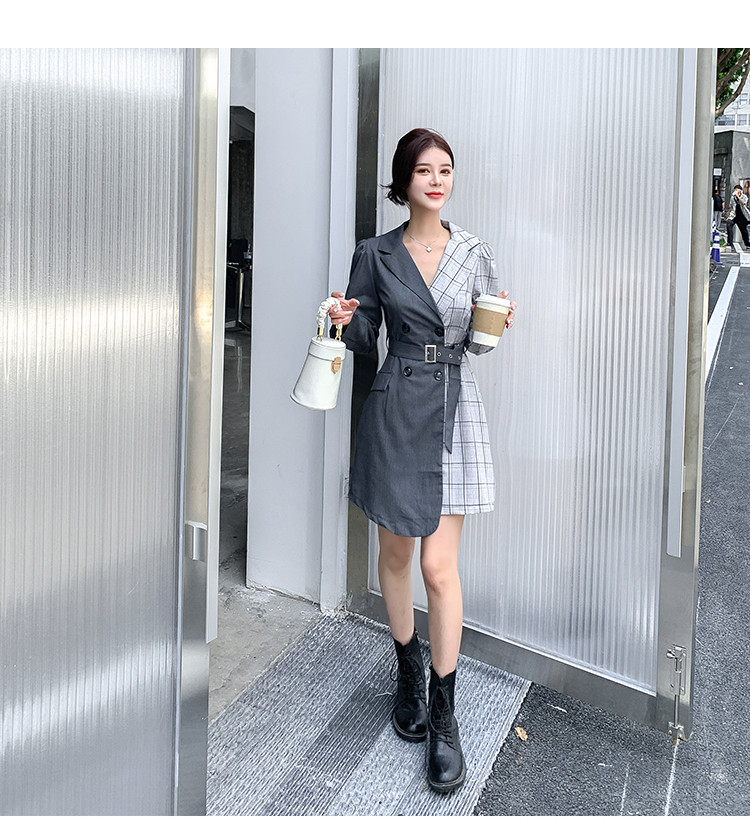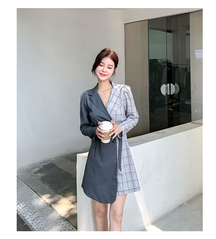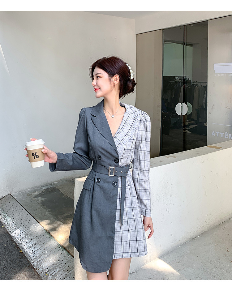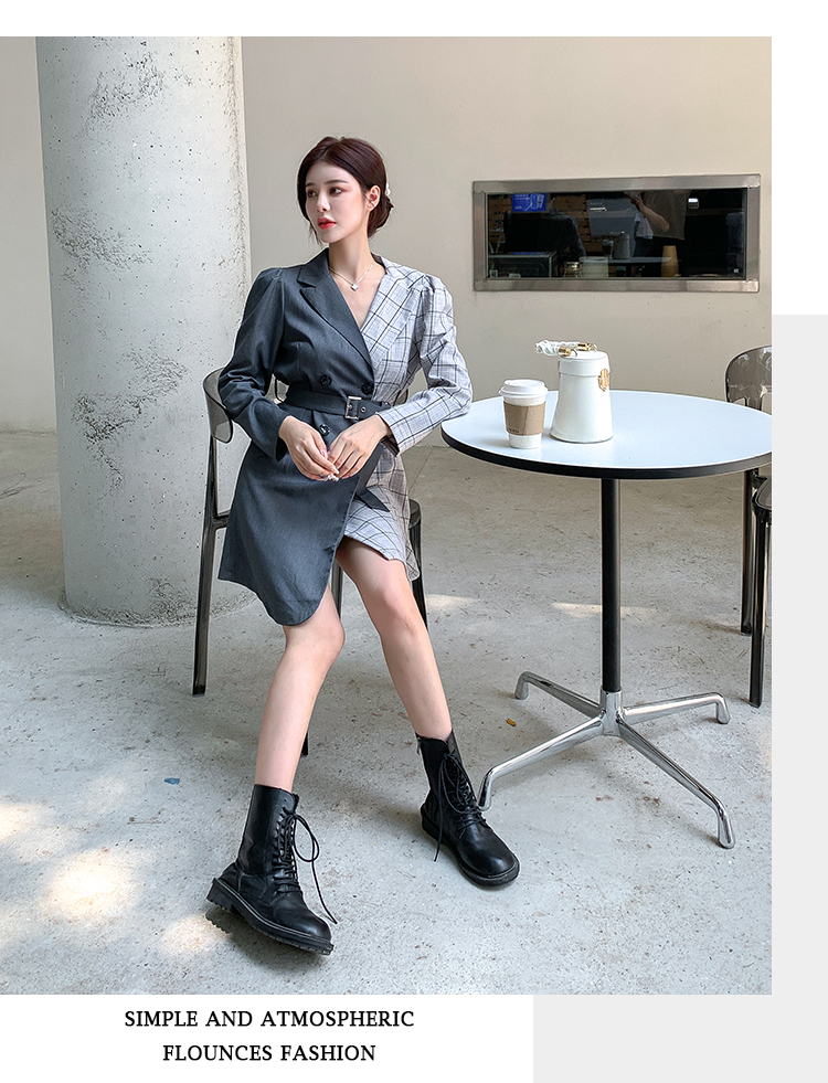 MY13735# 新款格调小个子风衣外套女中长款气质方格日常百搭西装裙女裝貨源服裝批發